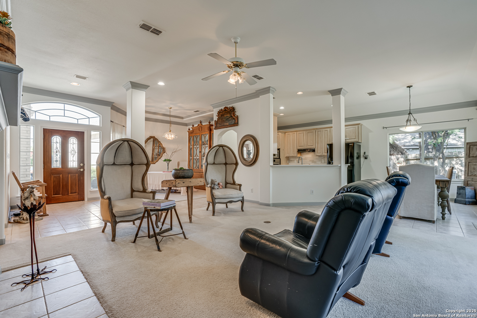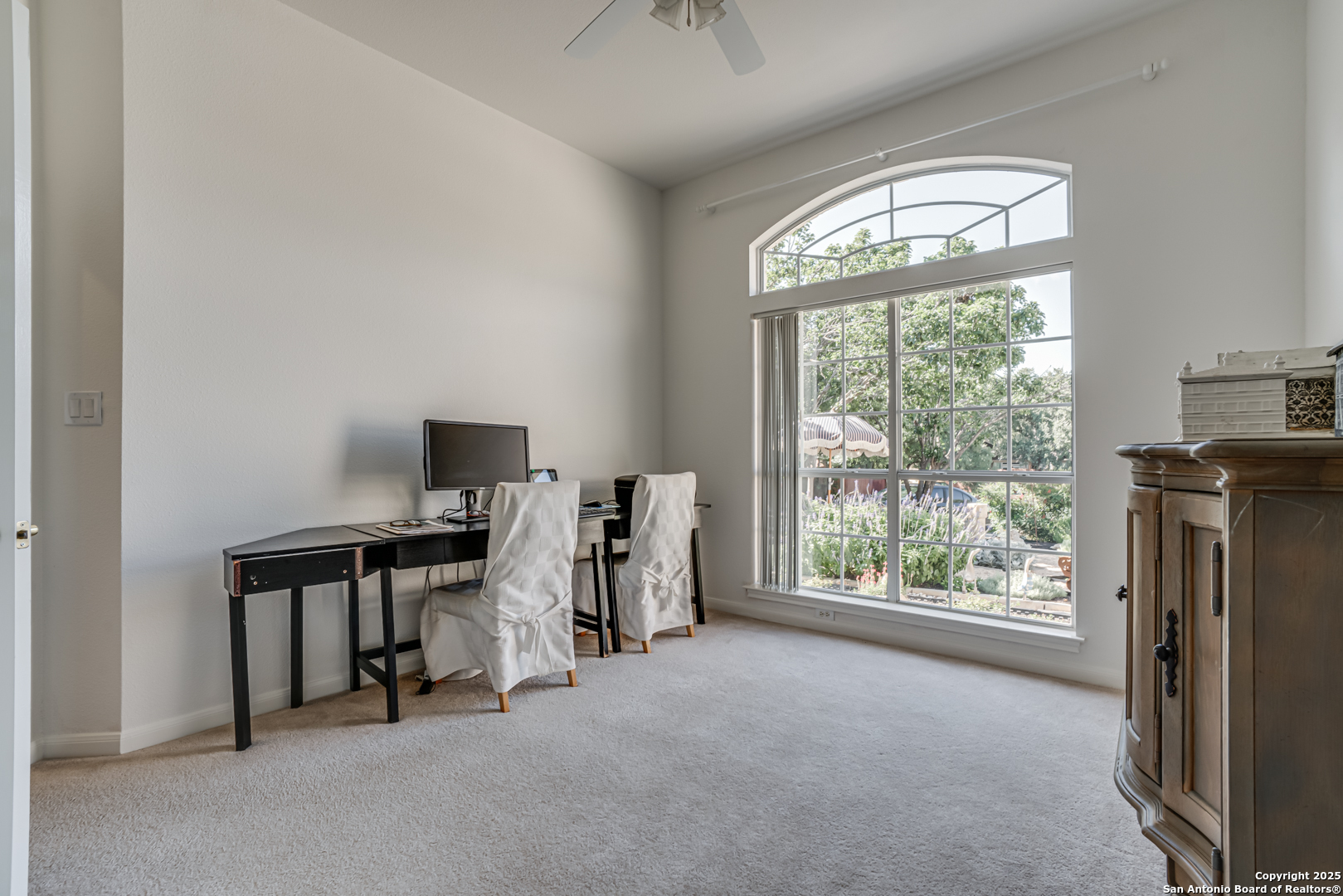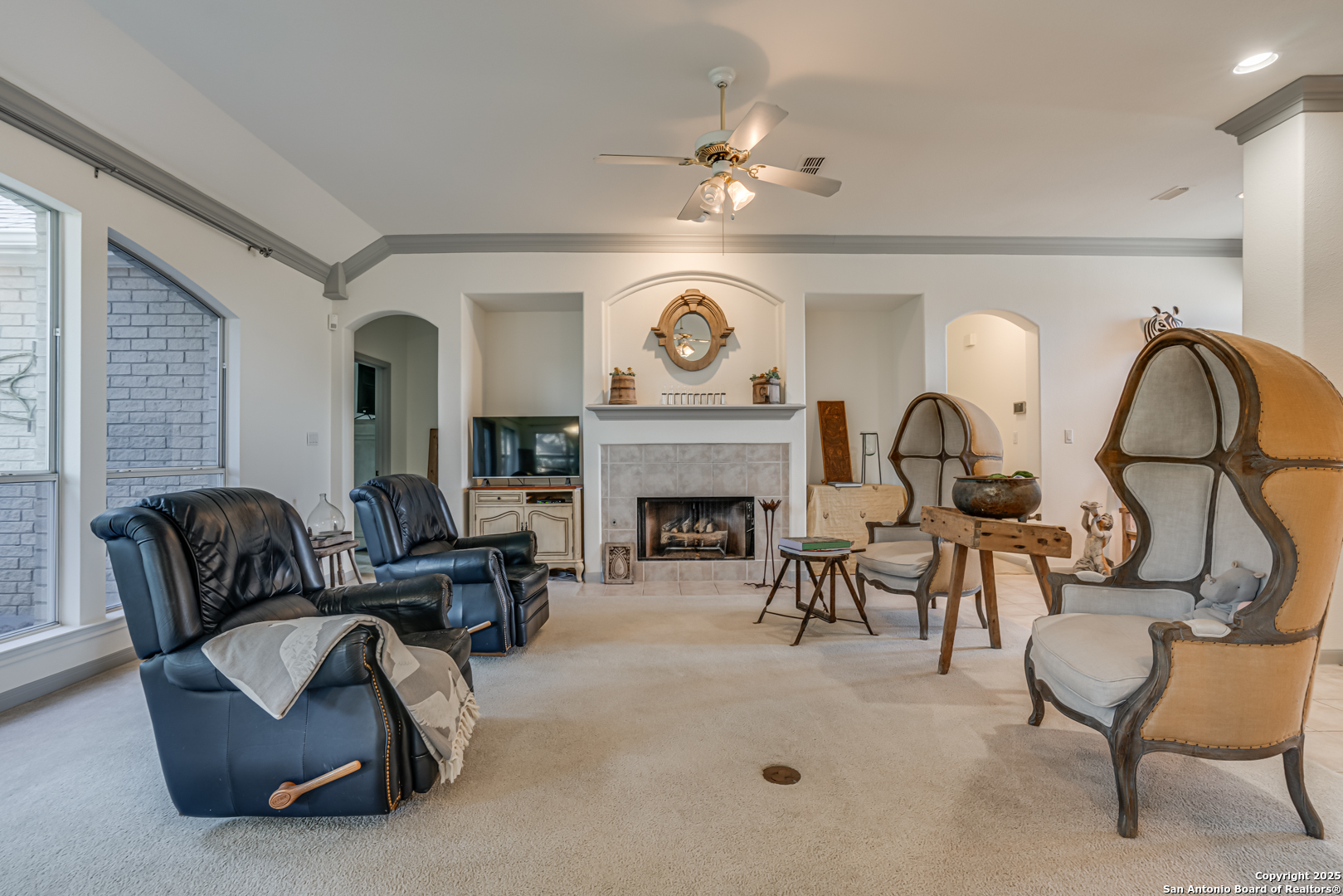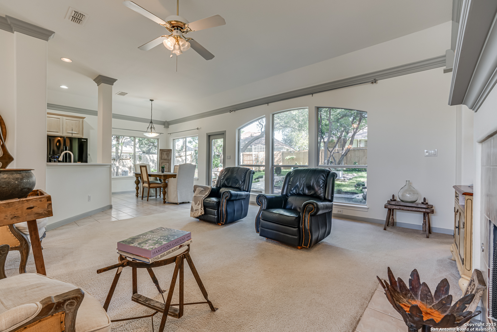 Tucked inside a quiet gated community near UTSA, this charming one-story home offers 4 bedrooms, 2 bathrooms, and just over 2,100 sq ft of thoughtfully maintained living space. From the moment you arrive, the front and backyard greet you with lush, garden-style landscaping, carefully designed as a peaceful oasis. A French-draining irrigation system runs from the backyard to the front, making maintenance easy and efficient. Step inside to a spacious layout featuring a formal dining room and a separate front living area that can easily serve as a second dining space, reading room, or flex area. Natural light pours into the open-concept living space, highlighting the updated kitchen with sleek countertops and a brand-new stove and oven, ready for daily meals or entertaining. The cozy gas fireplace in the living room adds warmth and charm, making it an inviting space to unwind. Each bedroom offers comfort and space, while the primary suite provides a relaxing retreat with a walk-in shower and soaking tub. Located just minutes from UTSA and one of San Antonio's largest entertainment districts, you'll enjoy quick access to shopping such as La Cantera, dining, and fun for all ages. With a blend of quiet comfort and unbeatable location, this home truly has something for everyone.