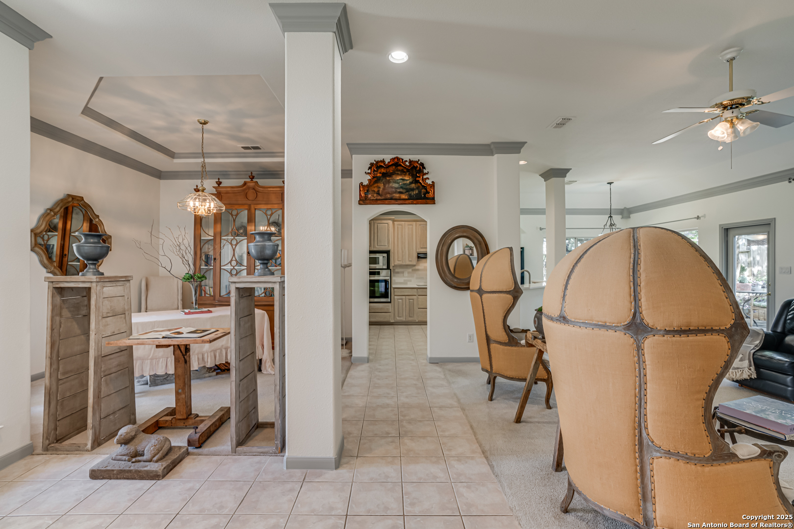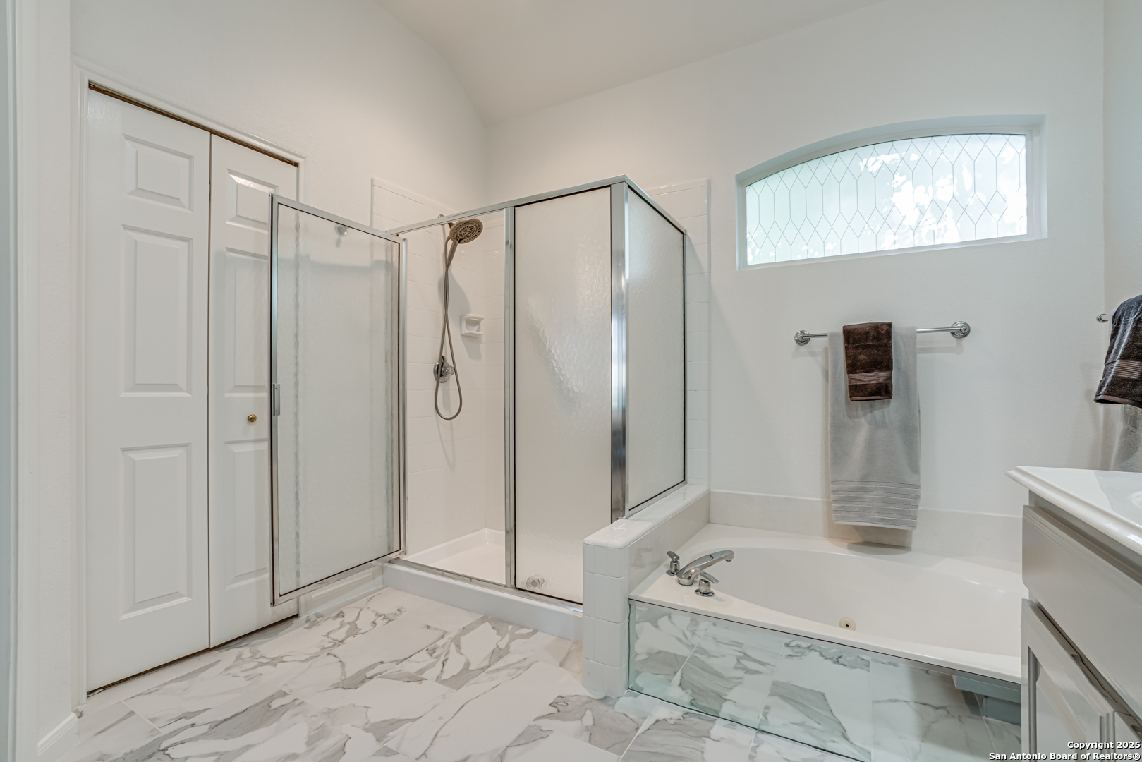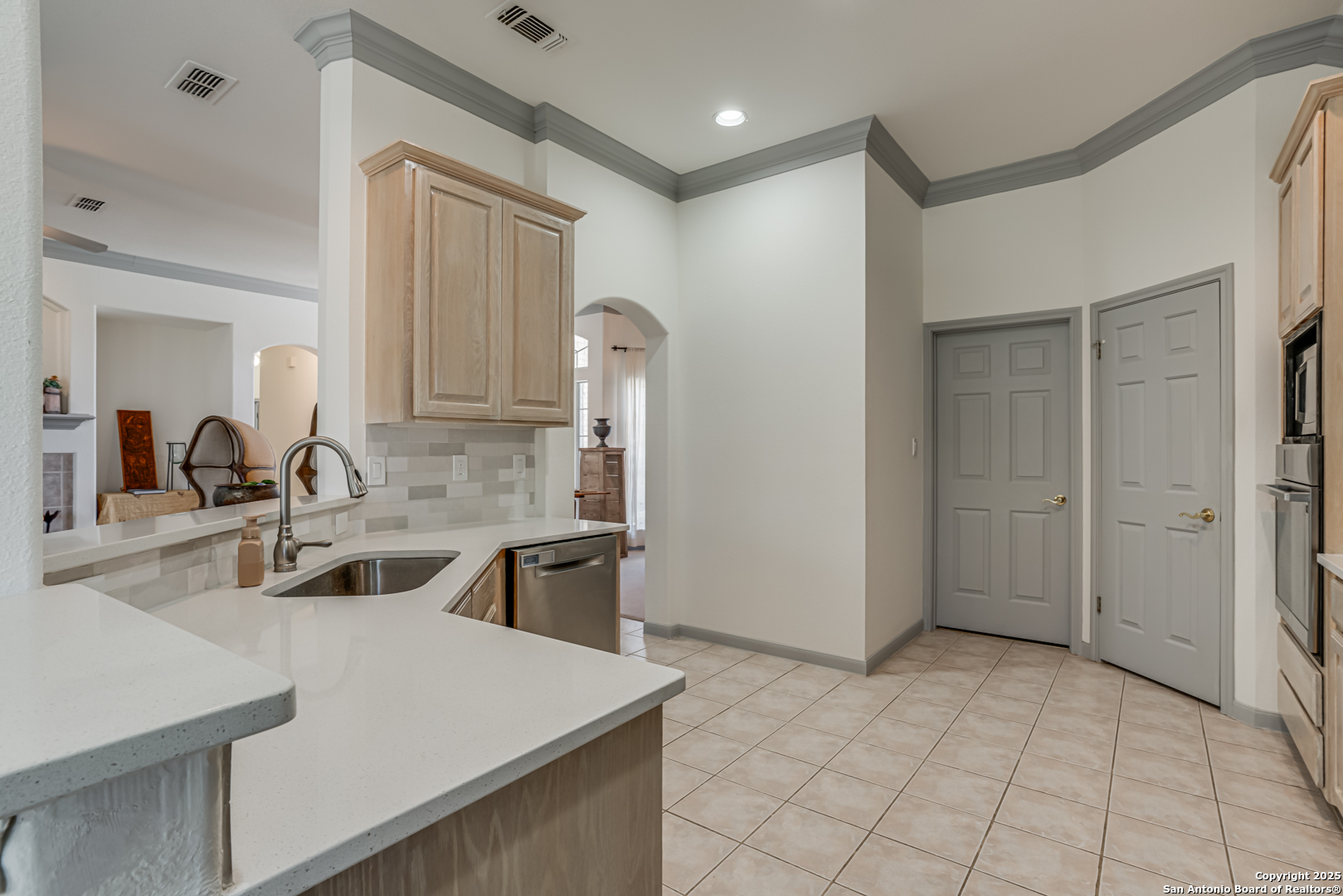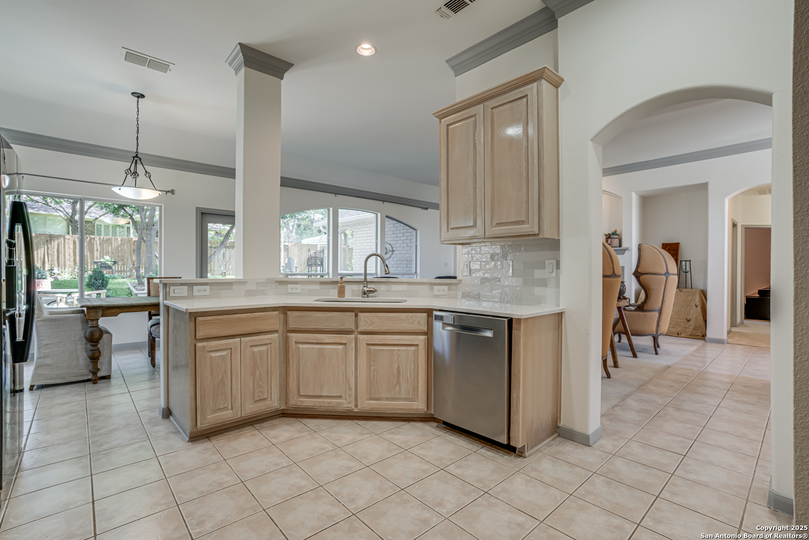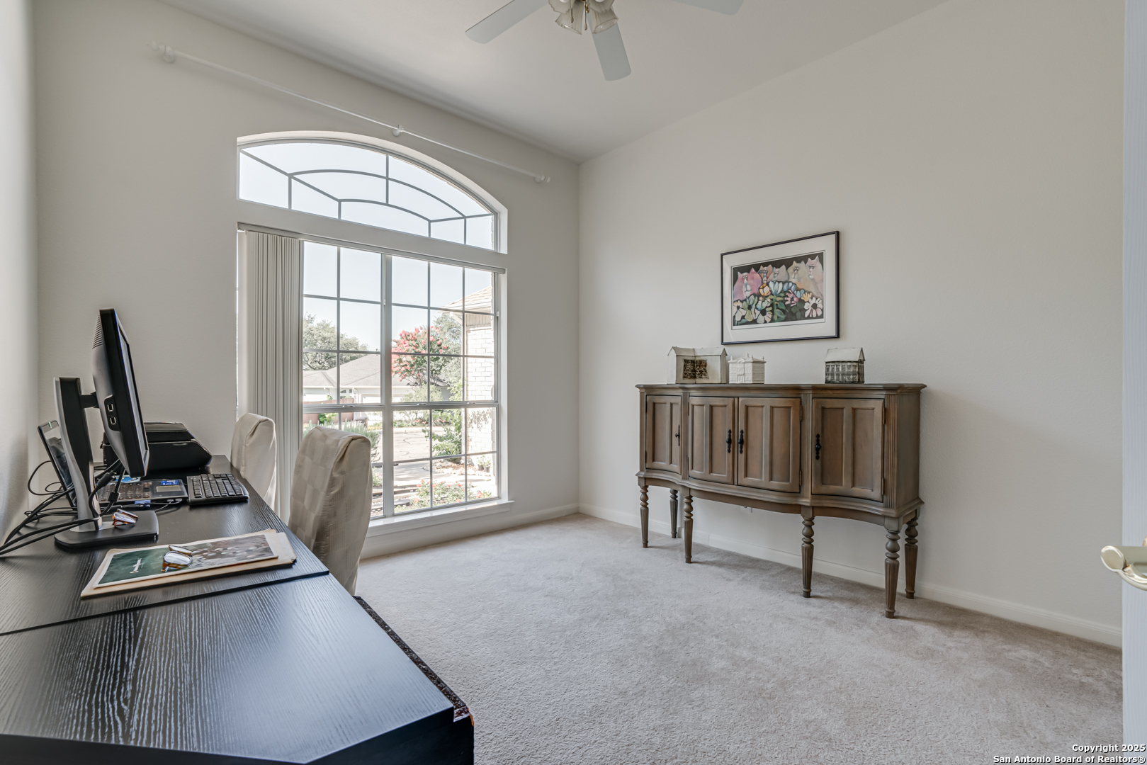Tucked inside a quiet gated community near UTSA, this charming one-story home offers 4 bedrooms, 2 bathrooms, and just over 2,100 sq ft of thoughtfully maintained living space. From the moment you arrive, the front and backyard greet you with lush, garden-style landscaping, carefully designed as a peaceful oasis. A French-draining irrigation system runs from the backyard to the front, making maintenance easy and efficient. Step inside to a spacious layout featuring a formal dining room and a separate front living area that can easily serve as a second dining space, reading room, or flex area. Natural light pours into the open-concept living space, highlighting the updated kitchen with sleek countertops and a brand-new stove and oven, ready for daily meals or entertaining. The cozy gas fireplace in the living room adds warmth and charm, making it an inviting space to unwind. Each bedroom offers comfort and space, while the primary suite provides a relaxing retreat with a walk-in shower and soaking tub. Located just minutes from UTSA and one of San Antonio's largest entertainment districts, you'll enjoy quick access to shopping such as La Cantera, dining, and fun for all ages. With a blend of quiet comfort and unbeatable location, this home truly has something for everyone.