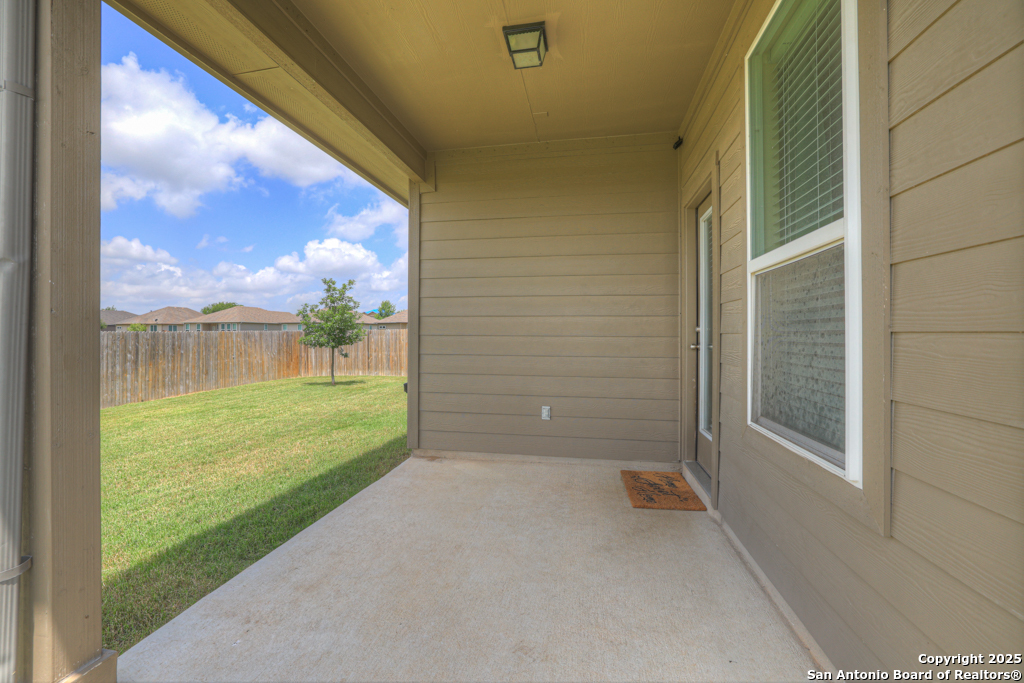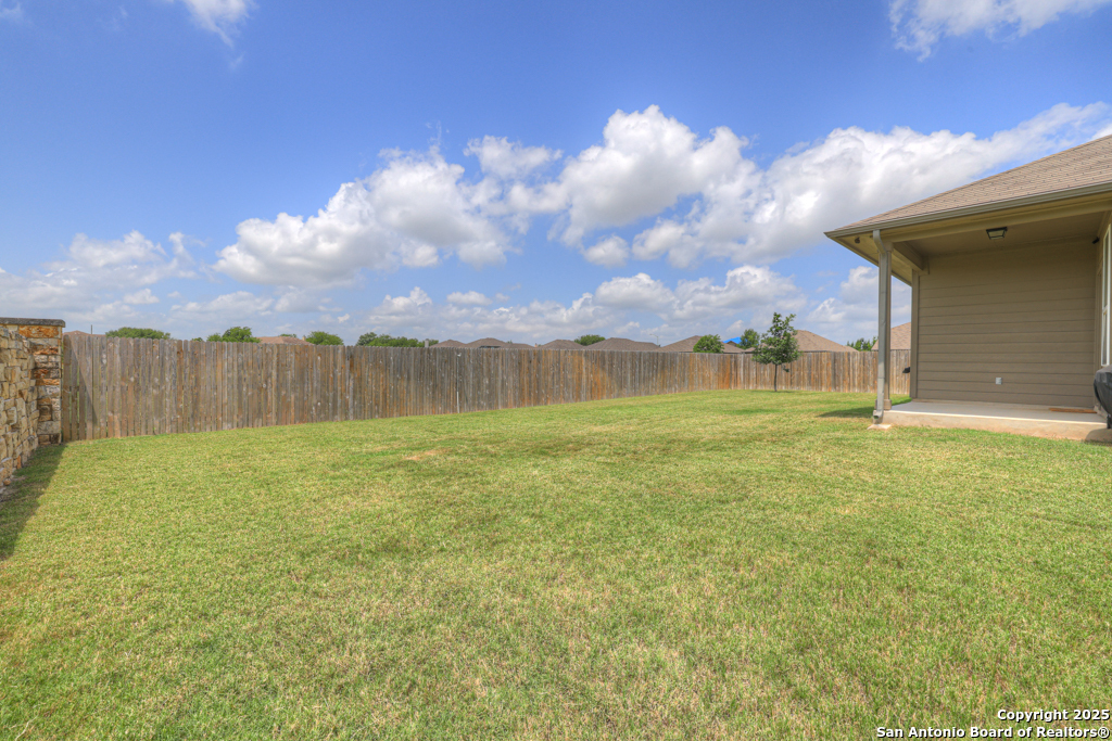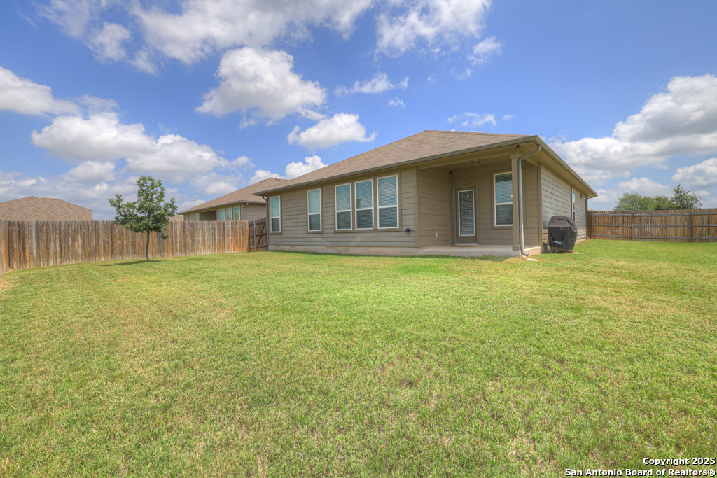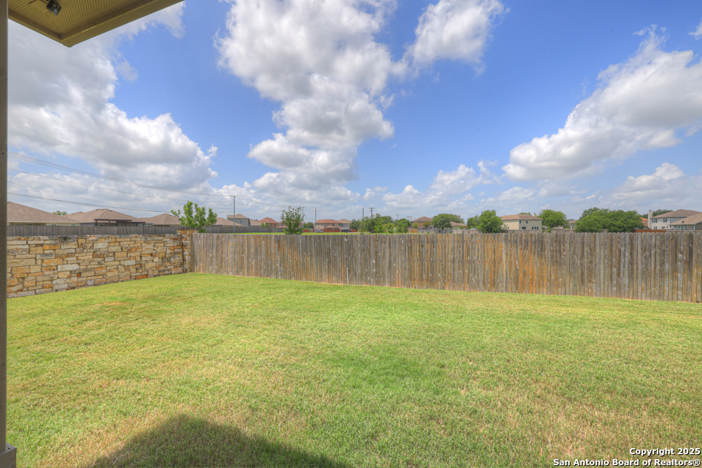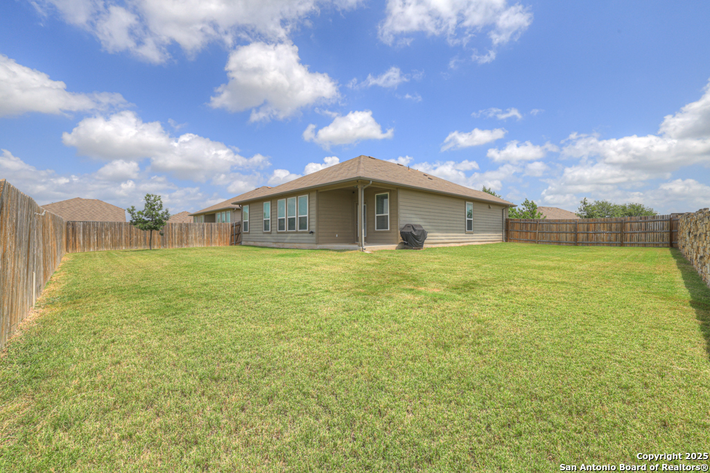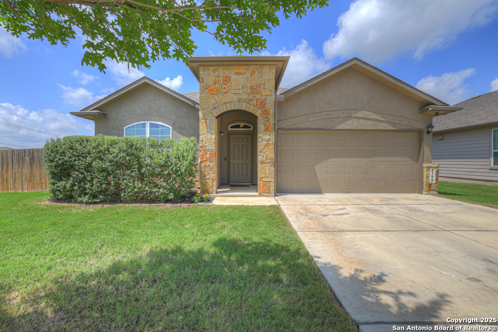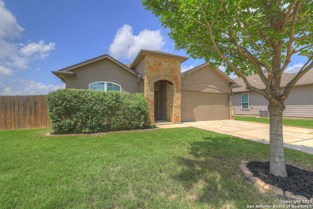 Who's ready to make this beautiful home their own?! This charming 3-bedroom, 2-bathroom home sits on a spacious corner lot in the small community of Saengerhalle. Conveniently located near Creekside, with shopping, dining, and amenities just a short distance away. Step inside to an open-concept floor plan featuring a modern kitchen with granite countertops, a large island, ample pantry space, and a refrigerator included. Additional highlights include a water-softener system, an oversized backyard perfect for entertaining, a covered patio, a fenced backyard with partial stone fencing for added charm and privacy. This well-maintained home is move in ready and waiting for its proud new owner. Don't miss out!