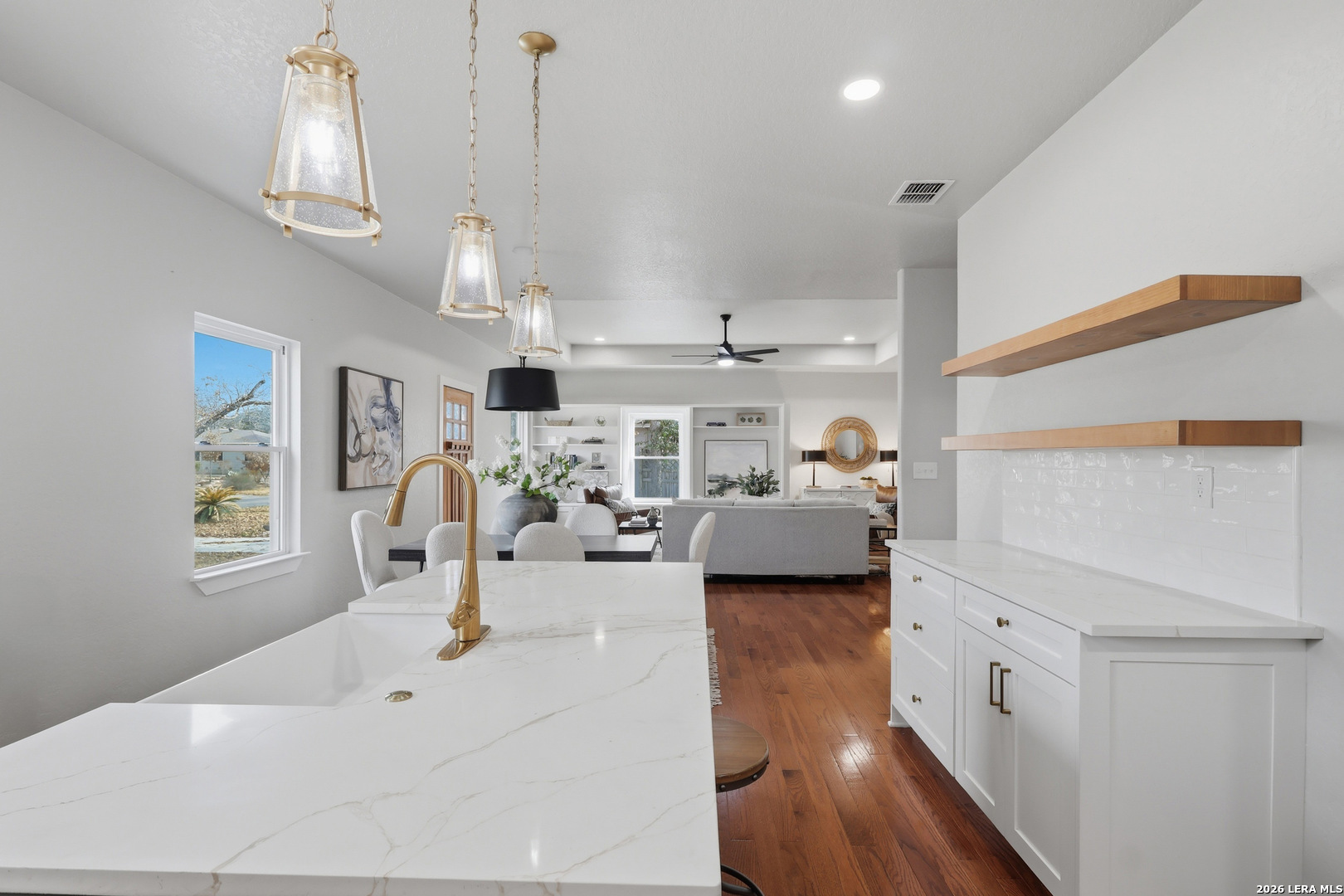 Located in desirable Terrell Heights within coveted Alamo Heights ISD, this timeless residence has been thoughtfully reimagined from the studs with no detail overlooked. The renovation includes new plumbing, roof and roof pitch, spray-foam attic insulation, and beautiful hardwood floors throughout. The light-filled interior showcases 10-foot coffered ceilings, custom cabinetry, quartz countertops, and high-end finishes at every turn. The serene primary suite offers a spacious sitting area, double closets, and private patio access, while the additional bedrooms feature walk-in closets. Exterior upgrades include an oversized new driveway and carport, enhancing both curb appeal and everyday convenience. The home is offered with a new French door refrigerator, dishwasher, and microwave, making it truly move-in ready. Timeless character meets fresh, modern living in one of San Antonio's most sought-after neighborhoods. Offered below recent appraisal due to seller relocation, with pre-listing due diligence available for buyer review.