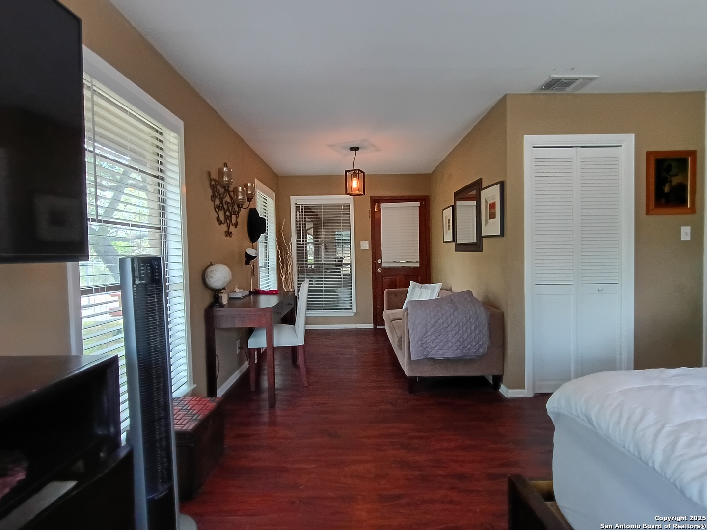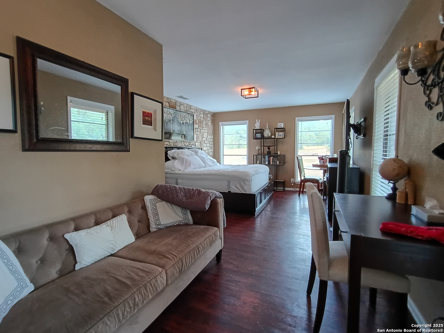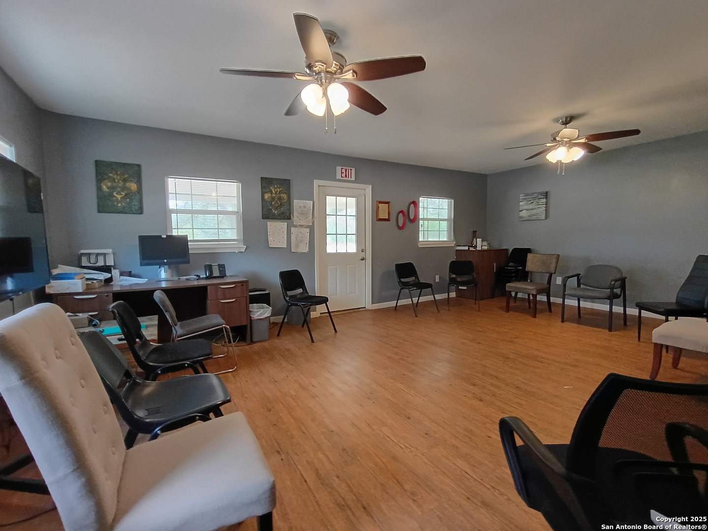 Nestled on a sprawling 6.27-acre estate, 1401 Dezarae Lot 4 in San Antonio, TX, offers a rare blend of residential living and versatile commercial potential. This exceptional property features a recently remodeled 2,004-square-foot ranch-style home, two modern office buildings, and ample land for privacy or future development. The beautifully updated 2,004-square-foot ranch-style home boasts three spacious bedrooms and three well-appointed bathrooms, perfect for comfortable living. The open-concept design includes two generous living rooms, ideal for entertaining or relaxation, and a cozy dining area. The modern kitchen flows seamlessly into the living spaces, creating a warm and inviting atmosphere. The primary suite features a spacious ensuite bath. A dedicated laundry room and a garage converted into a game room add functionality and charm. Outdoors, enjoy a private oasis with a sparkling pool, relaxing jacuzzi, and a sustainable water well. The home can be purchased fully furnished, ready for immediate move-in. The first office building is a versatile 1,200-square-foot structure, built in 2019, and features four offices, two spacious meeting rooms, one interior half bath, and one exterior half bath. With one central HVAC unit, this building offers flexibility for professional use or conversion back to a barn/workshop, catering to a variety of business or hobbyist needs.The second larger 1,776-square-foot office building also built in 2019 is designed for productivity, featuring ten offices, a large meeting room, a half bath, and a covered porch for outdoor collaboration. Equipped with two central HVAC units, this modern space is ideal for corporate offices, creative studios, or professional services. The property is supported by a private water well and septic system, ensuring self-sufficiency and low utility costs. With 6.27 acres of land, this estate offers endless possibilities for expansion, recreation, or investment. Perfect for entrepreneurs, professionals, or those seeking a live-work lifestyle, 1401 Dezarae Lot 4 combines modern amenities, commercial versatility, and serene Texas charm. Schedule a viewing today to explore this one-of-a-kind San Antonio gem!