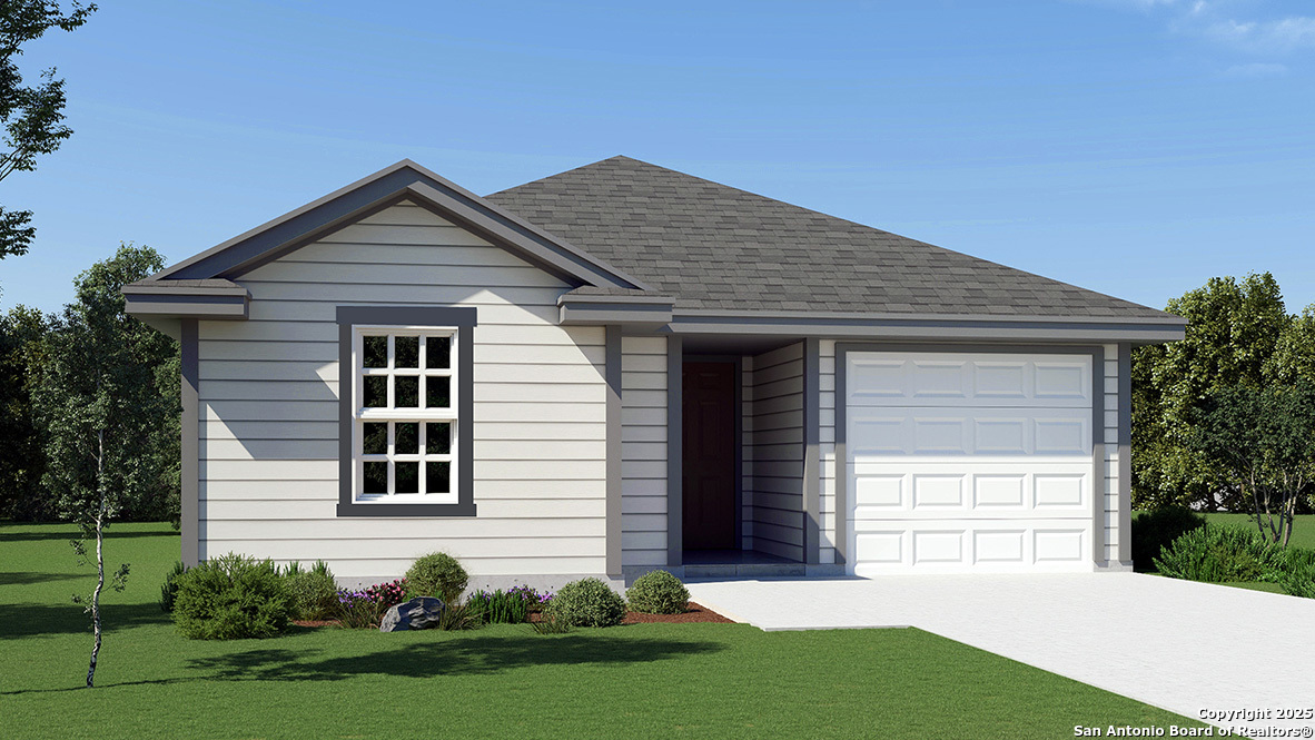 Step into The Tobin floorplan at Riverstone at Westpointe in San Antonio, TX, a single-story home featuring 3 bedrooms and 2 bathrooms. The Tobin also offers 2 classic exterior with siding, a 1-car garage and 1412 square feet of comfortable living space. The Tobin features an open-concept layout that blends seamlessly to creat the perfect every day space designed with you in mind. An elongated foyer leads you to the kitchen and dining space before flowing into a grand living room. The kitchen features quartz countertops, gleaming stainless steel appliances, shaker style cabinets and an eat-in bar that overlooks the dining area. Your main bedroom suite is located off the living area toward the back of the home and includes a walk-in closet and a relaxing bathroom space. The ensuite bathroom includes a single vanity sink with a spacious quartz counter top, shaker style cabinets and combined shower and bathtub. You'll find quality carpet and spacious closets in all of your secondary bedrooms, located off the front foyer of the home. Use these rooms as offices, playrooms or other bonus spaces. Head out the back door located off the living room to find a fully landscaped yard with a state-of-the-art irrigation system. Additional features include sheet vinyl flooring in entry, living room, and all wet areas, quartz counter tops in all bathrooms and our HOME IS CONNECTED base package. Using one central hub that talks to all the devices in your home, you can control the lights, thermostat and locks, all from your cellular device.