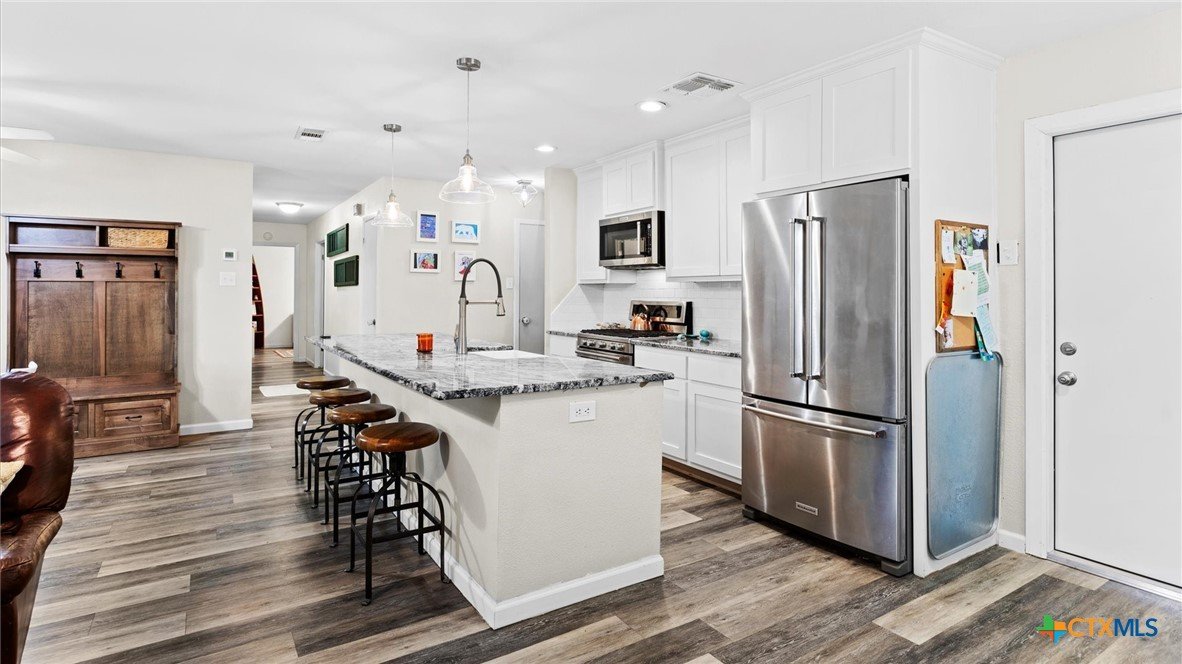 Location, location, location! Discover this beautifully remodeled open floor plan home with 3 bedroom and 2 bathrooms just steps from historic downtown Gruene. This home boast a brand new roof , newer HVAC system, hot water heater, windows, flooring, fixtures, and paint, ensuring a move-in ready experience. The kitchen features new cabinets and granite countertops and an island with a sink adding a touch of modern elegance. The large primary bedroom offers a walk-in closet and an en suite bath for your comfort. Also Enjoy the spacious secondary bedrooms with large closets. Don't miss this opportunity to own a charming home in a prime location near all the attractions and amenities of historic Gruene. Oh and did I mention NO HOA!
