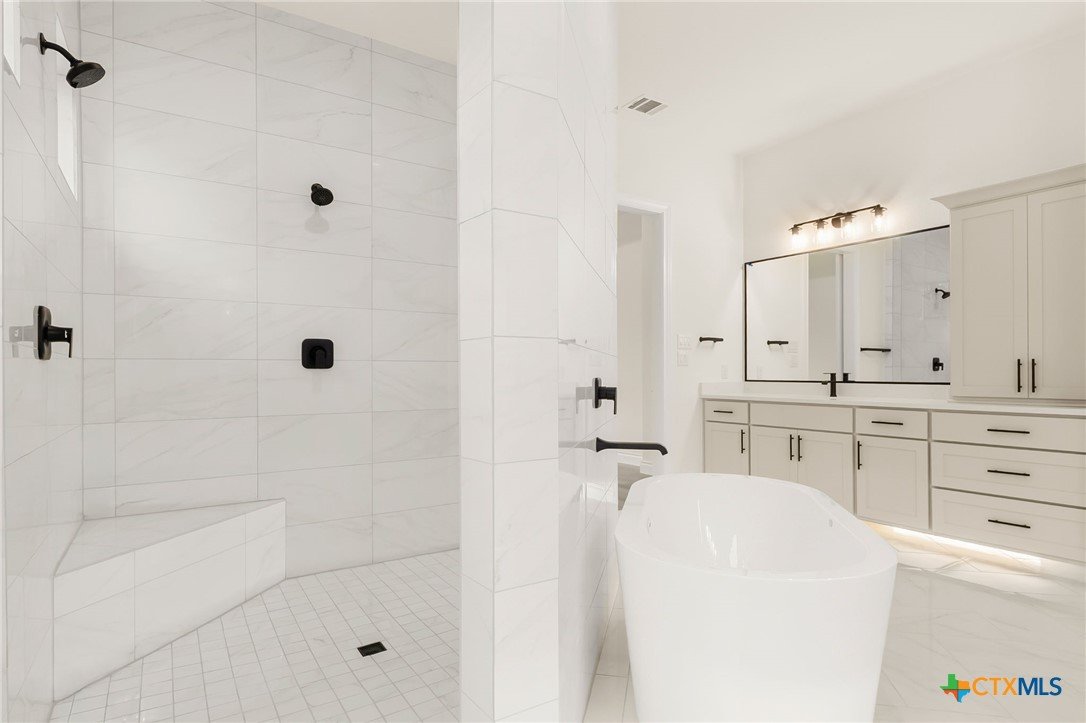 New Construction Home! Welcome to 141 Gadwall Way, a thoughtfully designed 4-bedroom, 3.5-bath home blending modern luxury with smart functionality. The gourmet kitchen features GE Café stainless steel appliances, custom wood cabinetry, a large island with Misterio Quartz countertops, and Black Pearl granite perimeter counters. The private primary suite offers a spa-like bath with a walk-through shower, freestanding tub, premium tilework, and Moen fixtures. Designer details throughout include tray and coffered ceilings, custom millwork, and curated finishes. Enjoy a Smart Technology Package with Z-Wave switches, Wi-Fi-enabled double oven, programmable thermostats, and pre-wired security. The covered back porch with wood-tone ceiling accents and outdoor fireplace creates the perfect space for relaxing or entertaining. Located in serene Mystic Shores, this home delivers comfort, style, and modern convenience.