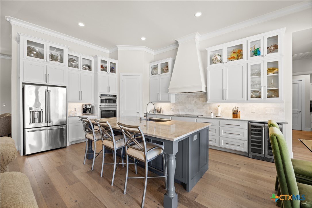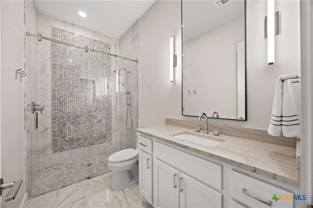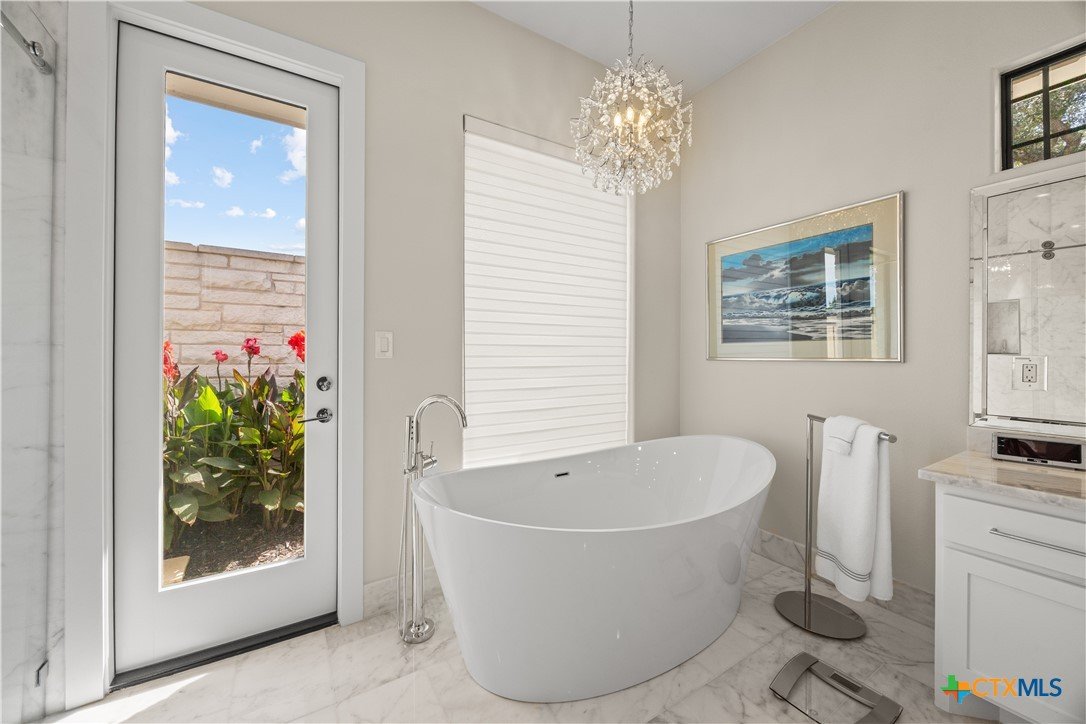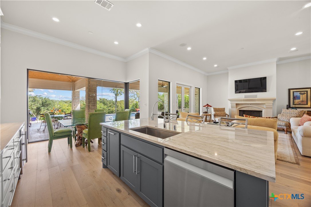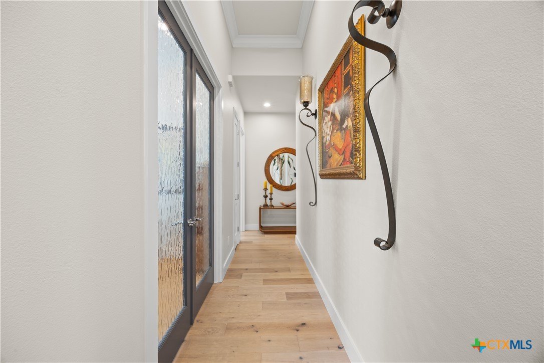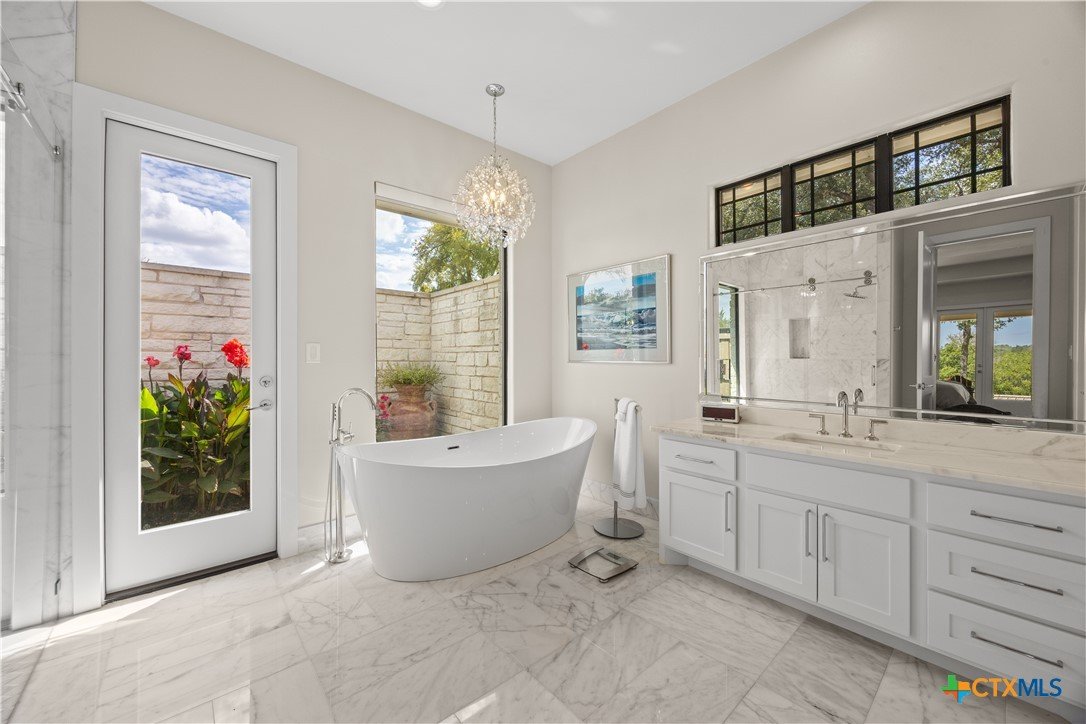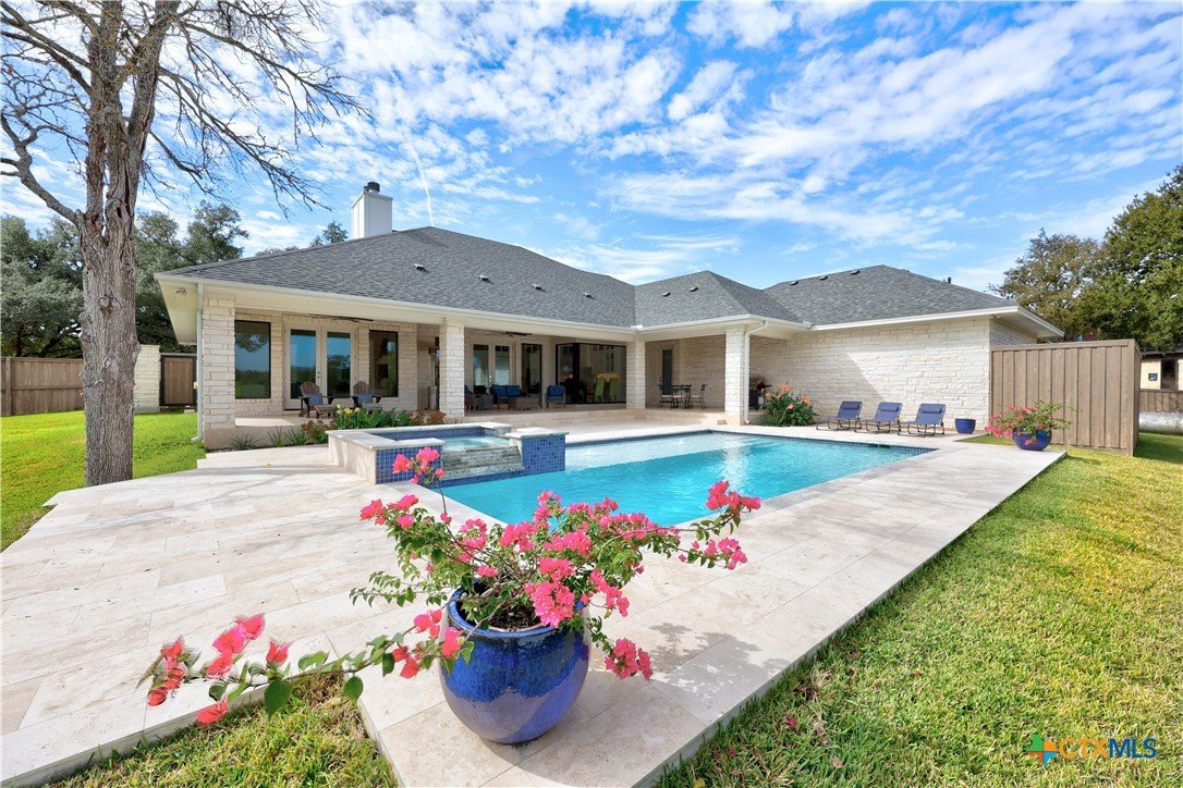 This Exclusive 2.92 Acre Estate provides privacy & tranquility without giving up city amenities. IH35 & downtown Salado are just a 5-minute drive on scenic FM2843. This unique Home presents 3 BR, 3 Ensuite BA, and ½ Guest BA with access to the Pool. Glass French Doors open up to Office/Study with storage closet. The Open Floorplan, high ceilings, & panoramic glasswork brings the beauty of the outdoors inside w/ tranquil views of the tree filled Hill Country throughout. A Custom Corner Glass Wall System in the Dining overlooks the Pool & an amazing view. Oak Wood Flooring, GE Café Appliances, Brizo Plumbing Fixtures, & Quartzite Counter Tops throughout. Fireplaces in the LR & MBR boast Architectural Cast Stone Mantels. The MBA is adorned with a Private Garden while providing pure relaxation with a BainUltra Evanescence Air Jet, HydroTherapy free standing Tub. No need to worry about electricity blackouts; the whole house is backed up by a fully automated Generac Propane Generator. The property has its own Middle Trinity Water Well with 5 HP & Booster Pump, Carbon Filtration, Water Softener & 1000 gal Holding Tank. Not only NO CITY TAXES, NO WATER BILL! Energy efficient with Tankless Water Heater, 2 AC Units, & the Attic cooled with Open Cell Foamed Insulation. Attic has a large Floored Area for Storage. The 30’x18’ heated, lighted Pool with Beach & 8’x6’ Hot Tub is Fully Automated. Travertine Deck & Patios. Yard is fully irrigated with a 22 Zoned Rainbird System. Back yard Fenced with Shadow Box Cedar & 2 Custom Iron Gates adorning the sides while a black pipe fence at the back allows for Game Watching as the deer, turkey & other wildlife pass by daily. Spring-Fed “Mustang Creek” flows through the back of the 2.92 Acres providing beauty & adventure for the entire family.