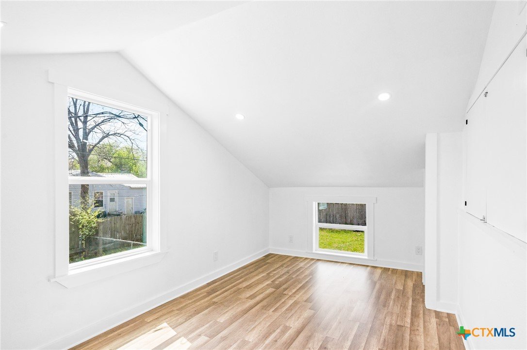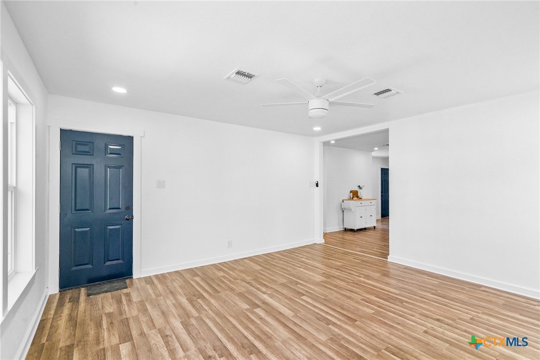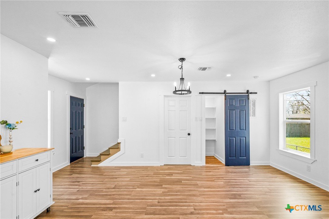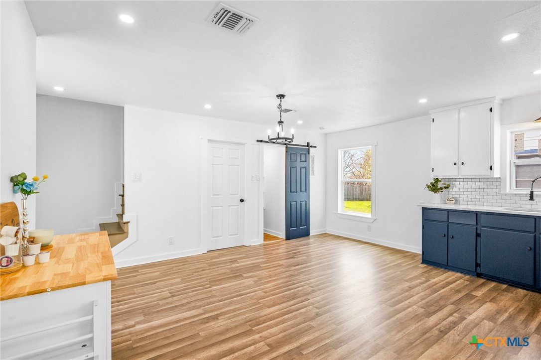 Charming Remodeled 3-Bedroom Home on a Corner Lot! This beautifully remodeled 3-bedroom, 1-bath home is situated on a corner lot, offering a perfect blend of charm and modern upgrades. The fresh exterior paint enhances the curb appeal, while the interior boasts new flooring, energy-efficient windows, and a brand-new central air conditioning system for year-round comfort. The updated kitchen features new countertops, a stylish backsplash, a modern sink and faucet, and freshly painted cabinets. A unique pantry with a sliding barn door adds both character and extra storage space. The remodeled bathroom has been thoughtfully updated with sleek fixtures and finishes for a modern feel. Additional upgrades include new electrical outlets and switches, new light fixtures, and recessed lighting, creating a bright, welcoming atmosphere throughout the home. With an upstairs third bedroom and a downstairs air-conditioned bonus room, you’ll have plenty of space for a home office, playroom, or extra storage. Conveniently located near schools, parks, and shopping! This move-in-ready gem is sure to impress. Schedule your private showing today!