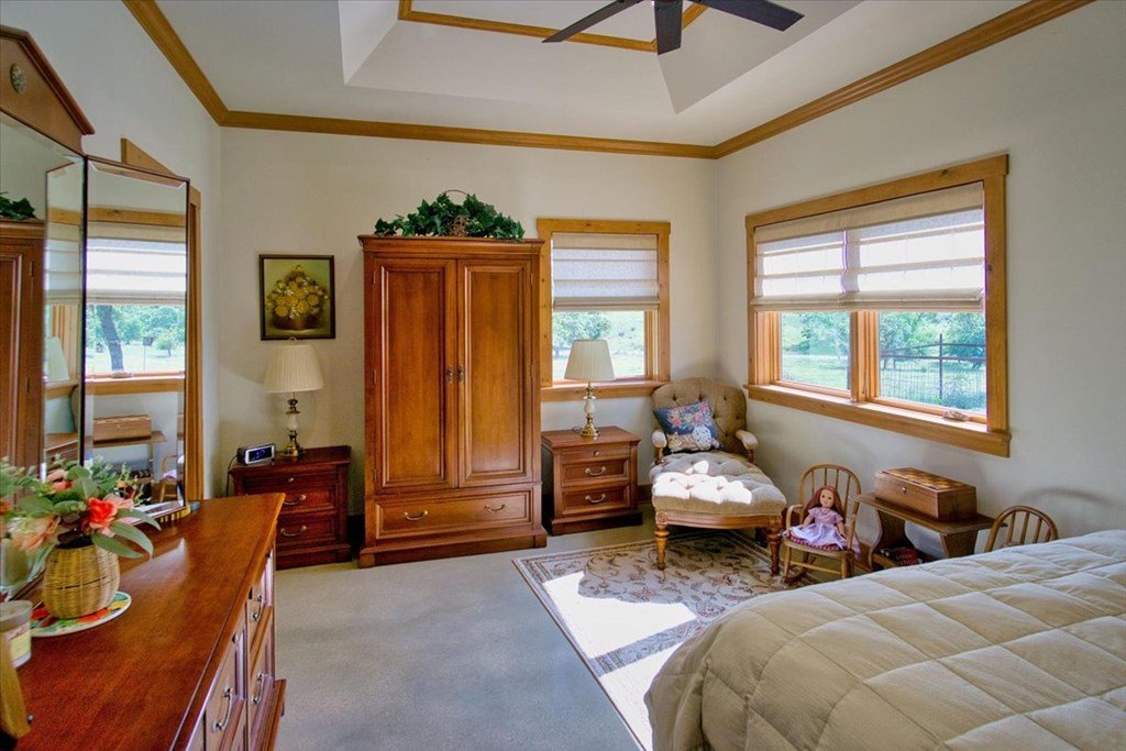 This beautifully maintained property boasts a range of desirable amenities and visually appealing features. Perched on a hilltop, it offers sweeping panoramic views and a spring-fed draw adorned with mature oak trees, creating an exceptional Hill Country atmosphere. The property includes a 3-bedroom, 2-bath main residence, as well as a barn with a 1-bedroom, 1-bath guest suite.