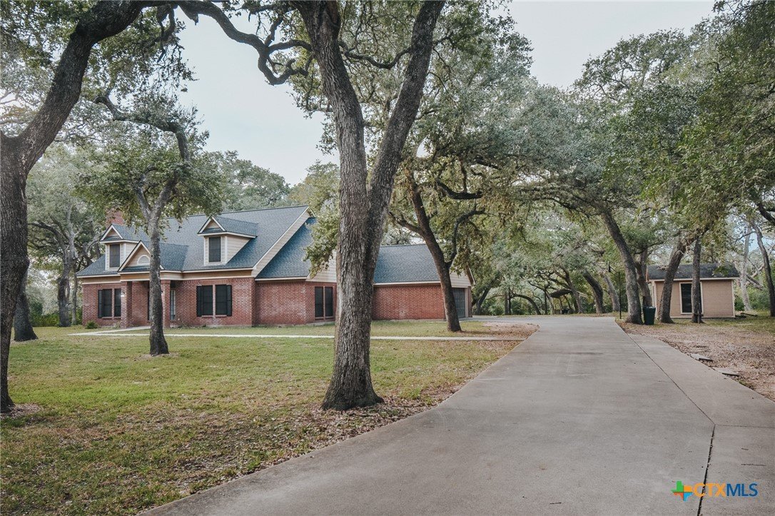Welcome to a truly exceptional property nestled just outside Victoria’s city limits—this spacious two-story home offers generous acreage and a private, tree-lined setting perfect for both family living and easy entertaining. 4 bedrooms / 2.5 baths in approximately 3,240 sq ft of living space. Situated on 2.24 acres with mature trees, well-set off the roadway for privacy and curb appeal. Built circa 1993, this brick/traditional style home showcases solid construction and timeless design. Main level features include a primary suite, office/den, and a well-sized laundry/mud-room—adding convenience and flexibility. Upstairs offers additional bedrooms and living space for family, guests or recreation. Outdoor amenities: patio area ideal for relaxing or hosting gatherings; outbuilding/workshop included—perfect for hobbies or extra storage.