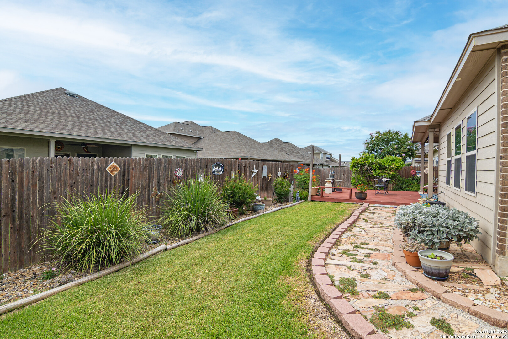 Welcome to this charming 4-bedroom, 2-bath home, built in 2015 and nestled in a quaint neighborhood just off Hwy 46 in desirable New Braunfels, TX. Enjoy the convenience of nearby shopping and amenities while being tucked away from the high-traffic areas of this rapidly growing town. Pride in ownership shines throughout this well-maintained home, featuring updated light fixtures and a sleek induction range in the kitchen. The spacious and thoughtfully designed layout includes a standout primary suite with a custom oversized walk-in shower and two master closets-perfect for added comfort and organization. Step outside to a beautifully landscaped backyard, blooming with native greenery and plants-your own private oasis ideal for morning coffee or relaxing evenings. This home combines convenience, comfort, and care in one exceptional package. Schedule your private showing today!