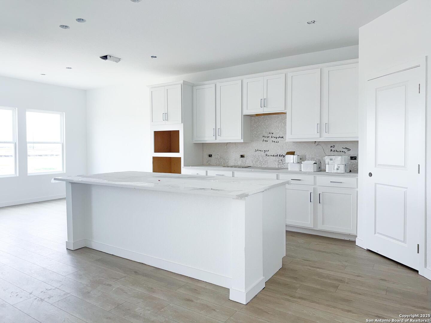 This versatile one-story home is designed for both comfort and everyday living. The gourmet kitchen features upgraded 42" cabinets, a walk-in pantry, and a center island that opens seamlessly to the spacious breakfast and family room, creating a natural hub for cooking, dining, and gathering. The light-filled family room offers plenty of space for relaxation or entertaining, while the secluded primary suite provides a private retreat with a full bath and a generous walk-in closet. Two additional secondary bedrooms. Covered patio and sprinkler system. This home is part of our Coastal Collection - inspired by shorelines and sunny escapes. Light-filled spaces, soft linen and sea glass tones, and airy textures create a relaxed, breezy vibe that makes every day feel like a getaway. Perfect for entertaining or unwinding at home. This home is in Cordova Trails, close to Highway 46, Hill Country drives, hiking, wineries, and vibrant dining in New Braunfels and Seguin, blending adventure with relaxation.