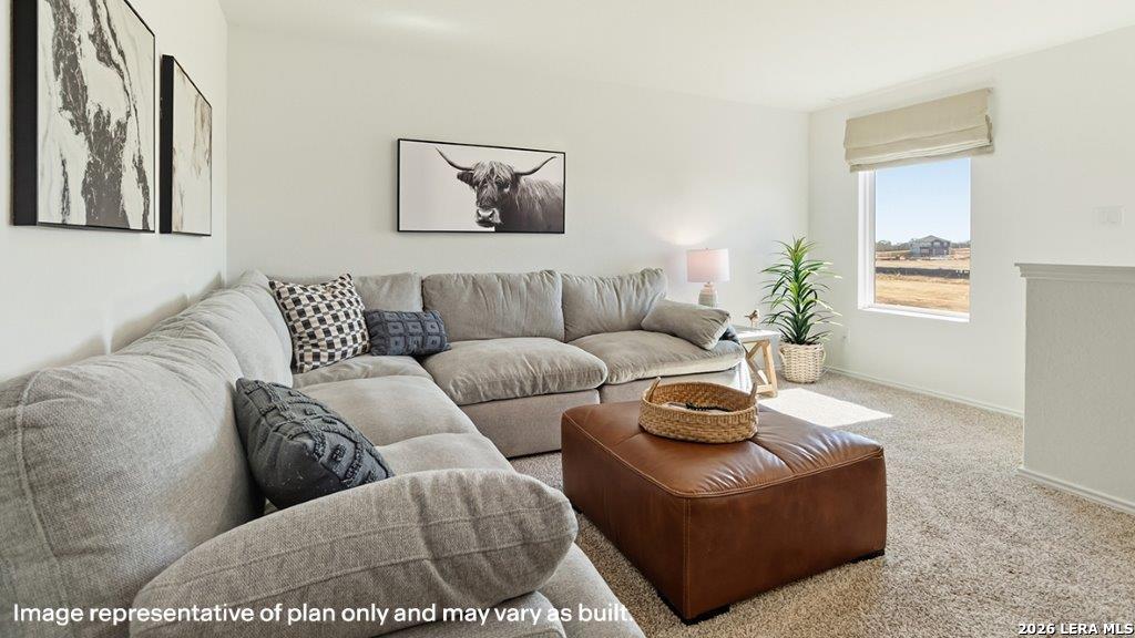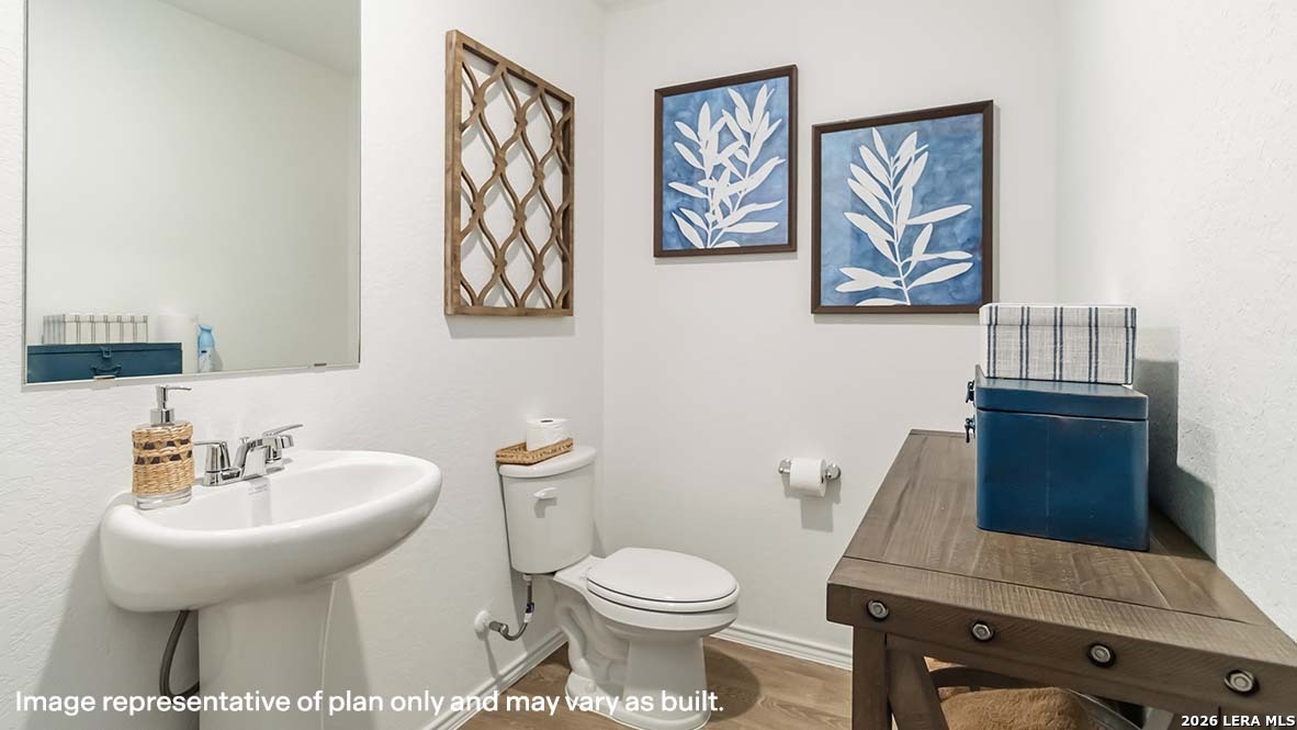 The Emory plan is one of our two-story homes featured in Sereno Springs in Adkins, TX. This new home layout offers 2 classic front exteriors, 5 bedrooms, 2.5 baths, 2 car-garage and 1971 square feet of comfortable living. Step inside The Emory to find an elongated foyer opening to an open concept kitchen, dining area, and family room. The gourmet kitchen faces the living area so you don't miss a thing while cooking and includes quartz counter tops, stainless steel appliances and shaker style cabinetry. The main bedroom is located toward the back of the home on the first floor and features an attractive attached bathroom with a walk-in shower, quartz countertops, a grand walk-in closet and plenty of storage space. The second story includes all secondary bedrooms, a full bathroom with double-vanity sinks, and game room. You'll have carpeted floors in every bedroom and sheet vinyl flooring in your bathrooms and utility room. Additional features include sheet vinyl flooring in entry, living room, and all wet areas, quartz counter tops in all bathrooms and HOME IS CONNECTED base package. Using one central hub that talks to all the devices in your home, you can control the lights, thermostat and locks, all from your cellular device.