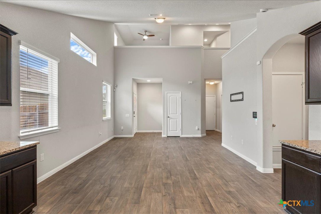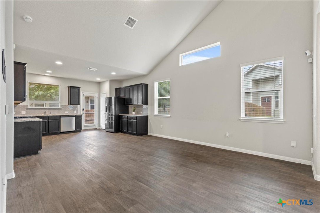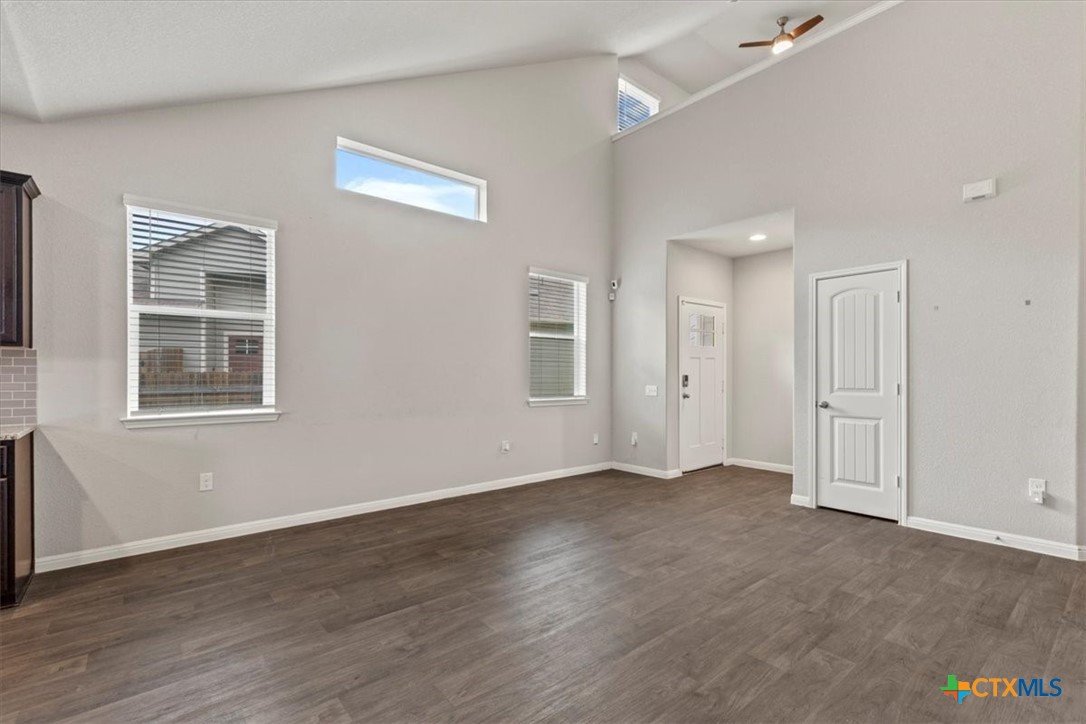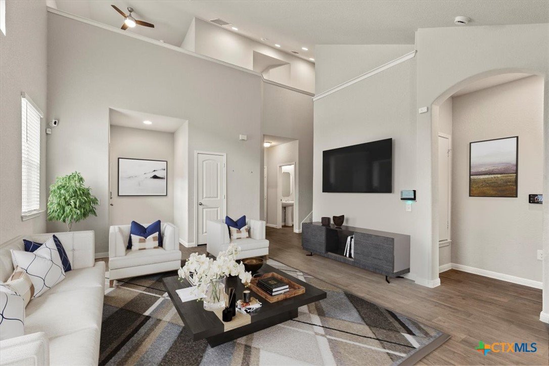 Nestled in the quiet neighborhood of Fort Dessau, discover low maintenance living at it's absolute best! Built in 2019, this North facing 2 story home features 2 bedrooms with the primary suite located on the main floor, 2.5 bathrooms, covered patio, and 1,491 spacious square feet for easy living. Upon entry, soaring vaulted ceilings in the living space give you a light and airy feel. While durable for busy households, the dark wood vinyl flooring gives a touch of sophistication while adding a warm and inviting ambiance. As you make your way into the open kitchen, discover ample cabinet space, granite counters, gas range, and recessed lighting making meal prep effortless. The oversized primary bedroom located on the main floor is large enough to house a King size bedroom set providing relaxation and peace. The en-suite bath features a large walk in shower and a perfect vanity space making busy mornings a breeze along with providing a private retreat for getting ready with ease. Located on the opposite side of the home is a separate laundry room with dedicated space to keep laundry tasks neatly contained ensuring your living areas are kept tidy and stress free. Perfectly located across is the half bathroom offering a practical solution for entertaining guests while enhancing the privacy of bedroom spaces. Venture upstairs and discover a second living space as versatile as you. Easily transform this space to a game room, play area for the kids, office, media room, or whatever fits the needs of your family. You will also find a full bathroom perfectly situated for homeowners and guests. A second bedroom offers privacy and convenience while allowing everyone their own space. Enjoy the added convenience of remote controlled ceiling fans in the bedrooms and bonus room. Covered patio and private fenced in yard make for easy entertaining. Front and back lawn maintenance ensures for the easiest low maintenance living. Don't wait and schedule your tour today!