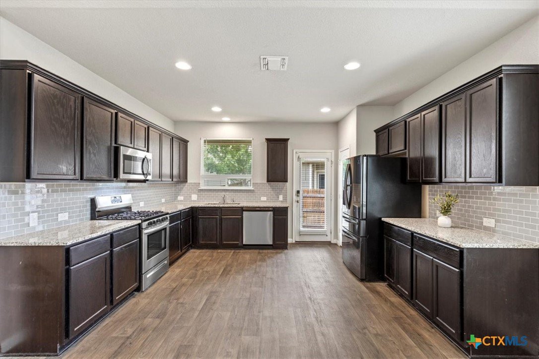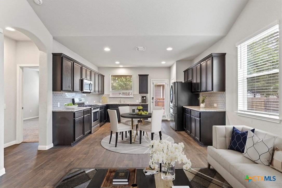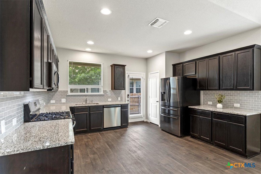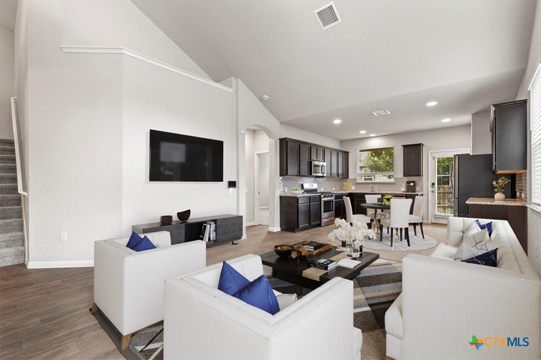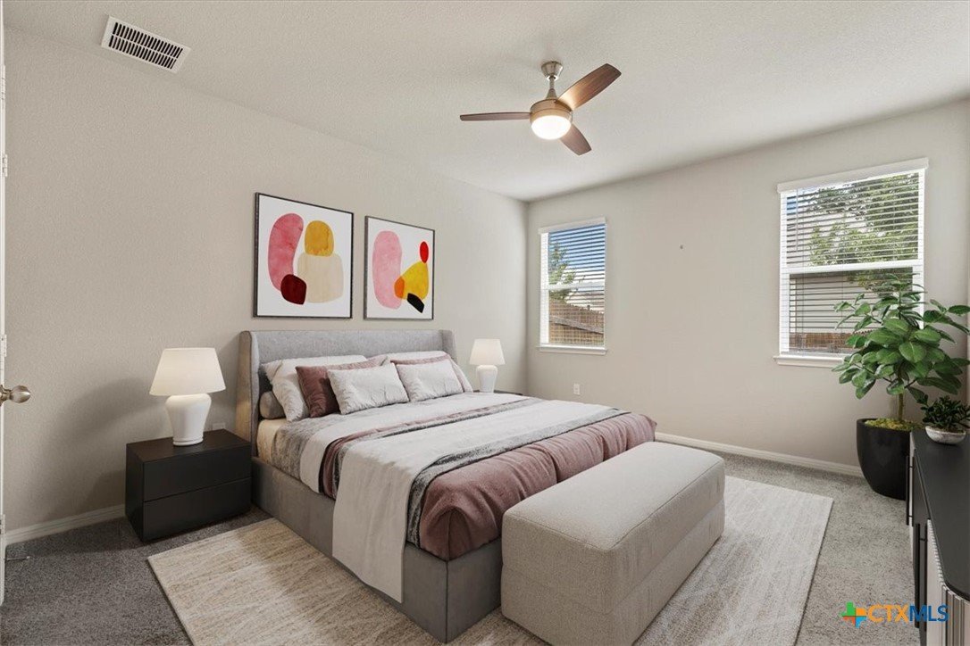 Nestled in the quiet neighborhood of Fort Dessau, discover low maintenance living at it's absolute best! Built in 2019, this North facing 2 story home features 2 bedrooms with the primary suite located on the main floor, 2.5 bathrooms, covered patio, and 1,491 spacious square feet for easy living. Upon entry, soaring vaulted ceilings in the living space give you a light and airy feel. While durable for busy households, the dark wood vinyl flooring gives a touch of sophistication while adding a warm and inviting ambiance. As you make your way into the open kitchen, discover ample cabinet space, granite counters, gas range, and recessed lighting making meal prep effortless. The oversized primary bedroom located on the main floor is large enough to house a King size bedroom set providing relaxation and peace. The en-suite bath features a large walk in shower and a perfect vanity space making busy mornings a breeze along with providing a private retreat for getting ready with ease. Located on the opposite side of the home is a separate laundry room with dedicated space to keep laundry tasks neatly contained ensuring your living areas are kept tidy and stress free. Perfectly located across is the half bathroom offering a practical solution for entertaining guests while enhancing the privacy of bedroom spaces. Venture upstairs and discover a second living space as versatile as you. Easily transform this space to a game room, play area for the kids, office, media room, or whatever fits the needs of your family. You will also find a full bathroom perfectly situated for homeowners and guests. A second bedroom offers privacy and convenience while allowing everyone their own space. Enjoy the added convenience of remote controlled ceiling fans in the bedrooms and bonus room. Covered patio and private fenced in yard make for easy entertaining. Front and back lawn maintenance ensures for the easiest low maintenance living. Don't wait and schedule your tour today!