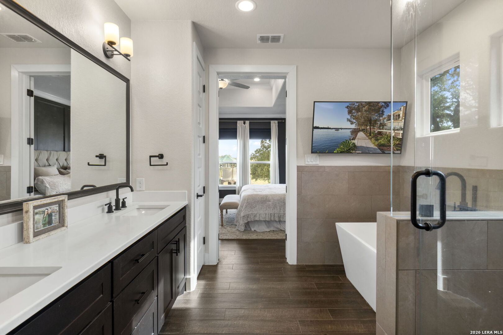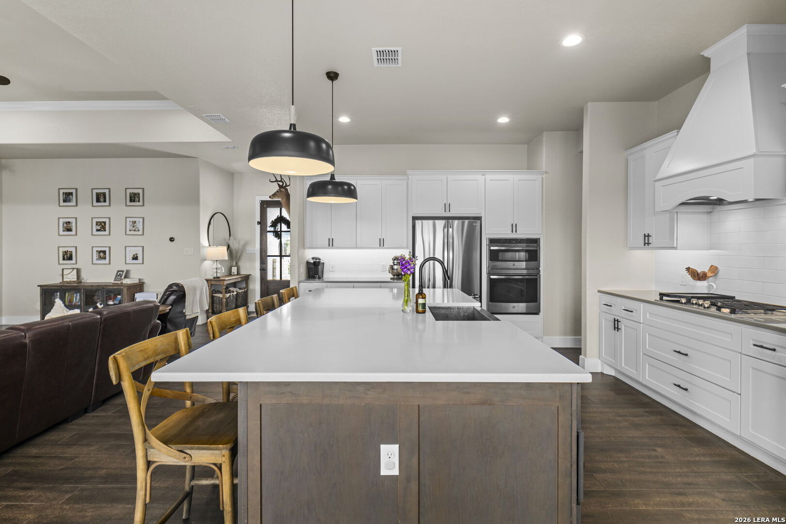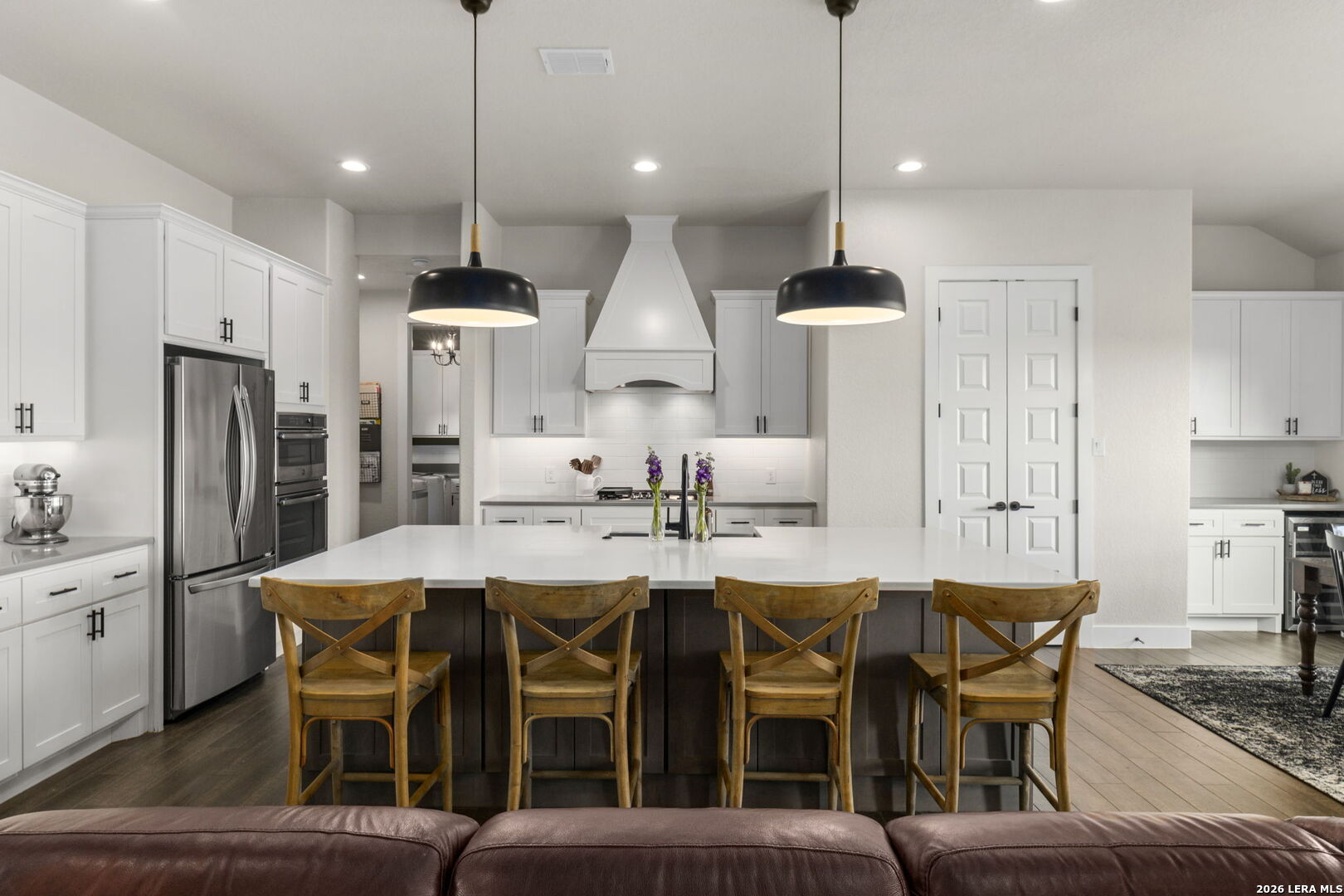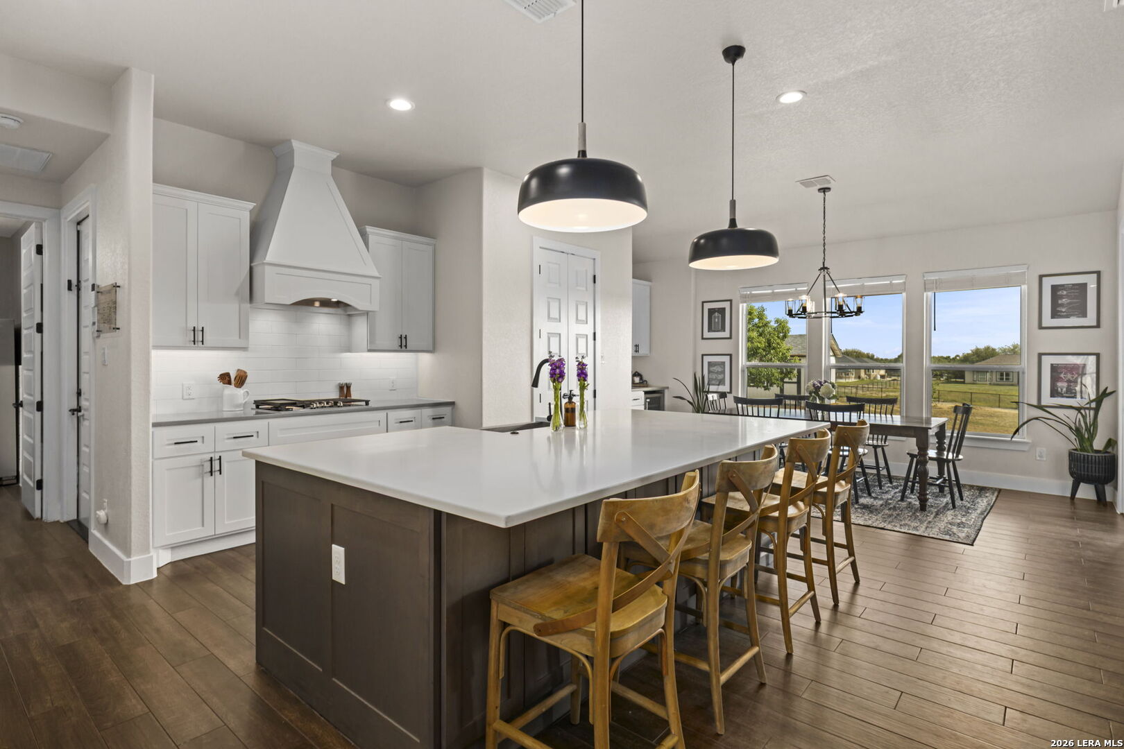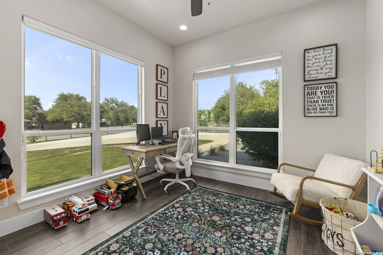 Welcome to Hill Country Living at its best! Situated on a fully fenced 1-acre lot, this home offers the perfect blend of comfort, functionality, and outdoor enjoyment. This single-story home features 4 bedrooms, 2 bathrooms, a 2-car garage and an open-concept layout designed for everyday living and entertaining. Inside, you'll find tile flooring throughout and a desirable split-bedroom floor plan for added privacy. The spacious living room is centered around a beautiful fireplace with custom built-ins and flows seamlessly into the dining area filled with natural light from oversized windows. The kitchen is thoughtfully designed with a large eat in island, Kent Moore cabinetry, gas cooking and generous prep and storage space. The private primary suite overlooks the backyard and features TWO walk-in closets, dual vanities, a stand-alone soaking tub, and separate shower. Secondary bedrooms offer flexibility for guests, office space, or hobbies. The spacious backyard offers peaceful Hill Country views, wide open space and frequent axis and whitetail deer sightings in the evenings. A large 12x24 ft. storage building provides excellent space for hobbies, tools, or extra storage. Neighborhood amenities include a community pool, playground, and walking trails, all conveniently located near the Guadalupe River and the natural beauty of the Texas Hill Country.