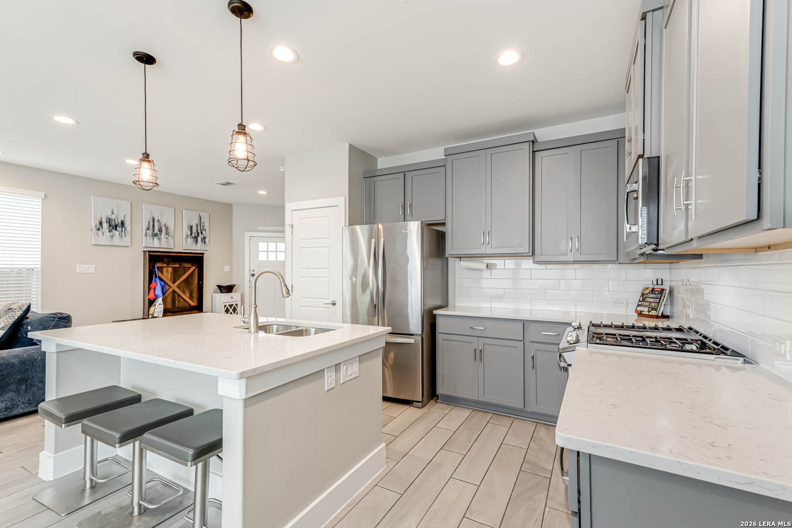 Located in the highly coveted Alamo Heights School District, this beautifully designed 3-bedroom, 3.5-bath home offers modern living in a fabulous, highly desirable location. Built in 2019, the home features an open-concept floor plan ideal for both everyday living and entertaining. The spacious kitchen includes a gas cook-top and opens seamlessly to the main living and dining areas. Upstairs you'll find all three bedrooms, a game room, and a conveniently located laundry room. The primary suite offers privacy and comfort, while the additional bedrooms provide ample space for family or guests. Enjoy a zero-scaped/low maintenance exterior, perfect for lock-and-leave living. Additional features include a two-car garage and thoughtfully designed layout throughout.