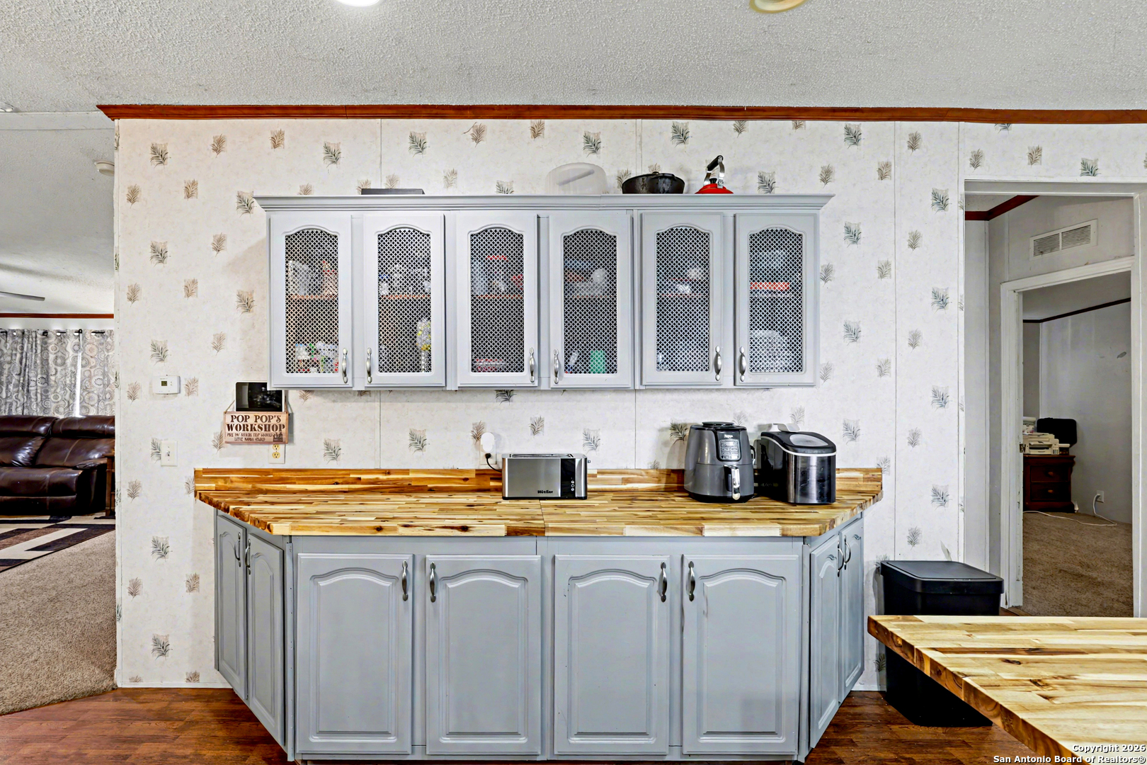 This beautiful 3 bedroom/1 office 2 bath home has a spacious covered front porch. The main bedroom has an office attached for privacy with built in cabinets and desk. The fenced in back yard has a large slab for entertaining. The smaller out building is 46x32 wood frame shop that is divided into 3 areas. It has 2 roll up doors measuring 9x7 and 16x10. The 2nd out building is a 50x36 enclosed metal building with a covered and fenced 47x17 back area. It has 3 roll up doors measuring 10x17. The covered concrete 19x17 pens are divided into 2 areas for any animal project. All out buildings are plumbed for water. The largest building is on it's own electric meter separate from the home.