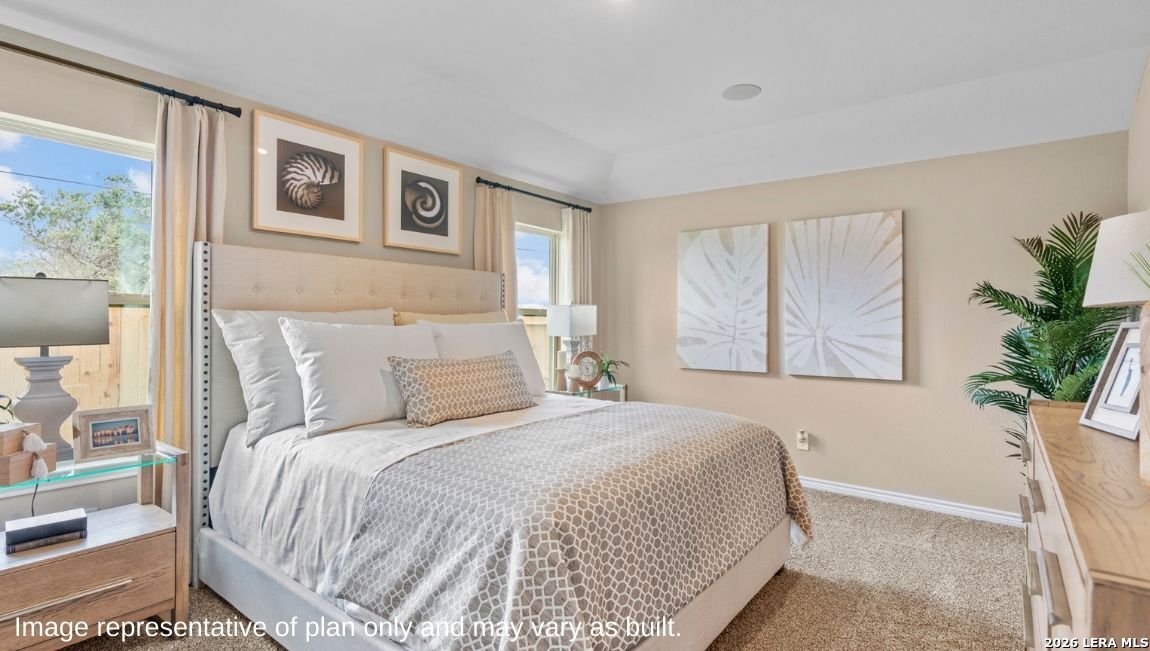 Welcome to The Caden floor plan, where thoughtful design meets everyday comfort in this spacious single-story home located at The Birch at Spencer Ranch in Boerne, TX. With 1595 square feet of living space, this home offers 3 bedrooms, two full bathrooms and an inviting open-concept layout perfect for modern lifestyles. The kitchen is the centerpiece of The Caden, featuring stainless steel appliances, a deep single basin farmhouse sink, quartz countertops and classic white subway tile backsplash. A spacious kitchen island offers additional prep space and seating, while an elongated pantry just off the kitchen provides generous storage to keep everything neatly organized. Retreat to the main bedroom suite, complete with a tiled walk-in shower, dual vanity sinks and a large walk-in closet. Your secondary bedrooms are also retreats and feature quality carpet flooring, large windows and ample closet space, making them perfect for guests, home offices or hobby areas. This home includes our HOME IS CONNECTED base package. Using one central hub that talks to all the devices in your home, you can control the lights, thermostat and locks, all from your cellular device. Additional highlights include a covered patio (per plan) and a fully landscaped and irrigated yard for outdoor enjoyment. You'll also love vinyl plan flooring in the main living areas, kitchen and wet zones as well as a pre-plumbed water softener loop for added convenience. The Caden is designed to support your lifestyle with comfort, flexibility and timeless style - all located in the welcoming The Birch at Spencer Ranch community.