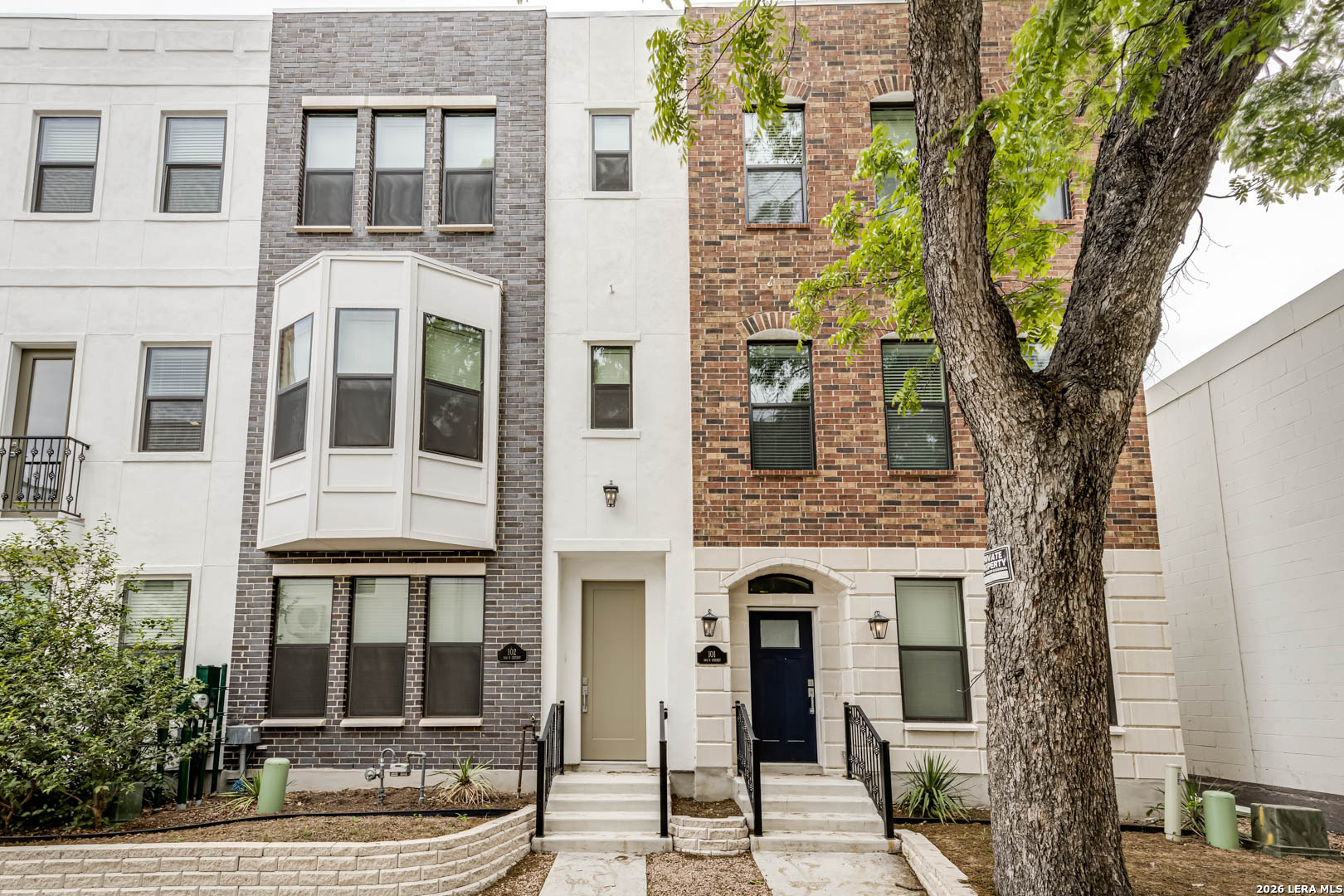 Set within a private 26-home community featuring a classic urban townhouse design with timeless architectural detailing, this collection of four side-by-side townhomes offers a rare opportunity to own scale and flexibility in a rapidly growing Downtown San Antonio location. You're within walking distance to Hemisfair, St. Paul Square, Alamo Dome and the Riverwalk, placing dining, entertainment, and major employment hubs close by. Two residences already operate as short-term rentals,while the remaining two have never been lived in and allow you to pursue mid-term leasing, long-term tenants, corporate housing, or an owner-occupant strategy. Each townhome features a 3-bedroom, 3.5-bath layout with a two-car garage, open-concept living, wood-look tile and concrete flooring, quartz countertops, stainless steel appliances, and custom cabinetry designed for durability and everyday function. A first-floor office with a full bath adds flexibility and can easily serve as a third bedroom to increase rental potential. The community also supports live-work use, making it a practical option for small business owners. This is a straightforward opportunity to secure multiple income streams within one cohesive asset while positioning yourself in an area seeing continued growth and demand.