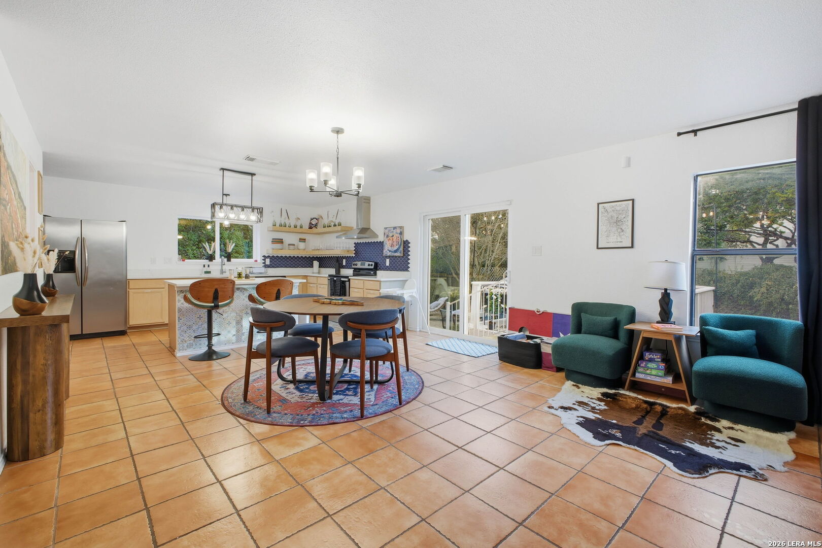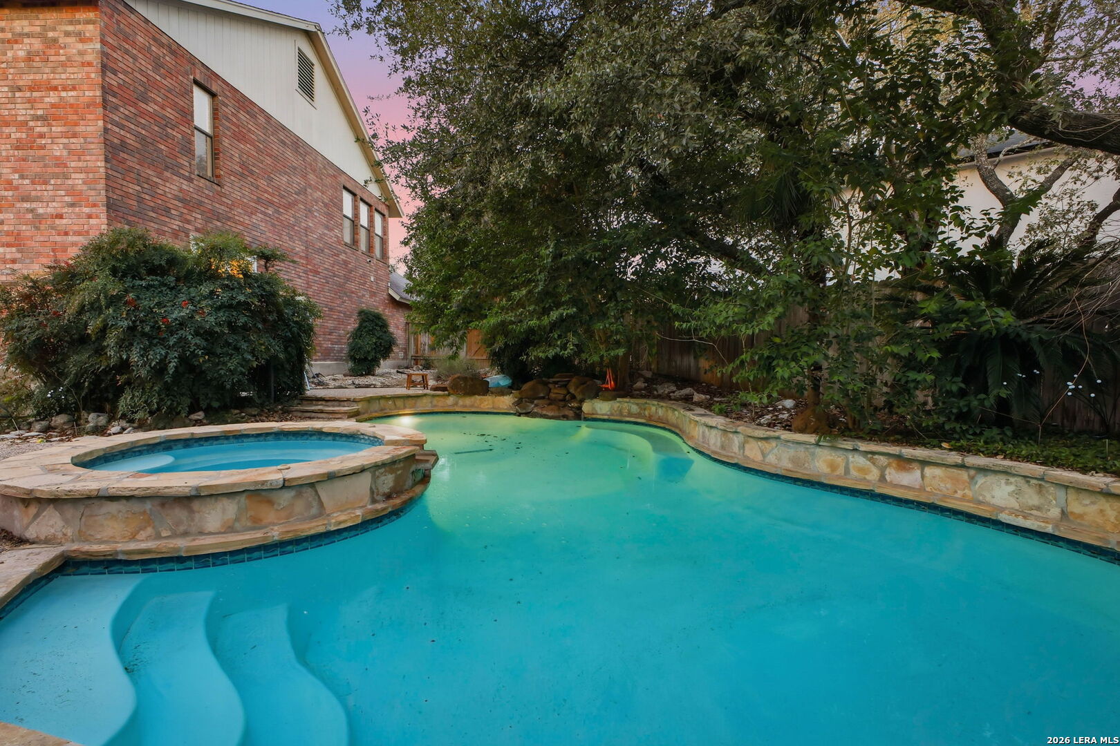 Beautifully furnished and thoughtfully updated, this inviting home is nestled on a quiet cul-de-sac among mature trees in a highly desirable North Central San Antonio location. From the moment you arrive, an elegant brick-accented entry patio sets the tone for the warm, welcoming character found throughout the home. Inside, the bright and open floor plan offers spacious living areas designed for both everyday comfort and entertaining. The kitchen features stylish finishes, stainless steel appliances, and a sunny breakfast area that flows seamlessly into a large family room anchored by a cozy wood-burning fireplace. Generously sized bedrooms, walk-in closets, and beautifully updated baths provide comfort and flexibility for a variety of lifestyles. Step outside to experience the true highlight of the property - a secluded backyard retreat set on nearly a quarter-acre homesite. The lush, tropical landscaping surrounds a resort-style Keith Zars pool and spa with waterfall feature, ambient lighting, flagstone walkways, and a spacious wood deck, creating a peaceful and private setting perfect for relaxing or hosting gatherings. Tasteful updates, beautiful finishes, and furnishings available make this home truly move-in ready. The property currently holds an active short-term rental permit, offering additional flexibility for future use. Conveniently located near USAA, the Medical Center, major highways, shopping, and dining, this home combines comfort, style, and location in one exceptional package.