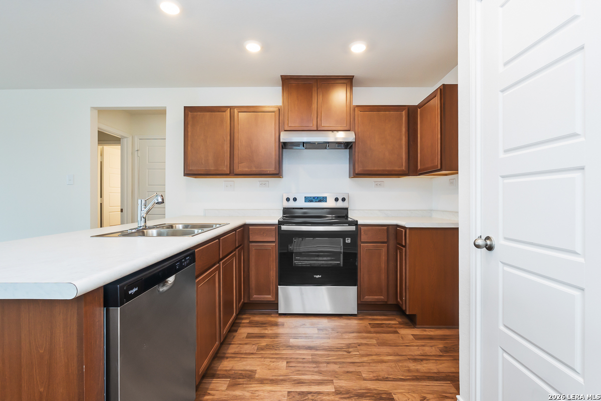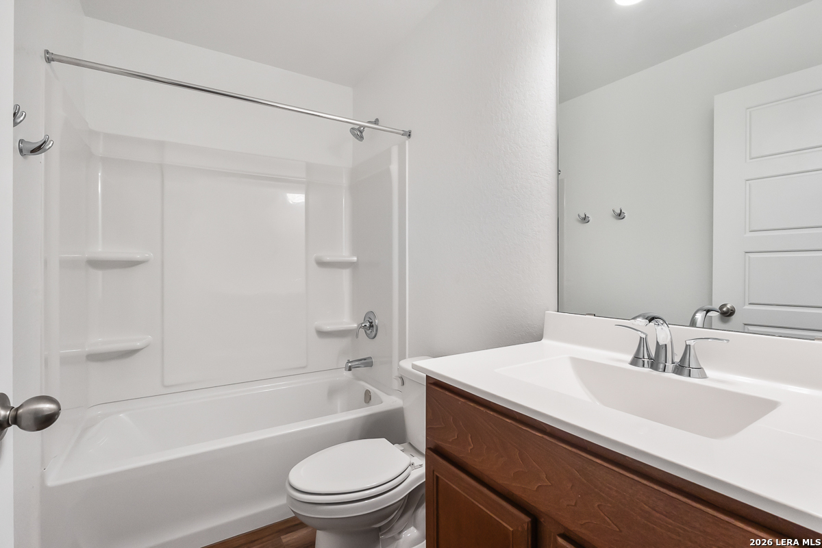 Discover comfort and style in this open-concept home designed for modern living. The kitchen shines with Whirlpool stainless steel appliances, Woodmont Cody 42-in. upper cabinets, and a Daltile tile backsplash. Relax in the spacious primary bath featuring a raised vanity, upgraded cabinets, and a 42-in. garden tub/shower with Daltile tile surround. Decorative finishes include a Carrara-style entry door, Kwikset Polo interior hardware, 2-in. faux wood blinds, and durable vinyl plank flooring throughout the kitchen, great room, and baths. Outdoors, enjoy a fully sodded yard with an automatic sprinkler system for easy maintenance.