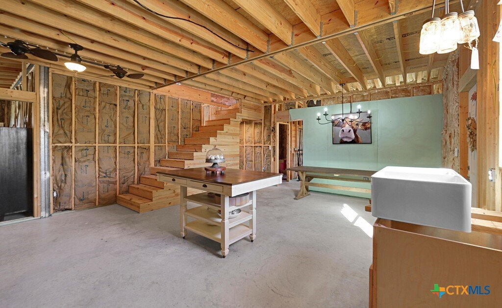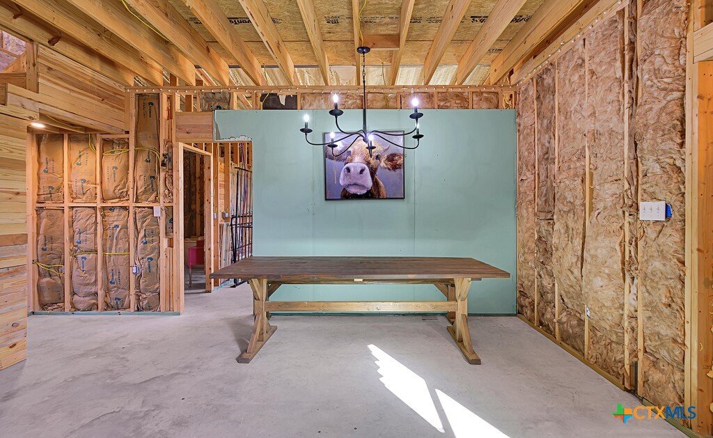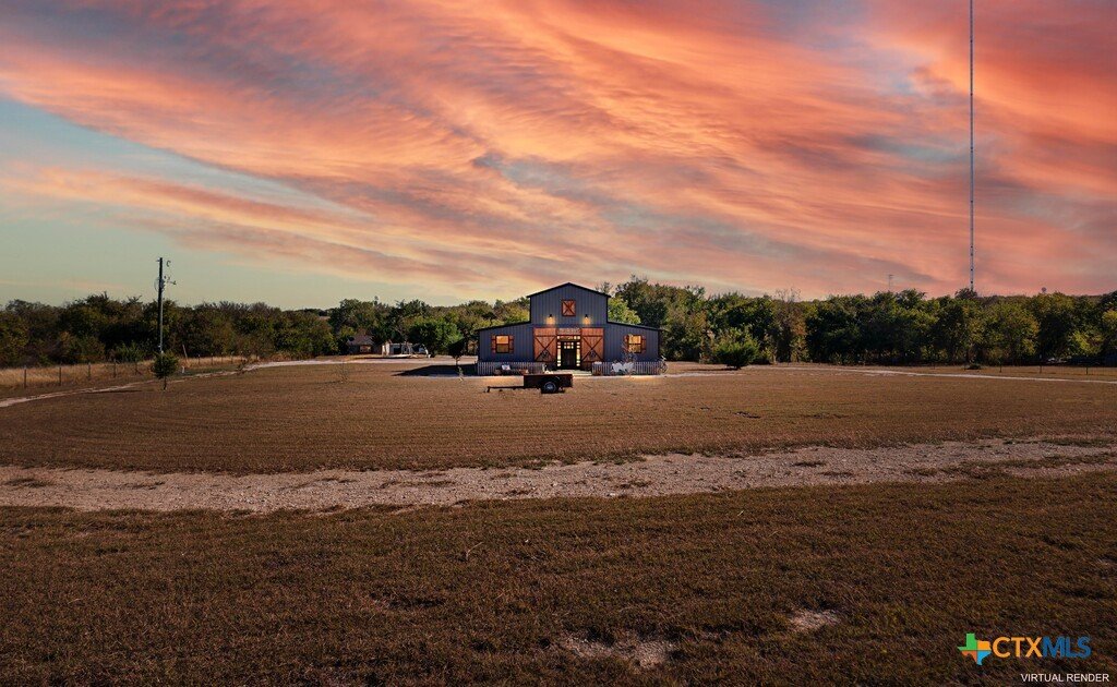 Discover this exceptional 2025-built barndominium offering endless possibilities on a private, fully fenced property. This home features unfinished interior space, ready for your personal touches and custom finishes. The thoughtful design includes a spacious upstairs loft with potential to accommodate two additional bedrooms, maximizing your living options. The property boasts outstanding outdoor amenities including a poured concrete patio perfect for entertaining, a functional shed, and a versatile greenhouse or chicken coop structure. Agricultural enthusiasts will appreciate the dedicated half-acre dog run and livestock area. Two RV hookups with 220 amp service provide excellent guest accommodations or rental income potential, with one featuring septic connection. Practical features include a large walk-in pantry, durable metal roofing, and an electric gate for enhanced security and convenience. A pole light illuminates the front of the property, providing excellent visibility and safety. The property offers complete privacy with no restrictive covenants, allowing you to customize your lifestyle without limitations. Water and electric utilities are available and ready for connection. Located in peaceful Moody, this barndominium provides rural tranquility while maintaining reasonable access to area schools and parks. The combination of modern construction, agricultural potential, and customizable living spaces creates an ideal opportunity for those seeking a unique property that can adapt to their specific needs and dreams.
