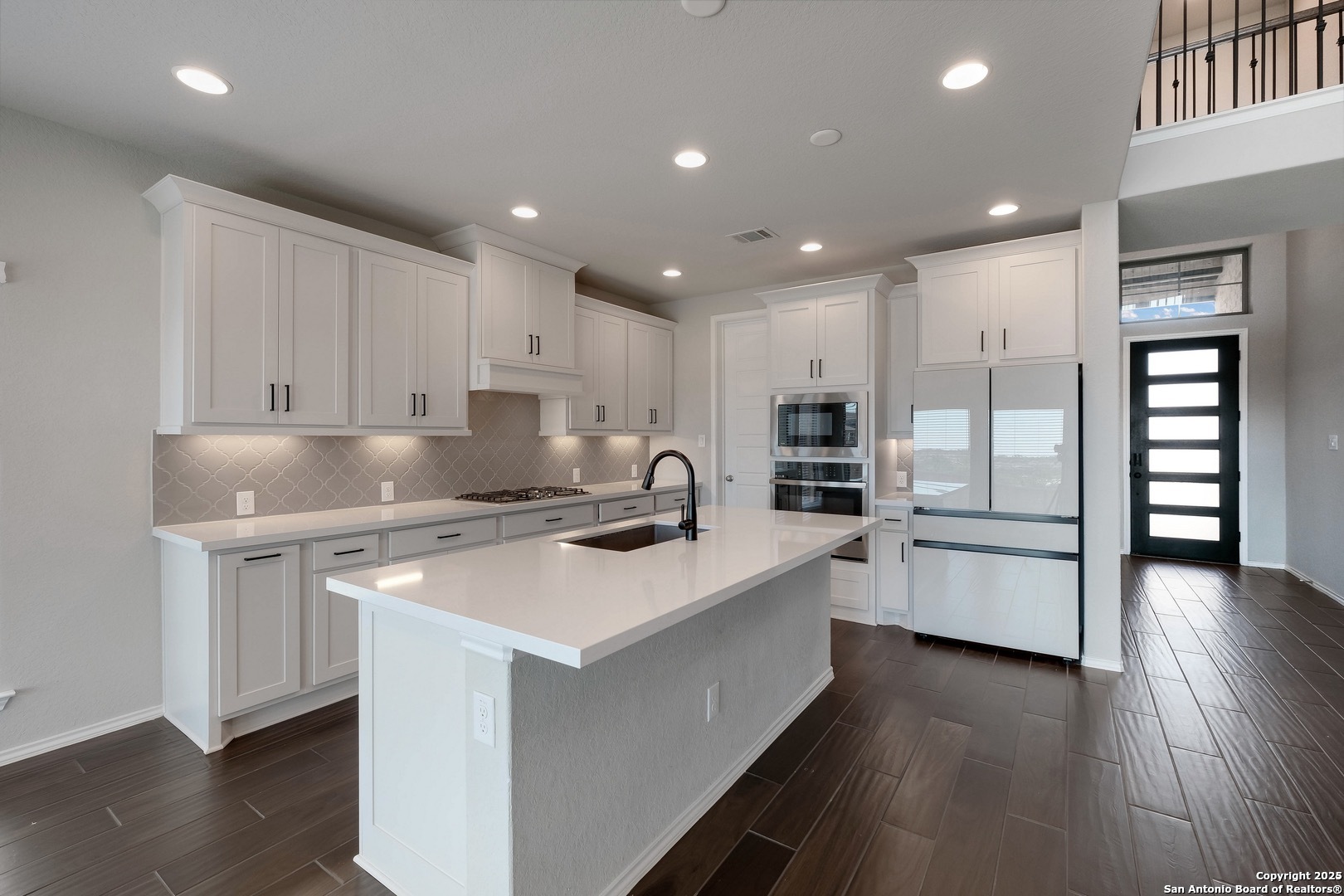 Fall in love with this beautiful 4 bedroom, 3-1/2 bath home located in the highly desired Ladera! Fantastic open floorplan with an abundance of natural light! Featuring an island kitchen with 42-inch cabinets, recessed lighting, appliances to include microwave, dishwasher, refrigerator and gas cooking! The master bath has a frameless walk-in shower, double vanity with solid counters, and a large walk-in closet. The backyard includes a covered patio with a sprinkler system. Located in sought after Medina Vally
