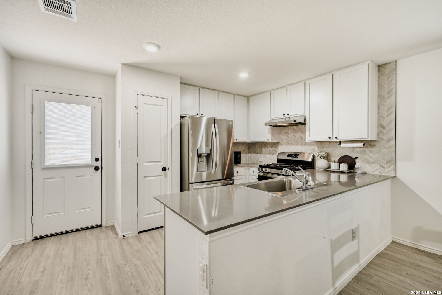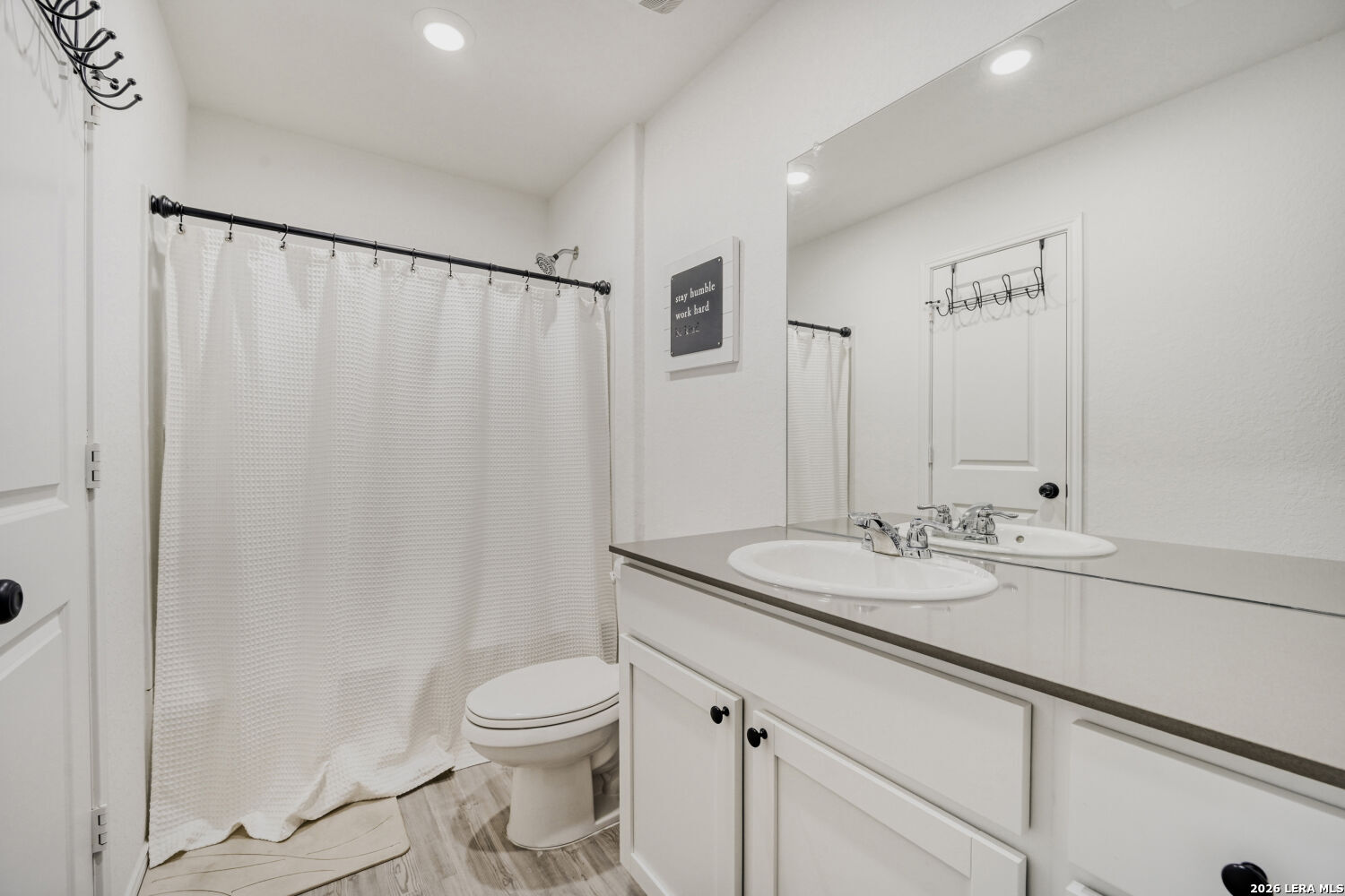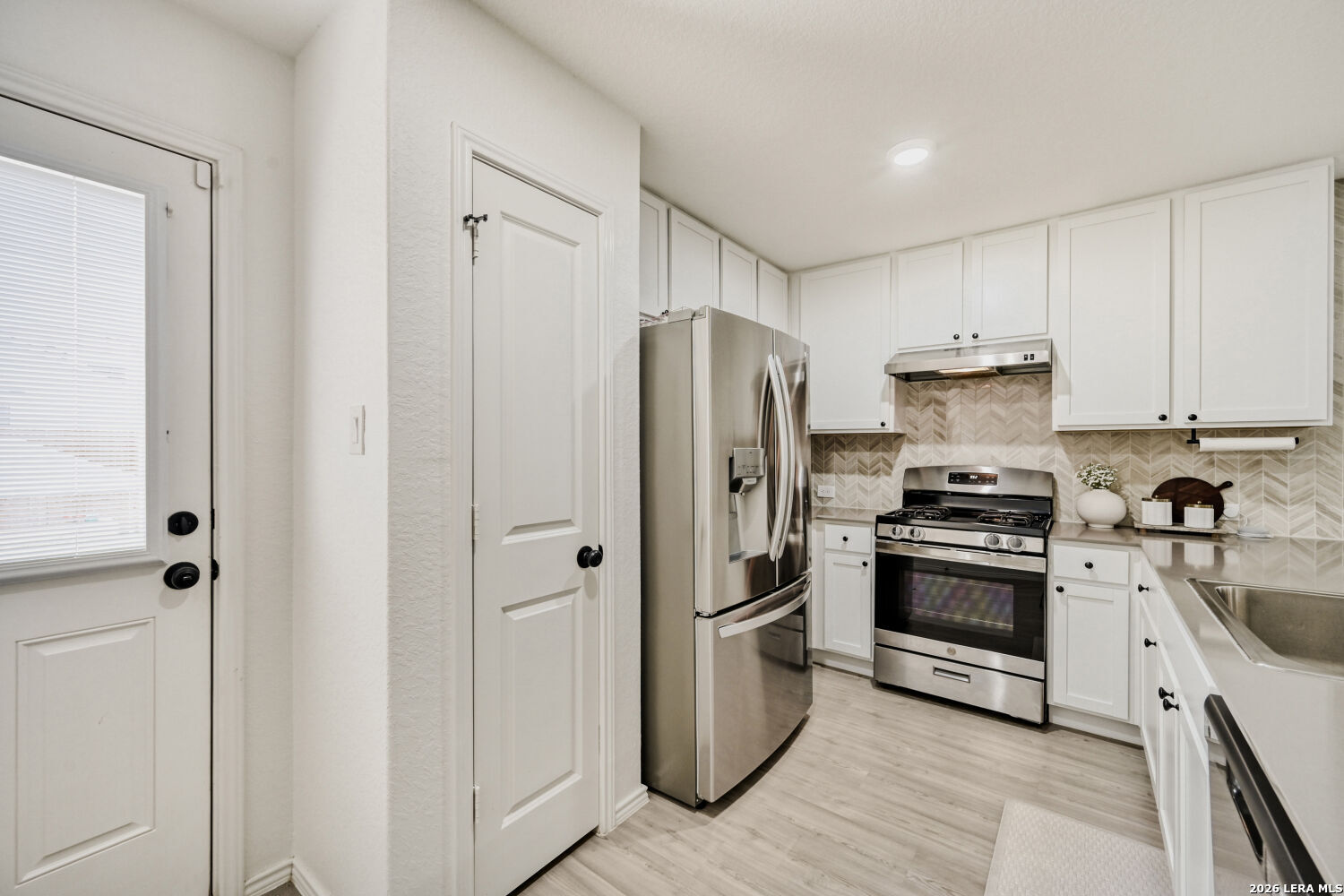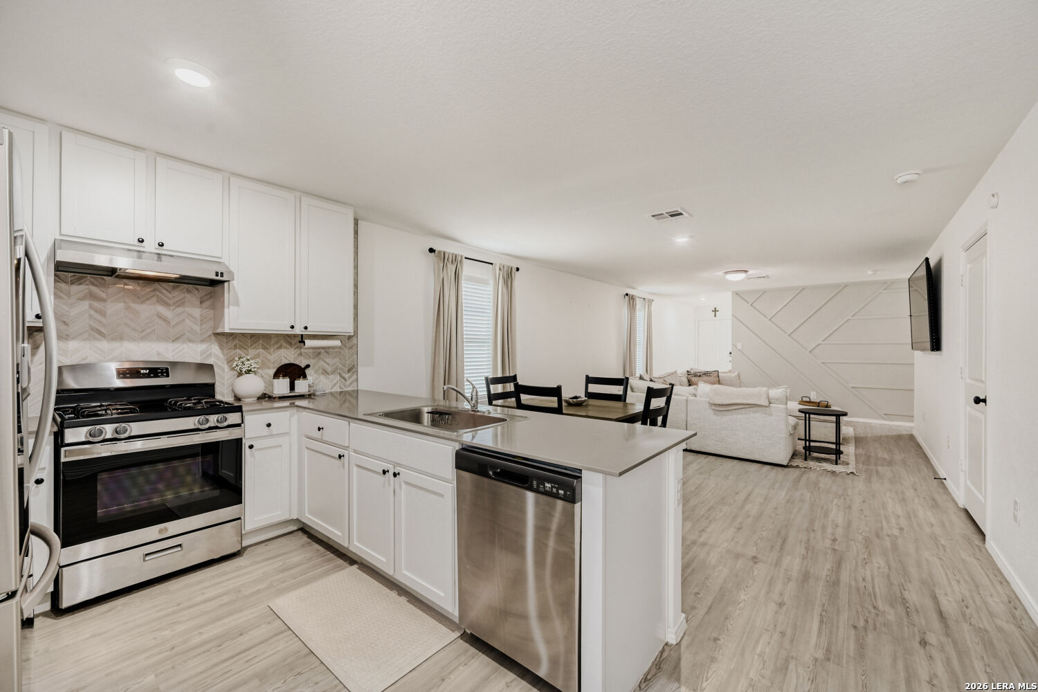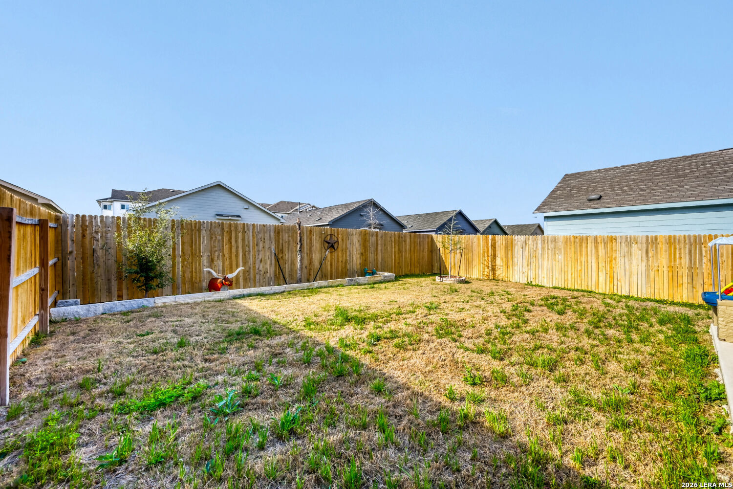 Welcome to this beautifully upgraded 3-bedroom, 2-bath home with a 2-car garage, perfectly situated on a quiet cul-de-sac in the highly desirable Far West San Antonio area. Purchased in 2024, this home has been thoughtfully enhanced with numerous upgrades you won't find in new construction. Step outside to enjoy the extended 12x11 back patio-ideal for relaxing or entertaining-along with a professionally designed backyard flower bed and custom brick detailing around both trees. The front yard also features an added flower bed for extra curb appeal, while the extended driveway and walk path provide both convenience and style. Inside, the garage has been fully finished with fresh paint, baseboards, and a garage door opener. The home features upgraded blinds throughout, stylish new light fixtures in the bedrooms and living area, and elegant design touches like three custom accent walls with trim in the living room, secondary bedroom, and primary suite. You'll also love the modern upgrades, including black door and cabinet hardware, a beautiful kitchen backsplash, and durable eggshell paint in the main living areas. Both bathrooms have been enhanced with added towel holders, and extra exterior lighting above the driveway improves both ambiance and security. A stained wooden front handrail adds the perfect finishing touch to the home's welcoming entrance. This move-in-ready home blends comfort, style, and thoughtful upgrades-truly a must-see that won't disappoint.