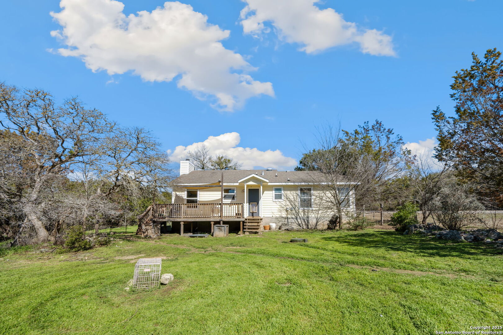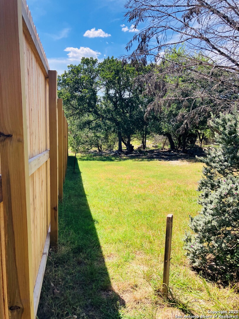 Welcome to your Texas hill-country cottage in Cypress Cove! This move-in ready 3-bed, 2-bath home is situated on a beautiful spacious corner lot with mature oaks and cedar trees, with a relaxing covered front porch inviting you in! Brand new HVAC unit!! Upon entry, the open floor plan greets you along with a cozy wood-burning fireplace, perfect for Texas winters! This home has been partially updated, including granite countertops and stone backsplash tile in kitchen and both bathrooms, new hardware and lighting fixtures, and stainless steel appliances! Interior walls have been freshly painted and the entire exterior of home freshly washed. Washer, dryer and refrigerator are all available to stay with the home if the buyer wants them. Water softener is a nice extra feature, a must-have in the hill country! Through the kitchen is the entrance to the back deck where you can either relax with your morning coffee or just enjoy family gatherings with plenty of space and privacy! The property is fenced on all but one side, but may be enclosed to create more privacy! Dog door built into back door, an added convenience for your pet. This home has all you need to enjoy the full benefits of hill country living! Convenient nearby access to Boat Ramp 11 (Guadalupe River feeding into Canyon Lake) approximately a mile away! Cypress Cove amenities include a community park, swimming pool, BBQ grilling, basketball and tennis courts, and a fishing pond. Centrally located with ease of access to San Antonio, New Braunfels, Boerne, San Marcos, Austin and the Canyon Lake Hill country area. Contact your agent to schedule your showing today, take a look around, and fall in love with your very own slice of the Texas hill country!!