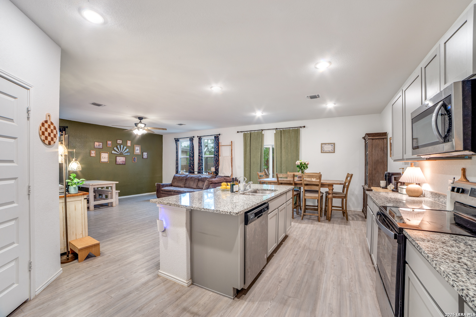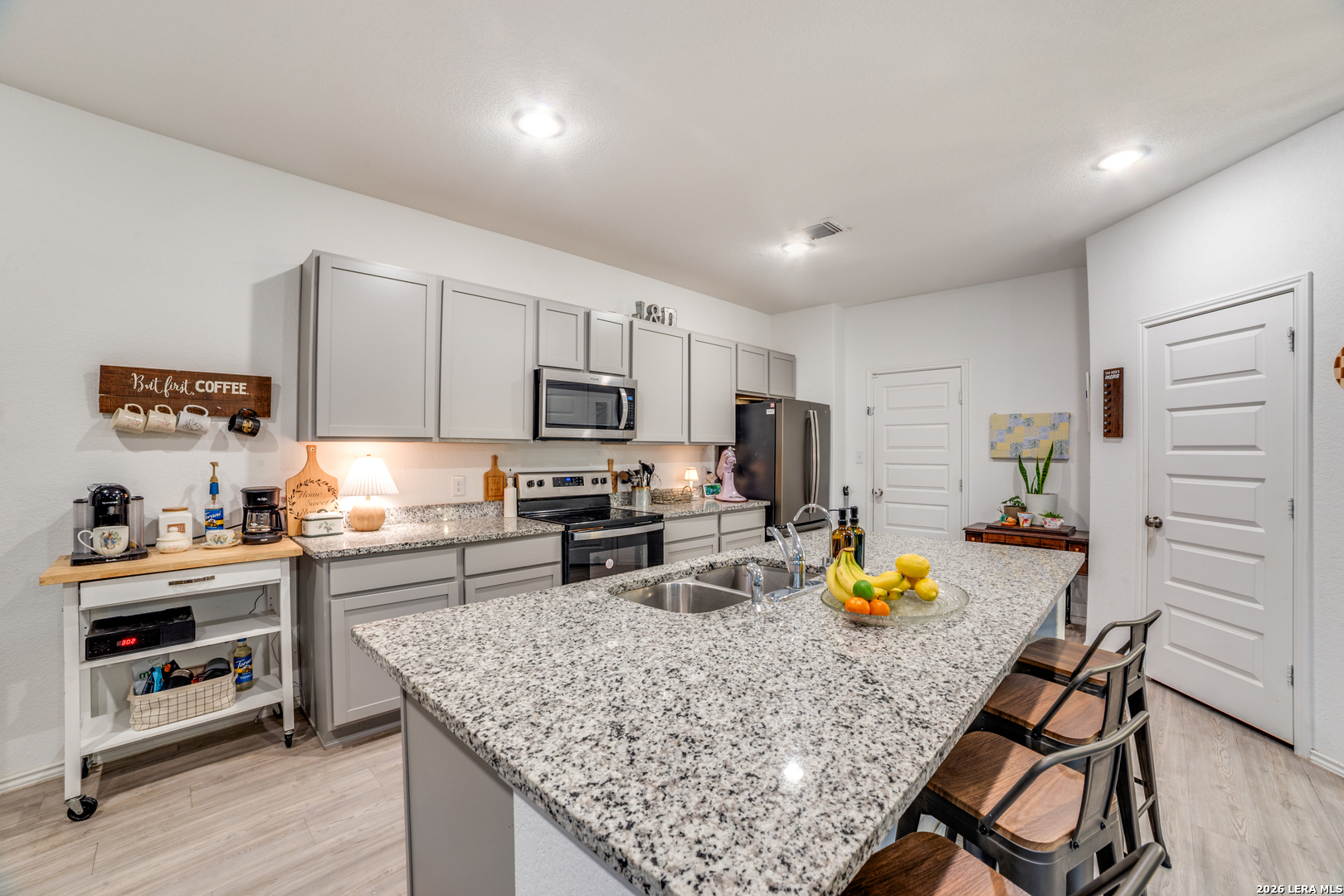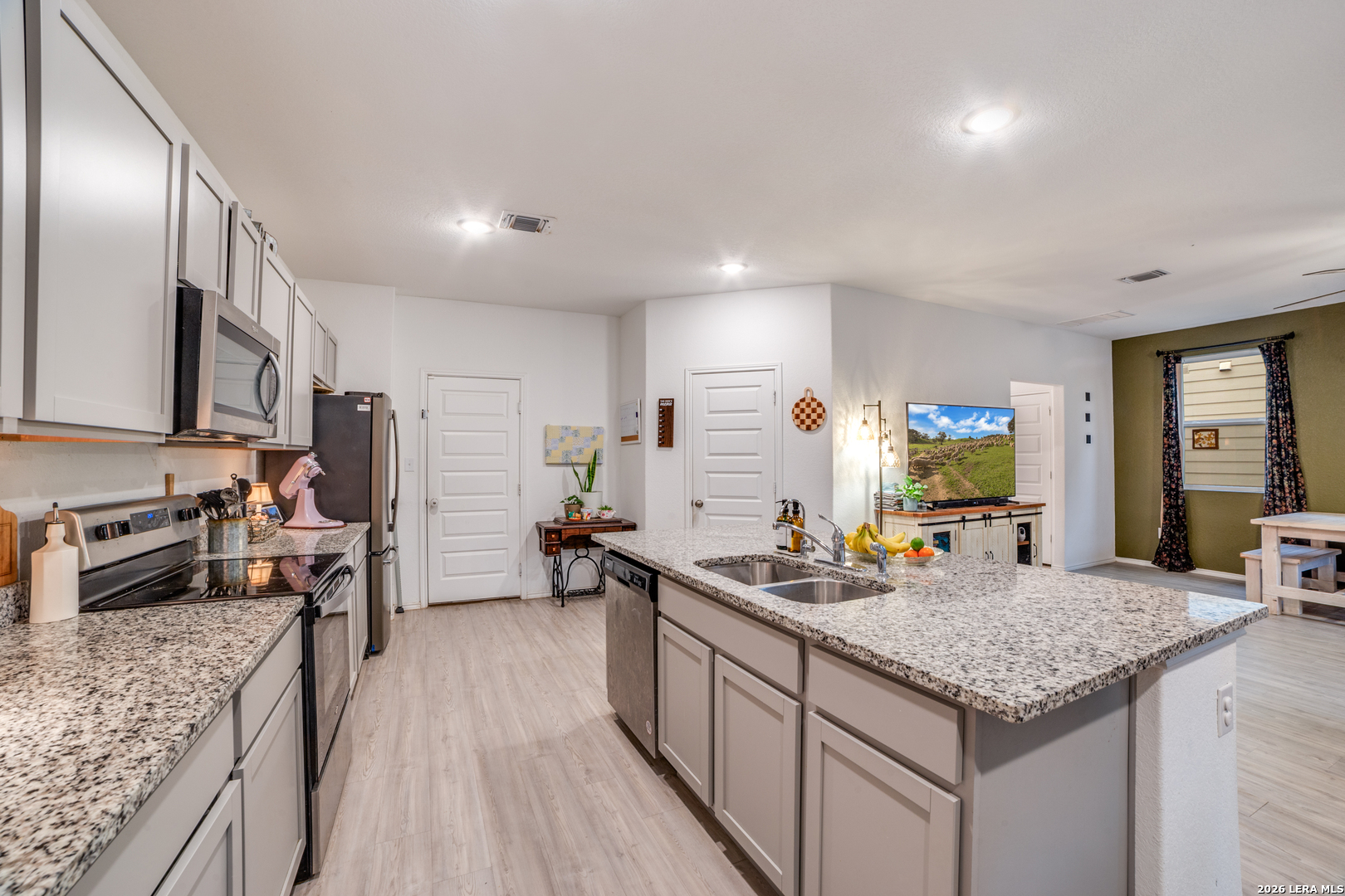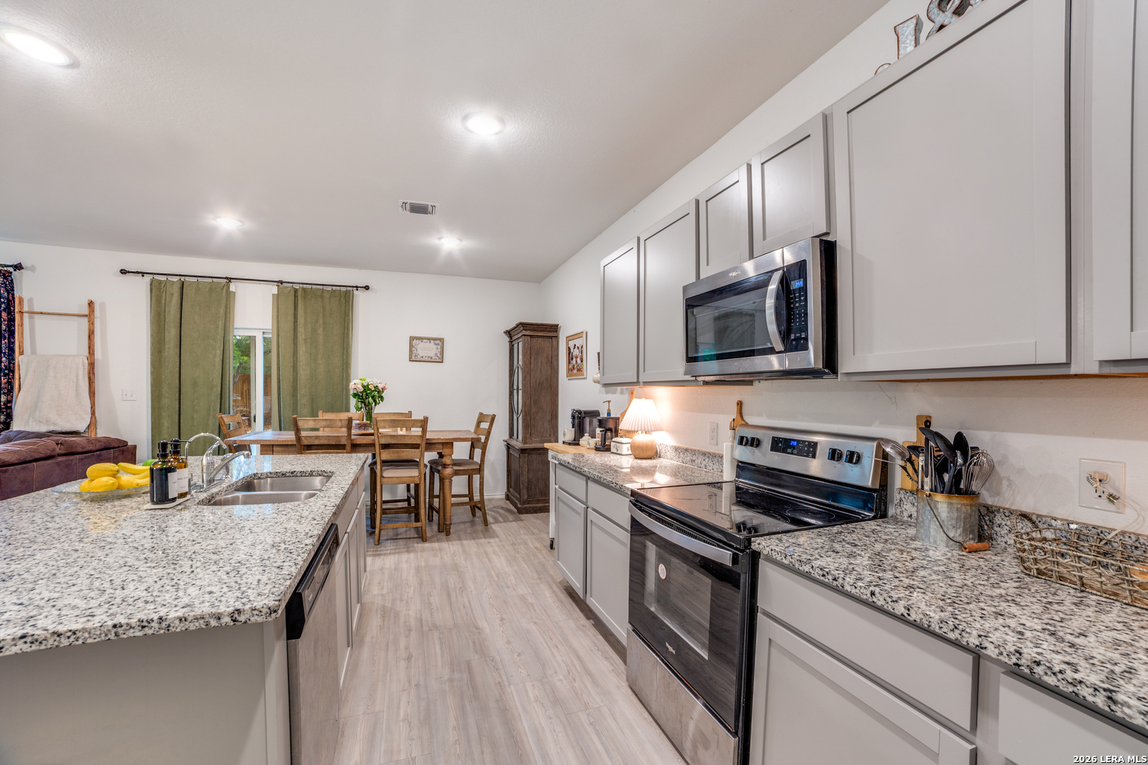 Well-maintained 4 bed, 2.5 bath home offering 2,097 sqft with an open-concept layout. Features include granite countertops, large kitchen island with bar seating, stainless appliances, and spacious living area perfect for entertaining. Primary suite includes dual vanities and walk-in shower. Three additional bedrooms provide flexibility for guests or office space. 2-car garage and move-in ready condition.