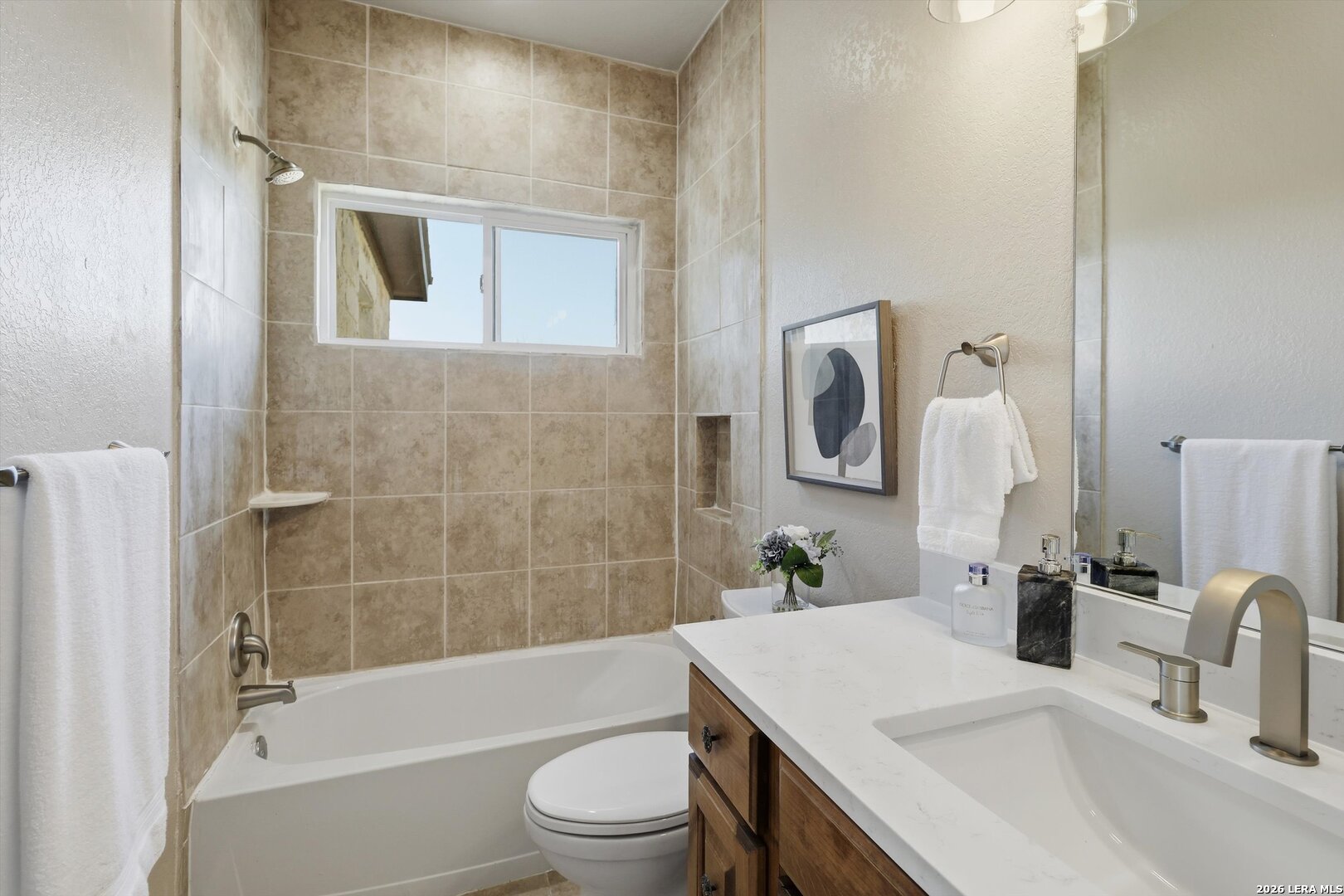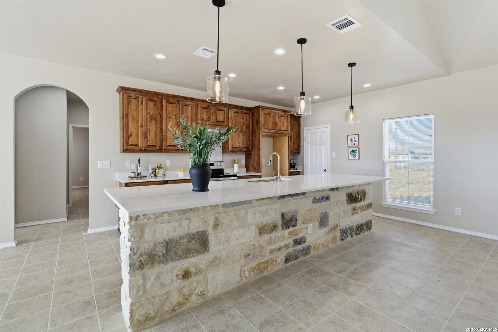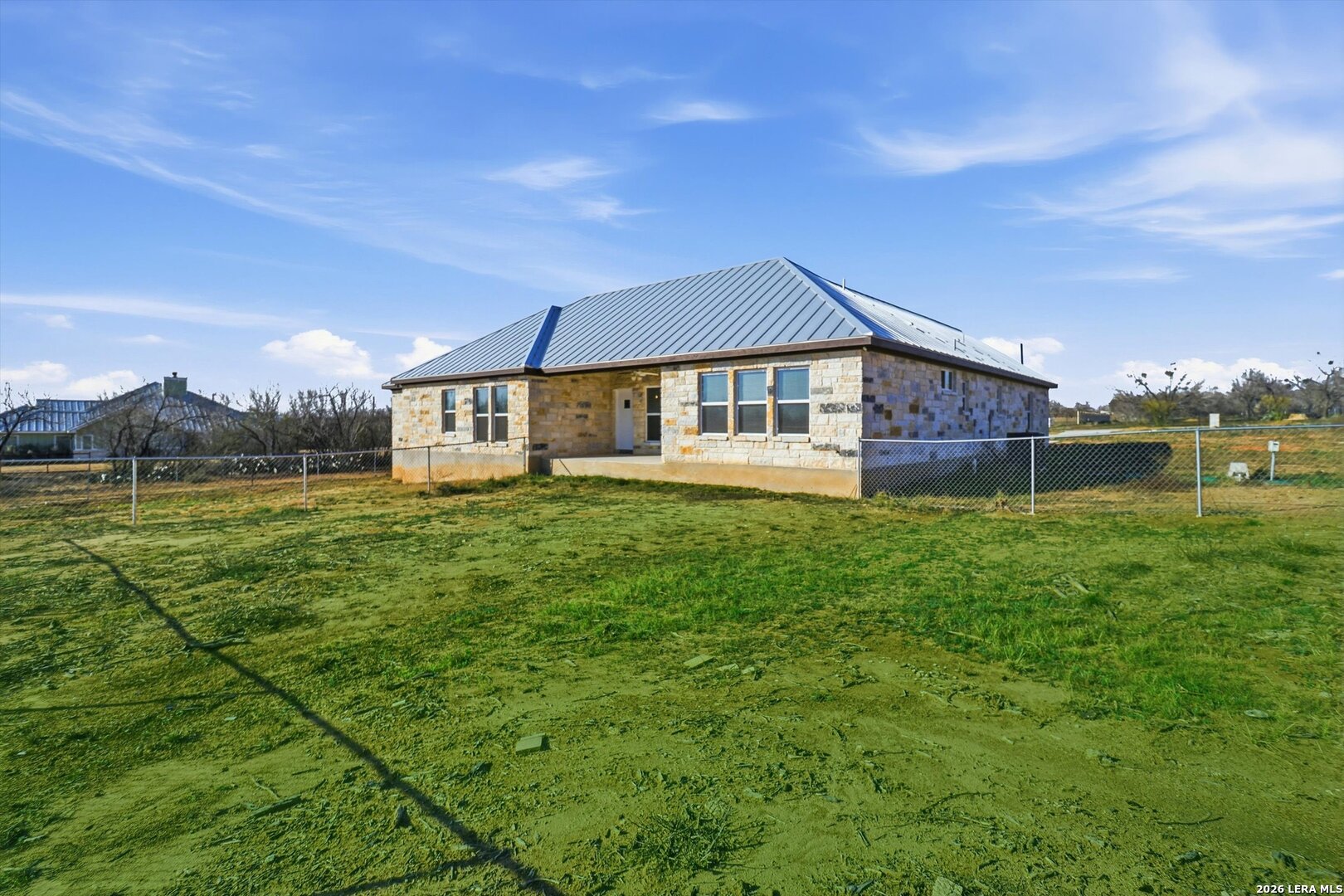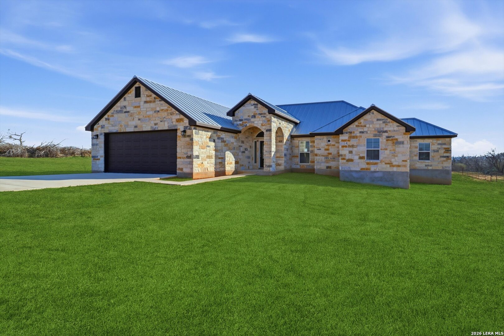 Experience peaceful country living on 5 unrestricted acres of open Texas land in this gorgeous 4 bedroom and 2 - 1/2 bathroom home. Built in 2024, this 2,178-square-foot new construction showcases elevated design, impeccable craftsmanship, and high-end finishes throughout, blending modern elegance with the tranquility of wide-open spaces. Step through the arched foyer into a light-filled space with soaring ceilings and an open-concept design where the living area flows effortlessly into the kitchen. The gourmet kitchen showcases quartz countertops, 42-inch soft-close wood cabinetry, stainless steel appliances, and a grand scale center island with bar sitting - perfect for gatherings and entertaining. Tucked away on the opposite wing from the secondary bedrooms for enhanced privacy, the expansive primary suite features a spa-like bathroom with dual vanities, an oversized walk-in shower, and an oversized walk-in closet with built-in organization. The home also includes a large laundry room for added convenience and an oversized two-car garage. Thoughtful modern upgrades include energy-efficient windows, a long-lasting metal roof, and tile flooring throughout. Step outside to the covered patio, an inviting space for relaxing or hosting guests while taking in the wide-open surroundings. Located on a cul-de-sac and with no HOA and five acres to enjoy, the possibilities are endless-build a pool, create an RV setup, add a workshop, or design a horse barn. This is country living with unlimited potential. Conveniently located near E I-10 and Loop 1604.
