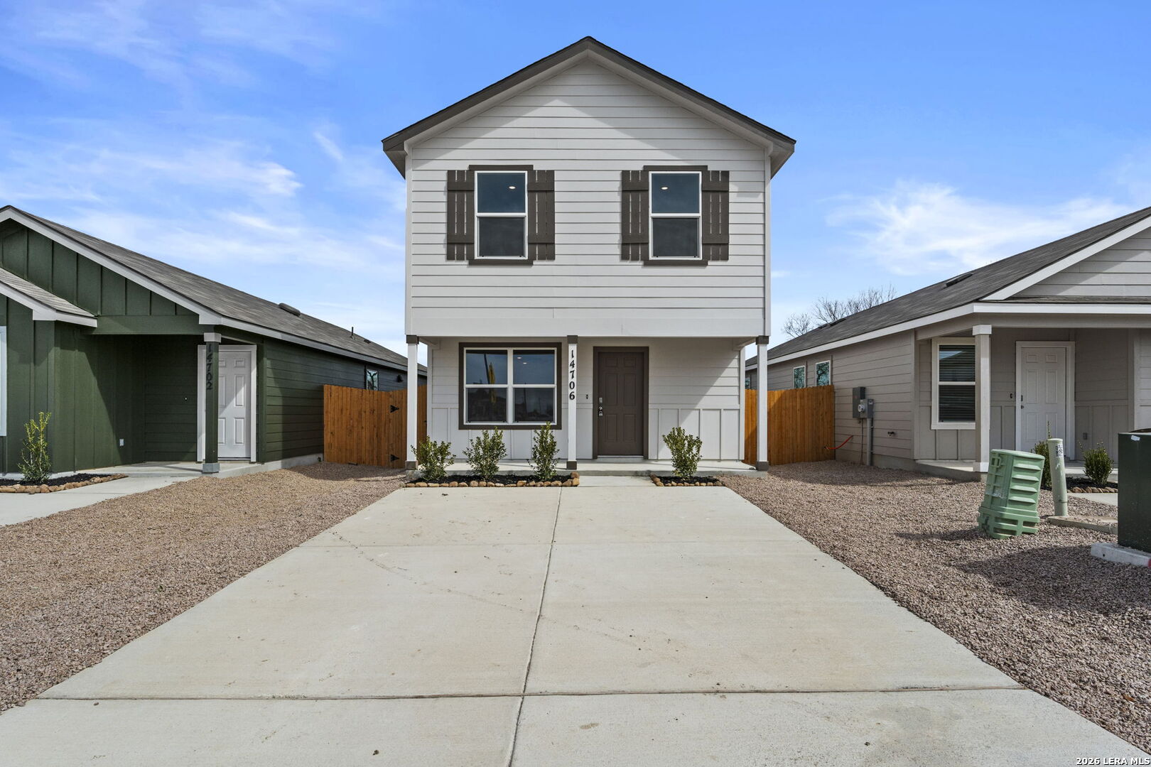 Introducing The Ranger, a charming two-story floor plan located in the Sonora community in San Antonio, TX. This spacious home offers 1206 square feet of living space, featuring 3 bedrooms and 2 bathrooms. Instead of a traditional garage, The Ranger offers a convenient driveway, adding ease of access and extra parking space. As you approach the home, a welcoming patio greets you, providing a cozy spot to relax or enjoy the outdoors. Upon entering, you'll be immediately impressed by the grand, open-concept living space that blends the living room, dining area, and kitchen. The kitchen is a standout, featuring stylish shaker-style cabinets, sleek stainless steel appliances, and elegant quartz countertops, with a corner pantry offering additional storage. This layout is ideal for both everyday living and entertaining, providing a seamless flow between the spaces. All bedrooms are located upstairs, allowing for privacy and a peaceful retreat. The main bedroom is spacious, with plush carpet flooring, a walk-in closet, and an ensuite bathroom that includes a single vanity quartz sink, a combined tub and shower, and modern finishes. The secondary bedrooms also feature carpet flooring, closets, and can be easily adapted to suit your needs, whether for additional bedrooms, an office, or a playroom. Additional features of The Ranger include quartz countertops in the secondary bathroom and hard surface flooring throughout the living room, dining area, kitchen, and wet areas for easy maintenance. *Seller is willing to assist with closing costs or a rate buy-down through preferred lender with an acceptable offer. *