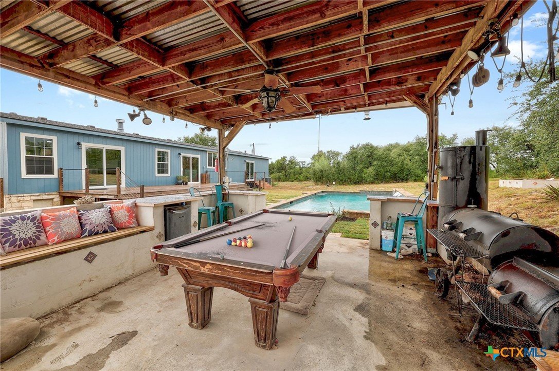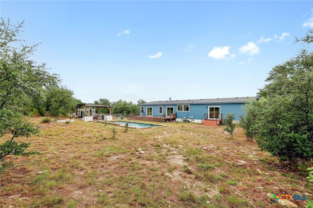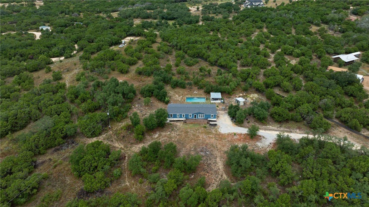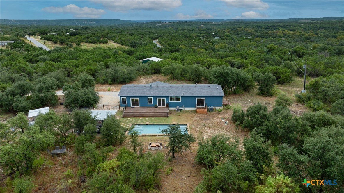 Secluded 10-Acre Estate with Renovated 4-Bed Home, Pool, and Shop. Discover your private, unrestricted sanctuary just outside of Leander. This exceptional 10.02-acre property offers the rare combination of breathtaking, forever-protected panoramic views of the Balcones Canyonlands, total seclusion, and unparalleled utility. Featuring a recently remodeled 2,280 sq ft home and a 1,200 sq ft metal shop, it is the perfect canvas for the entrepreneur, hobbyist, or anyone seeking a tranquil Hill Country lifestyle without HOA restrictions. The seller is offering a money to buy down your interest rate. Secure a lower monthly payment! House Step into a beautifully remodeled 4-bedroom home where modern finishes meet functional design. The open-concept living area flows seamlessly into the dining room and kitchen, creating the ideal space for entertaining. • Gourmet Kitchen: Designed for the serious cook, the kitchen boasts two large islands and extensive counter space, offering both utility. • Owner’s Retreat: The private main suite features a bonus dedicated office/flex space, a walk-in closet, and a sliding glass door providing direct access to the deck and pool area. • Flexible Layout: A clever split-bedroom layout positions the three secondary bedrooms and a second living area on the opposite side of the home, providing privacy and versatility. • Outdoor Living: Relax and recharge on the back deck with an in-ground pool and gazebo, or enjoy the views from the front deck. Shop Building The 1,200 sq ft metal shop is built on a concrete slab and features four convenient roll-up doors. Currently equipped with a car lift (can be removed), this space is an ideal setup for a business, mechanic, RV/boat storage, or serious hobbyist. Land Encompassing 10.02 acres, the sloping topography maximizes the unrivaled Hill Country views. Blanketed with Live Oaks and cedar, the acreage feels expansive and provides a deeply secluded, tranquil environment.