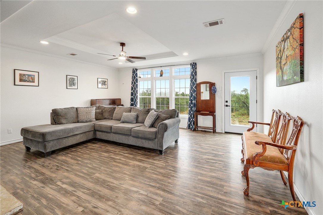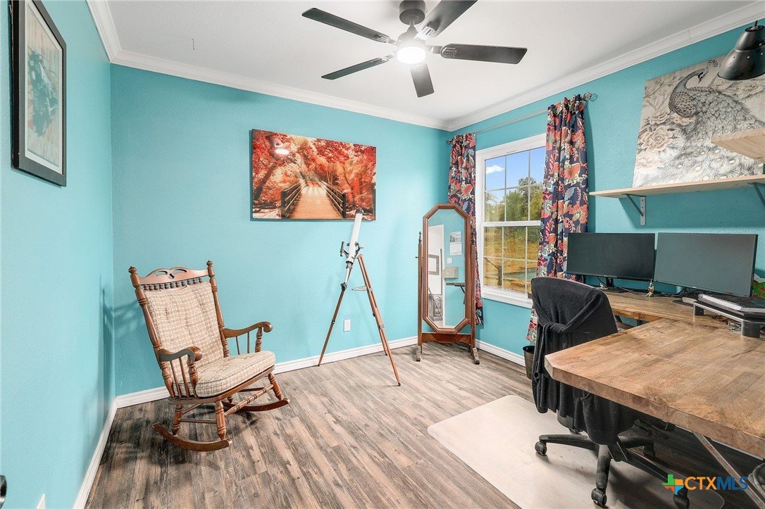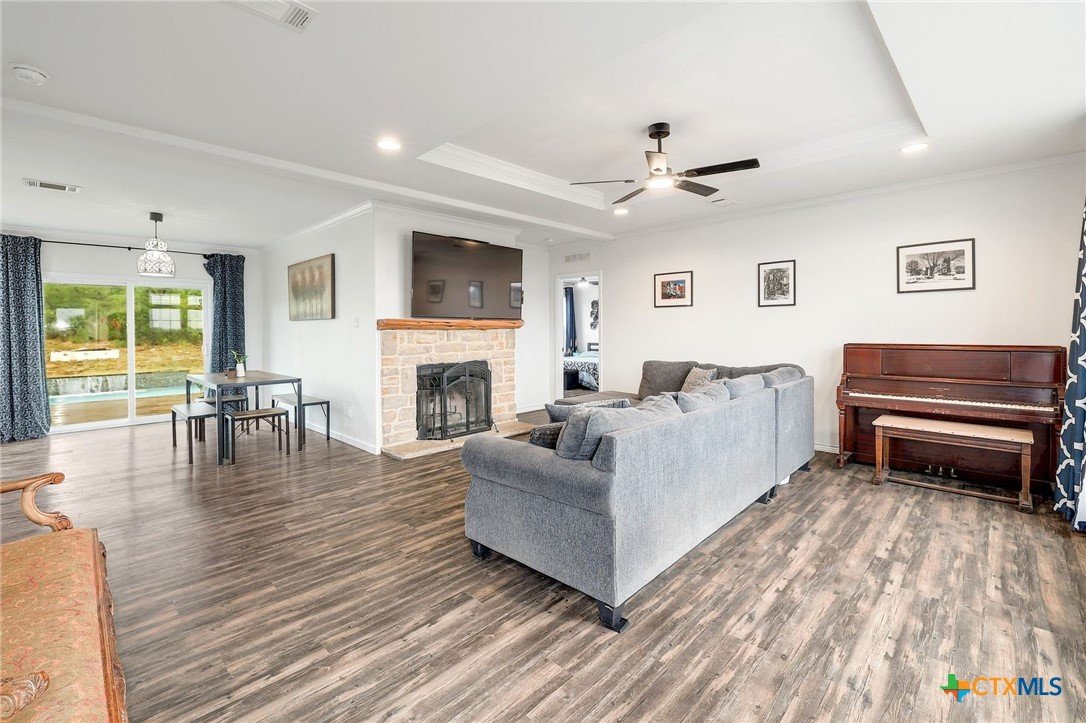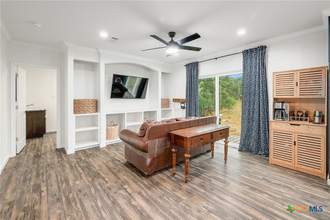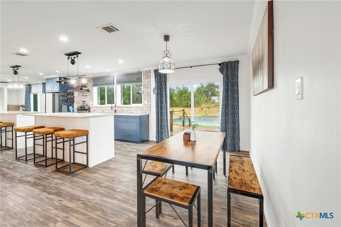 Secluded 10-Acre Estate with Renovated 4-Bed Home, Pool, and Shop. Discover your private, unrestricted sanctuary just outside of Leander. This exceptional 10.02-acre property offers the rare combination of breathtaking, forever-protected panoramic views of the Balcones Canyonlands, total seclusion, and unparalleled utility. Featuring a recently remodeled 2,280 sq ft home and a 1,200 sq ft metal shop, it is the perfect canvas for the entrepreneur, hobbyist, or anyone seeking a tranquil Hill Country lifestyle without HOA restrictions. The seller is offering a money to buy down your interest rate. Secure a lower monthly payment! House Step into a beautifully remodeled 4-bedroom home where modern finishes meet functional design. The open-concept living area flows seamlessly into the dining room and kitchen, creating the ideal space for entertaining. • Gourmet Kitchen: Designed for the serious cook, the kitchen boasts two large islands and extensive counter space, offering both utility. • Owner’s Retreat: The private main suite features a bonus dedicated office/flex space, a walk-in closet, and a sliding glass door providing direct access to the deck and pool area. • Flexible Layout: A clever split-bedroom layout positions the three secondary bedrooms and a second living area on the opposite side of the home, providing privacy and versatility. • Outdoor Living: Relax and recharge on the back deck with an in-ground pool and gazebo, or enjoy the views from the front deck. Shop Building The 1,200 sq ft metal shop is built on a concrete slab and features four convenient roll-up doors. Currently equipped with a car lift (can be removed), this space is an ideal setup for a business, mechanic, RV/boat storage, or serious hobbyist. Land Encompassing 10.02 acres, the sloping topography maximizes the unrivaled Hill Country views. Blanketed with Live Oaks and cedar, the acreage feels expansive and provides a deeply secluded, tranquil environment.
