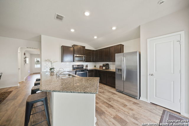 Spacious one story home located in the popular Redbird Ranch Subdivision. Open floor plan ceramic tile throughout the living area and plenty of lighting. Kitchen features plenty of countertop space, a kitchen island and all stainless steel appliances to include the refrigerator. Split master bedroom features high ceilings, large walk in closet, double vanity with a separate garden tub and standup shower. Oversized backyard with a privacy fence and a covered patio, great for entertaining. Close to Lackland AFB, Kelly AFB, shopping and eateries. Pets considered on a case by case basis, no cats.
