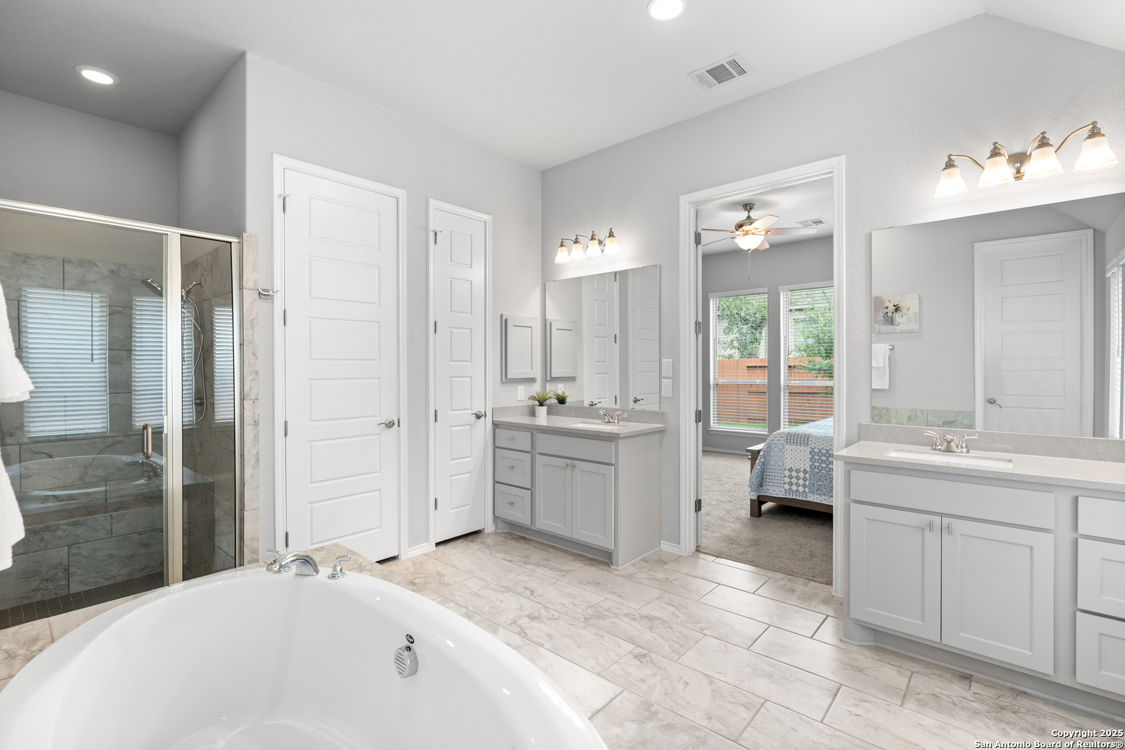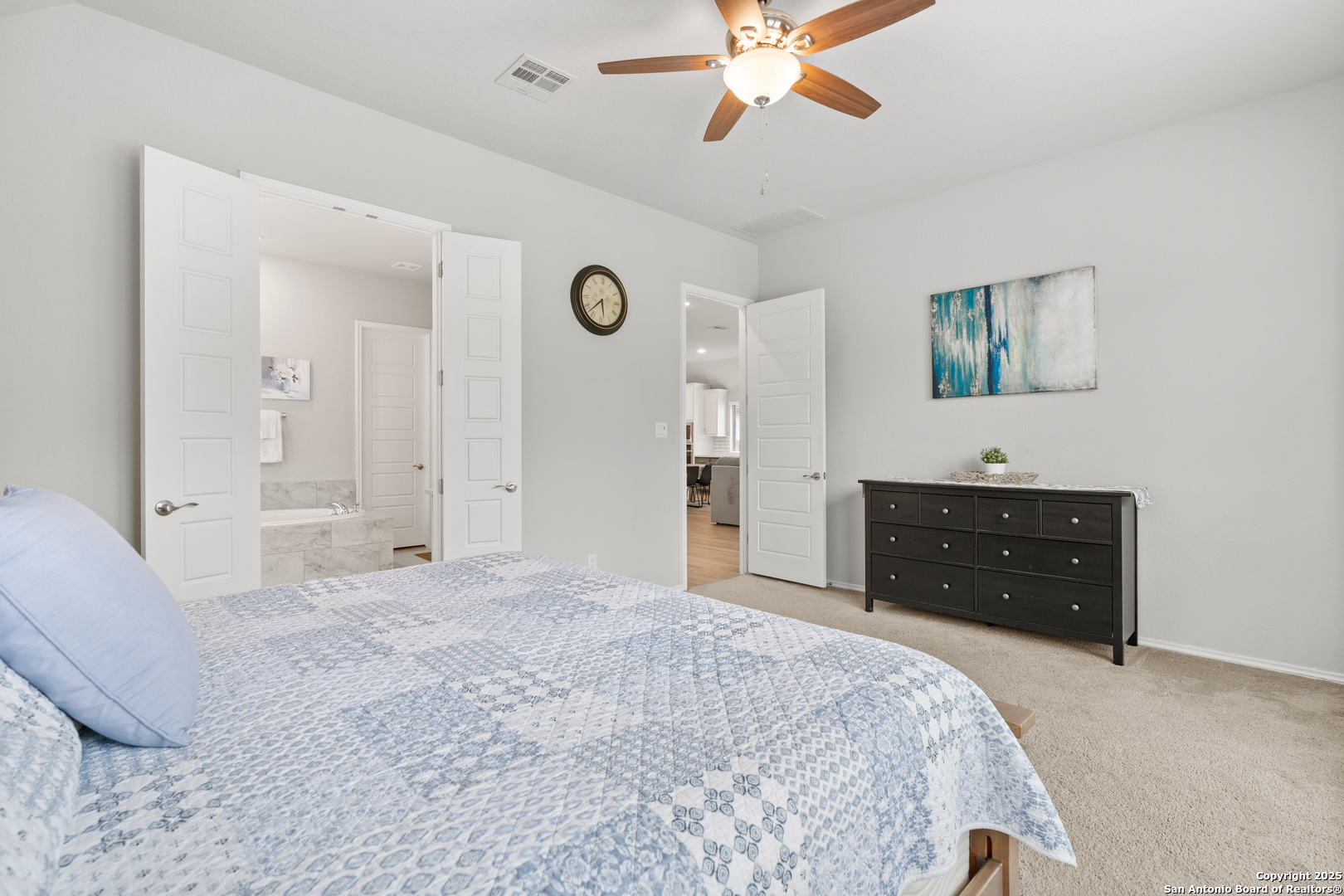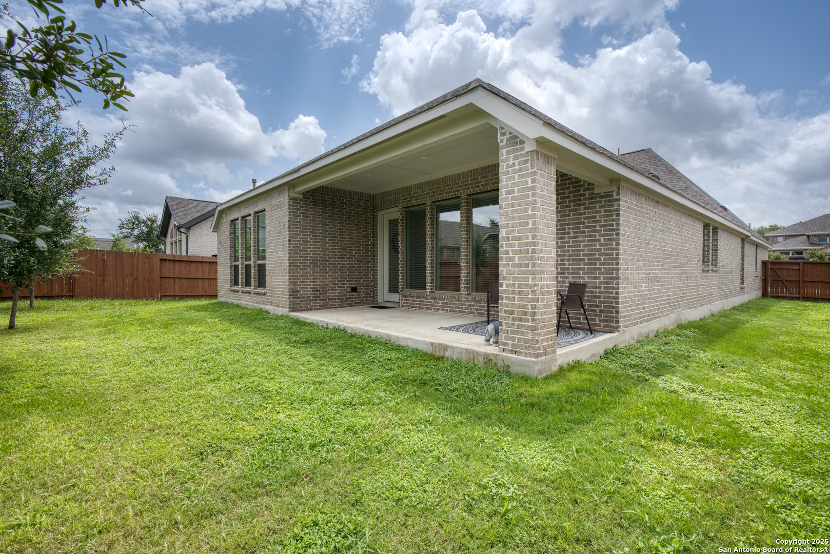 Welcome to 1485 Pitcher Bend - a beautifully maintained, single-story home that blends thoughtful design, energy efficiency, and modern convenience! Built by a RESNET Energy Smart designated builder, Perry Homes, this home offers smart savings with features such as radiant barrier roof decking, a 16.0 SEER Carrier AC system, low-E insulated vinyl windows, fresh air intake system, smoke and carbon monoxide detectors, and water-saving commodes. Step inside to a spacious entry with soaring 12' ceilings that set the tone for the open and inviting layout. The heart of the home features tile flooring throughout all common areas, a walk-in pantry, a generous kitchen island, 42" cabinetry with full-extension drawer guides, granite countertops with tile backsplash, and GE stainless steel appliances-including a gas cooktop, 30" self-cleaning oven, built-in microwave, and dishwasher. The undermount stainless steel sink and Delta pull-out faucet complete the kitchen's stylish functionality. The spacious primary suite is filled with natural light and features two walk-in closets, a garden tub with tile surround, a separate glass-enclosed shower with tile flooring, and Delta fixtures. The secondary bedroom includes a private ensuite bath, perfect for guests or multigenerational living. Additional highlights include an oversized garage, smart garage door opener, Ring alarm system, Nest doorbell camera and thermostat, tankless water heater, water softener, and 8' interior doors. The exterior boasts four sides brick, a 21' x 8' covered patio, privacy fence, and low-maintenance landscaping-ideal for entertaining or relaxing in your private backyard retreat. This home is a true gem-energy smart, move-in ready, and lovingly cared for. Don't miss your chance to make it yours!
