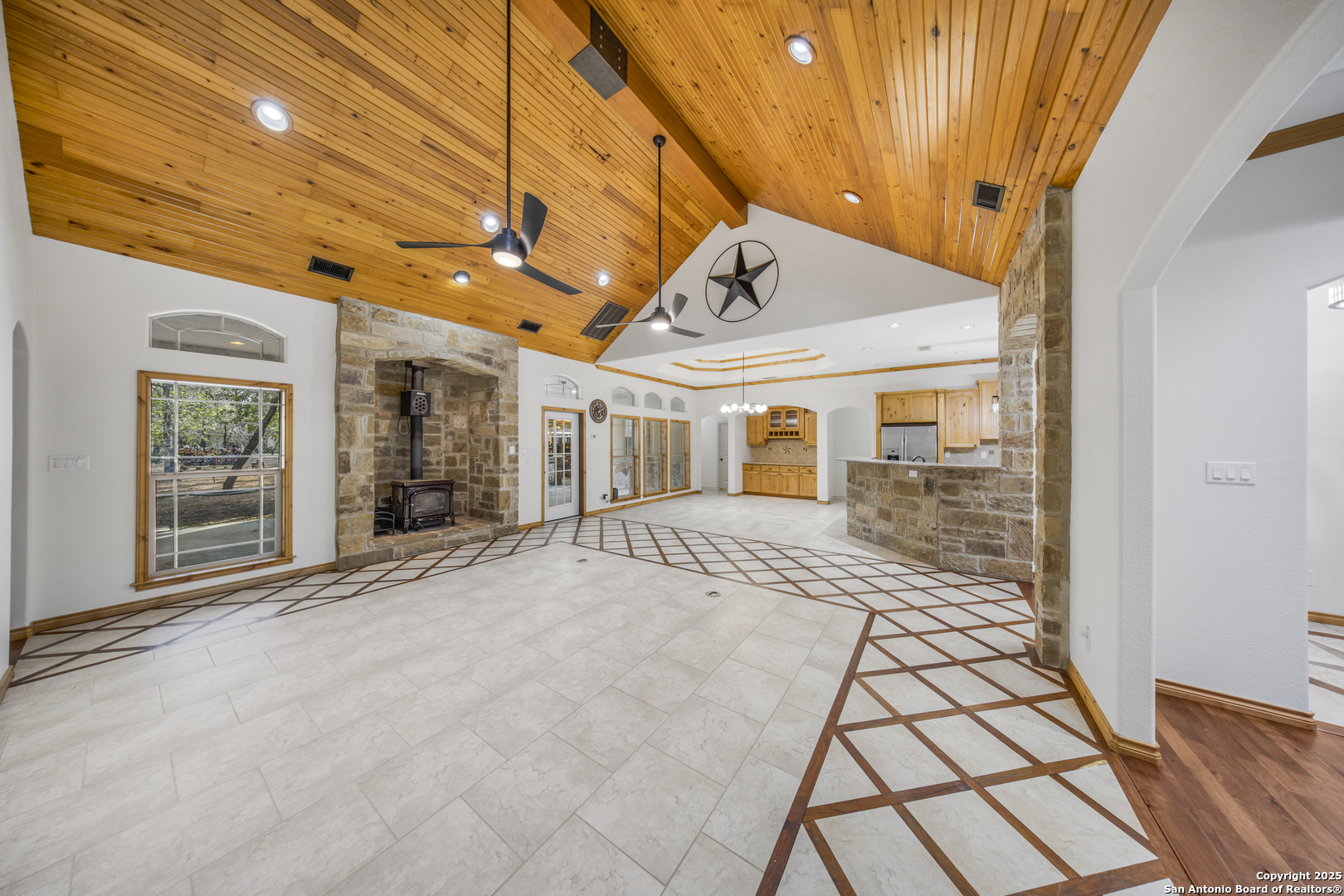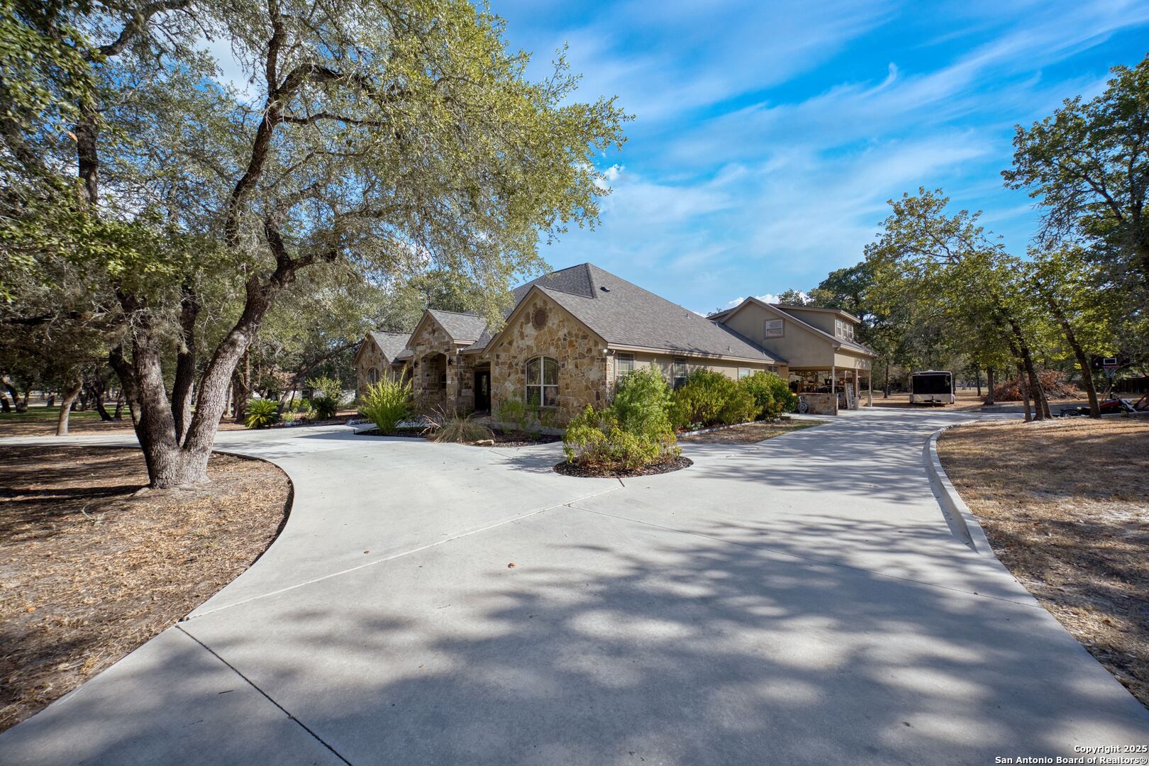 This beautifully maintained 4 bedroom 4.5 bath custom rock and stucco home sits on a spacious 1.269 acre lot with a circular driveway and a secondary access driveway for added convenience. Designed with comfort and style in mind, the open concept layout features a grand entryway, vaulted ceilings, tile and wood flooring, and a formal dining room. All rooms boast high ceilings, and each bedroom includes a lighted walk in closet. The living room offers a cozy wood burning stove, while the island kitchen showcases custom cabinets, granite countertops, double ovens, and a built in china cabinet in the breakfast area. The private primary suite includes a spa like bath with dual vanities, a soaking tub, and a separate walk in shower. Secondary bedrooms feature private en suites and a Jack and Jill bath setup. Upstairs you'll find a bonus room complete with a full bath, perfect for use as a guest suite, game room, or home office. The large utility room includes a wash sink for added convenience, and the home is equipped with three cooling units including a mini split in the loft. The attached carport offers convenient covered parking. Additional upgrades include a new high definition shingle roof installed in April 2023. Located in the sought after Legacy Ranch community, this property combines space, quality, and charm, and it's the best priced home per square foot in the area. Schedule your showing today!