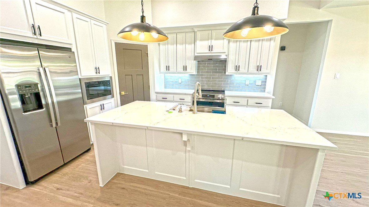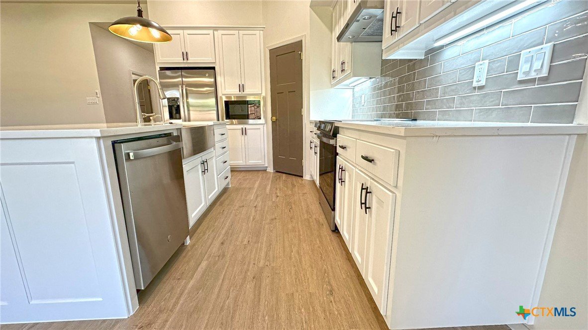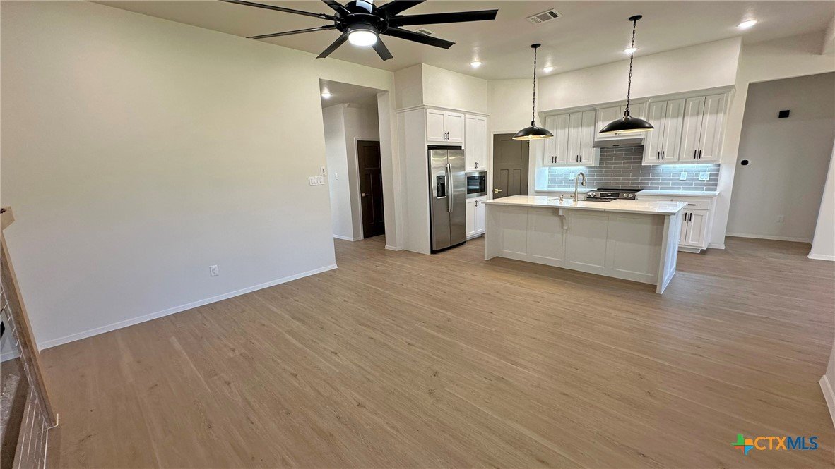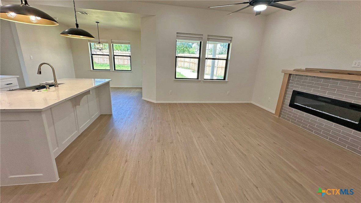 Welcome to this stunning 3-bedroom, 2-bath home offering 2,070 sq ft of thoughtfully designed living space. Boasting an open floor plan, this home is perfect for both everyday living and entertaining. Enjoy premium features throughout, including luxury vinyl plank (LVP) flooring, quartz countertops, and a sleek upgraded appliance package. The kitchen flows seamlessly into the spacious living and dining areas, creating an airy, modern atmosphere. Energy efficiency is at the heart of this home, with spray foam insulation and energy-efficient windows ensuring year-round comfort and savings. The master suite is a true retreat, featuring a spa-like bathroom with a freestanding soaking tub and double vanities. Outside, you’ll find a covered patio, privacy fence, and a full sprinkler system to keep your yard lush and low-maintenance. This home combines style, efficiency, and functionality—don't miss your opportunity to make it yours!