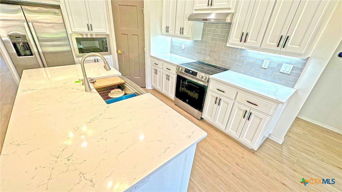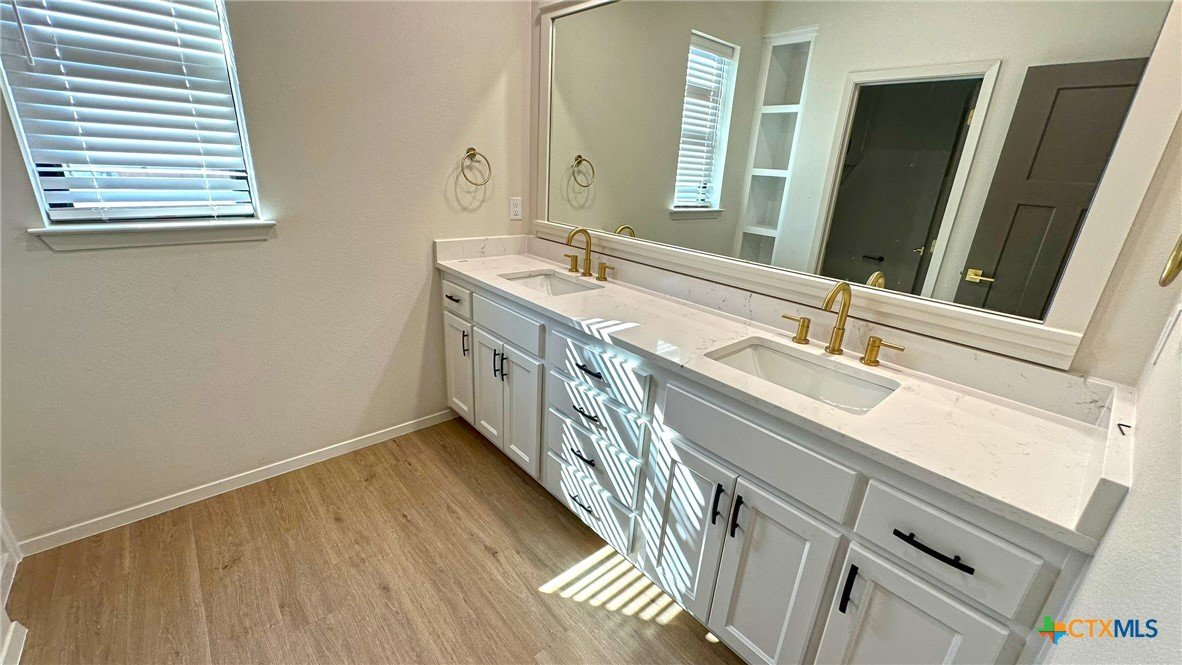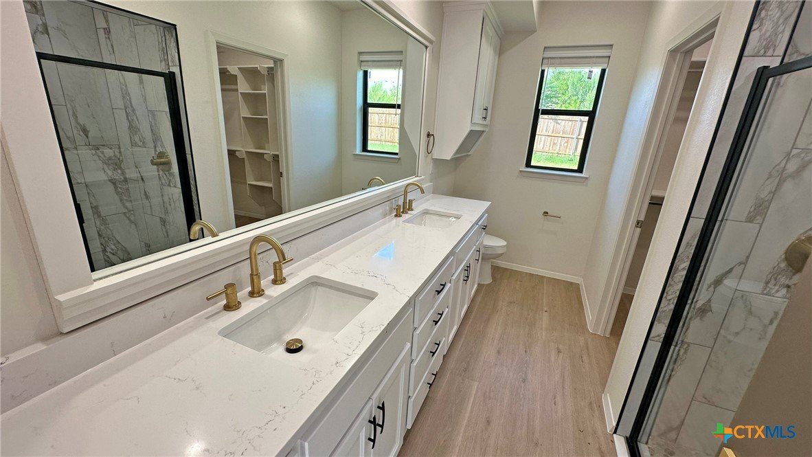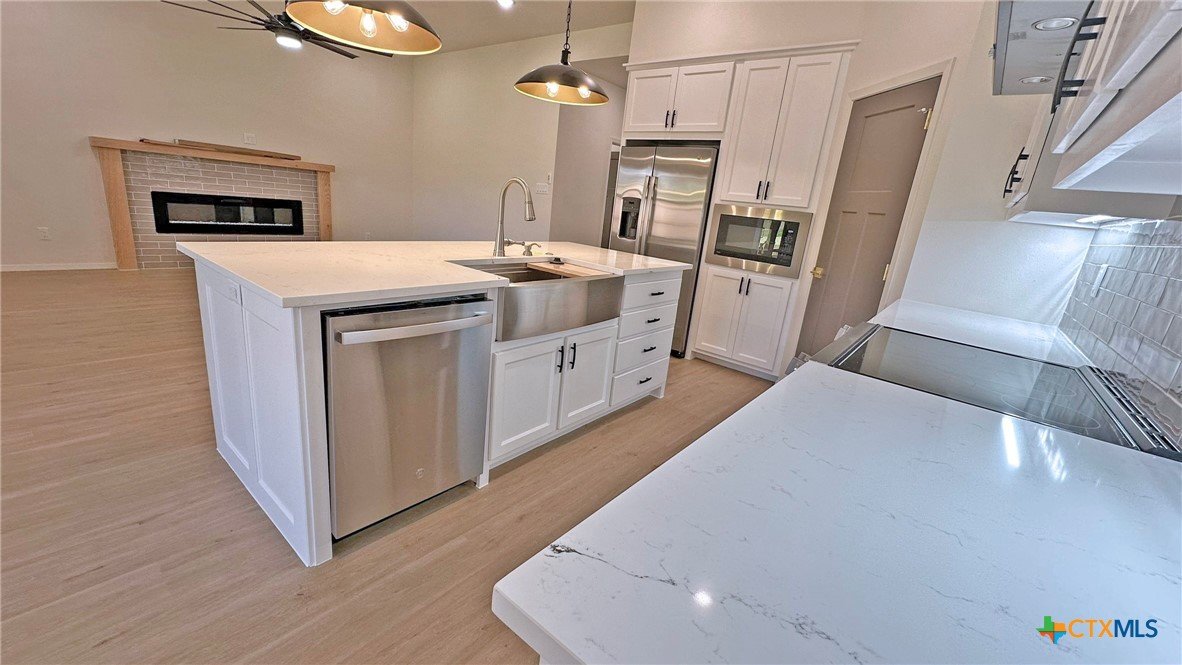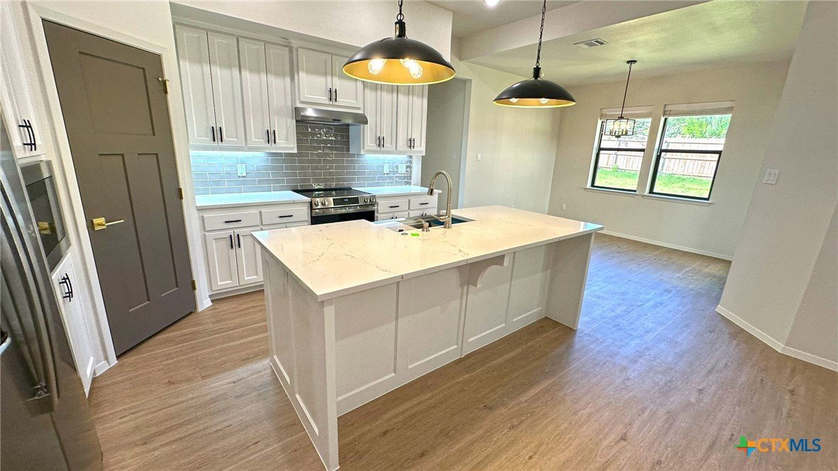 Welcome to this stunning 3-bedroom, 2-bath home offering 2,070 sq ft of thoughtfully designed living space. Boasting an open floor plan, this home is perfect for both everyday living and entertaining. Enjoy premium features throughout, including luxury vinyl plank (LVP) flooring, quartz countertops, and a sleek upgraded appliance package. The kitchen flows seamlessly into the spacious living and dining areas, creating an airy, modern atmosphere. Energy efficiency is at the heart of this home, with spray foam insulation and energy-efficient windows ensuring year-round comfort and savings. The master suite is a true retreat, featuring a spa-like bathroom with a freestanding soaking tub and double vanities. Outside, you’ll find a covered patio, privacy fence, and a full sprinkler system to keep your yard lush and low-maintenance. This home combines style, efficiency, and functionality—don't miss your opportunity to make it yours!
