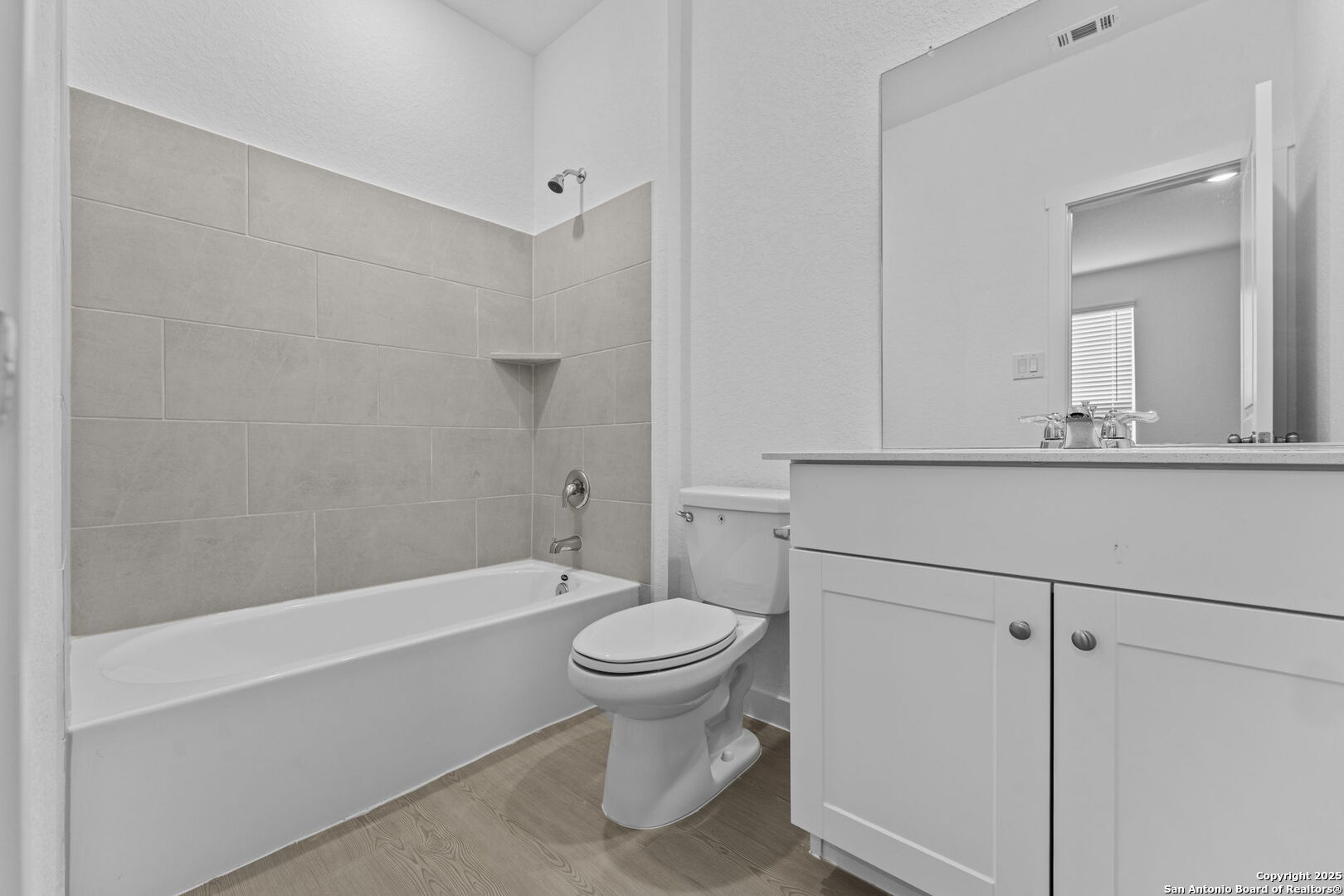 The Navarre- This new single-level home boasts a modern and low-maintenance design. Three secondary bedrooms are located off the foyer, with a nearby study perfect for focusing on important tasks throughout the week. An inviting open-concept living area combines the kitchen, living and dining areas, with a nearby covered patio ready for outdoor entertainment and leisure. A lavish owner's suite completes the home, offering direct access to an en-suite bathroom and generous walk-in closet. *Seller is willing to assist with closing costs or a rate buy-down through preferred lender with an acceptable offer.