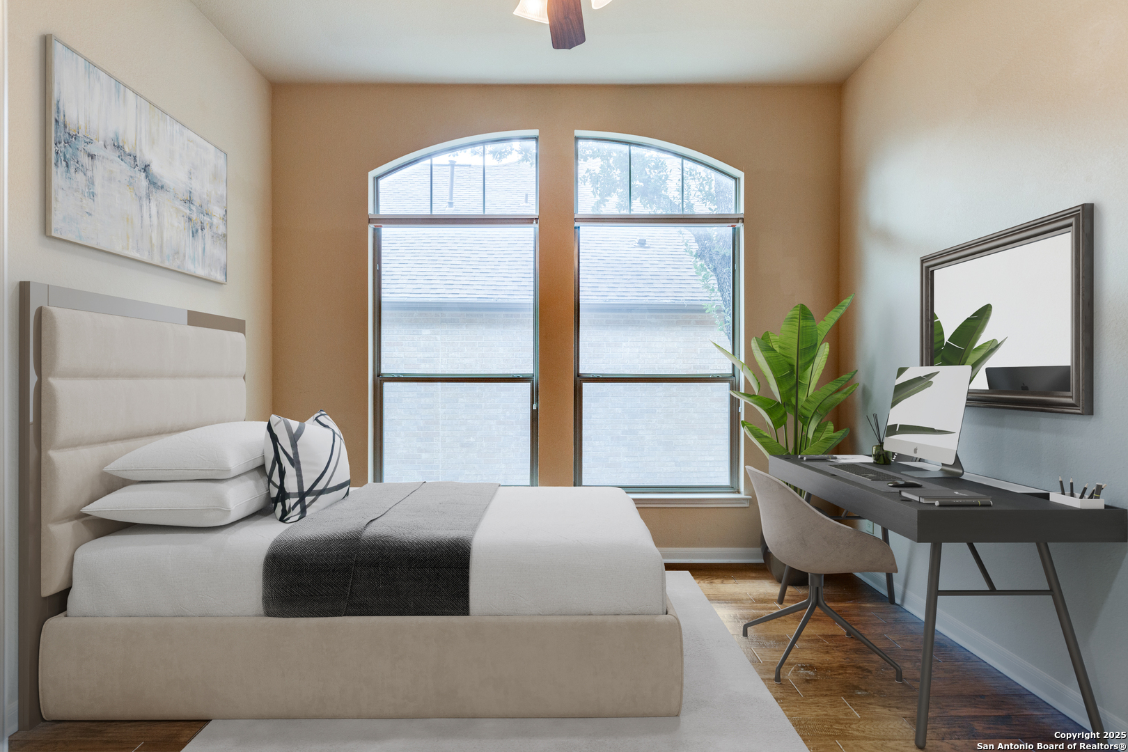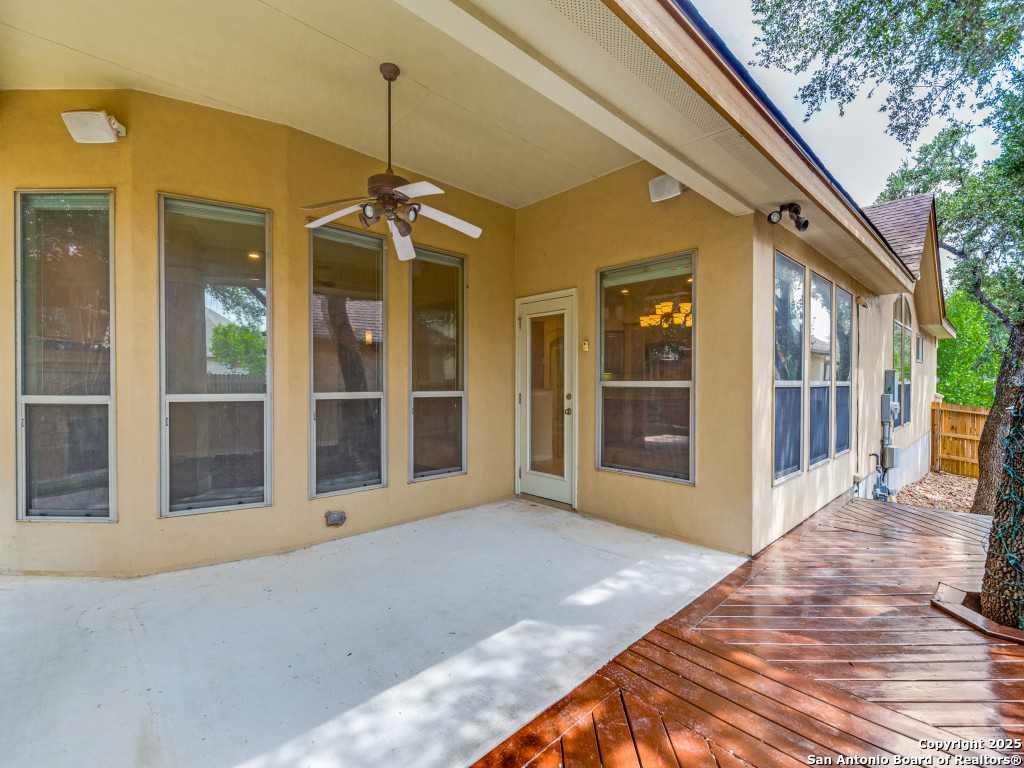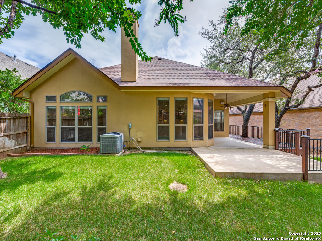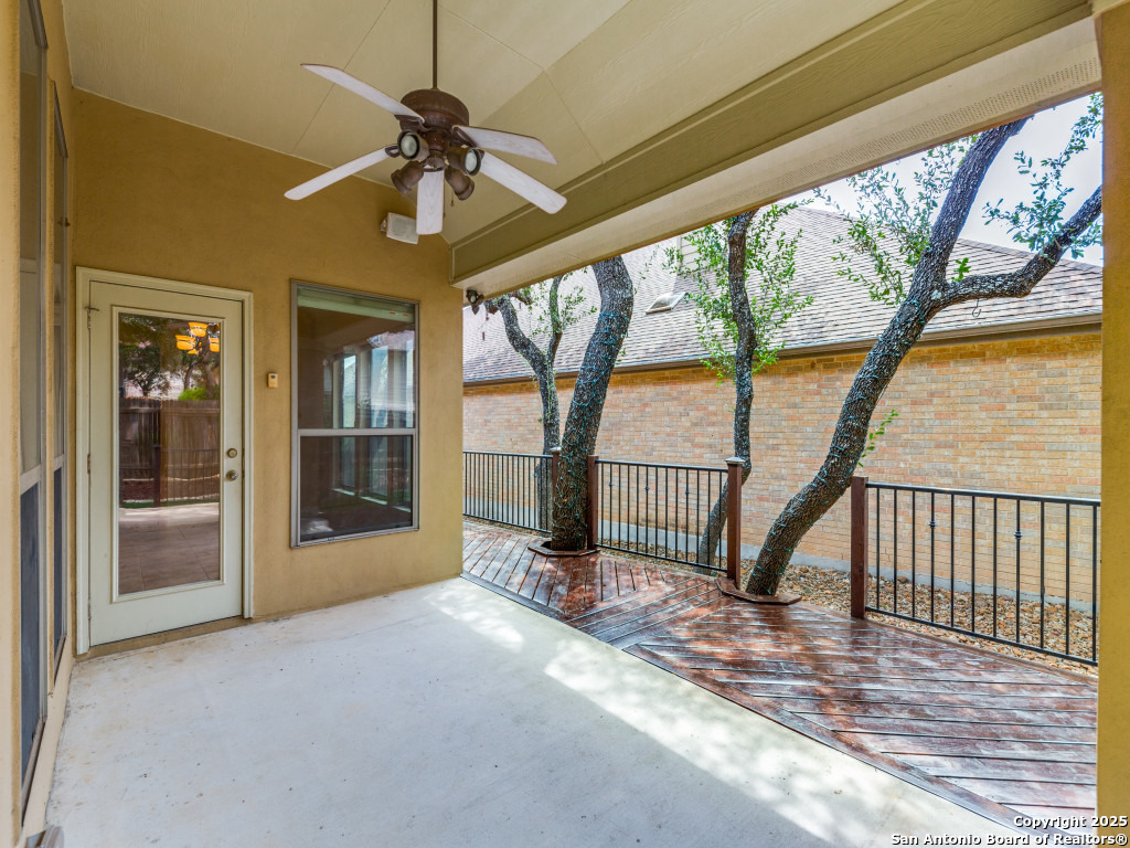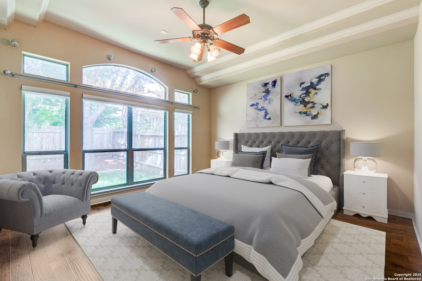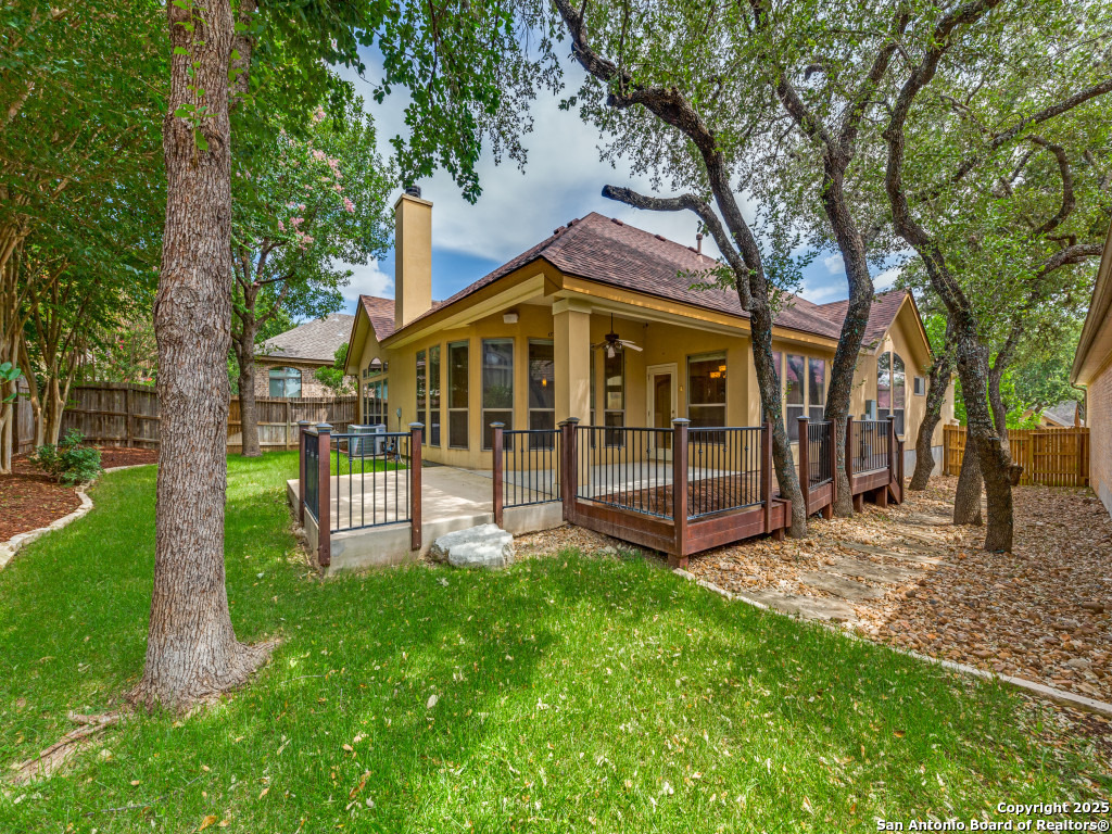 COMPETITIVE PRICE ADJUSTMENT-PRICED TO SELL-MOTIVATED SELLERS-TURN KEY READY! Located in the highly desirable Gardens of Hollywood Park, this beautiful, move-in ready home awaits it's new owners! Featuring high ceilings, engineered wood floors, a large open and bright living area with adjacent large kitchen with island and breakfast bar- an entertainer's delight! The large primary ,in-suite bedroom boasts a bath offering dual vanities and a separate garden tub and shower. The study provides an ideal retreat, as does the enclosed , open air private atrium. Fantastic covered back porch and extended decking make for quaint outdoor entertaining or relaxation. Easy access to 1604 and 281. This is the ideal home for convenience and solitude.