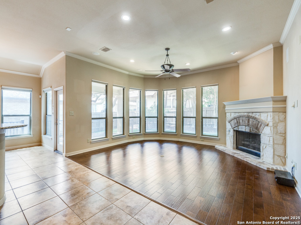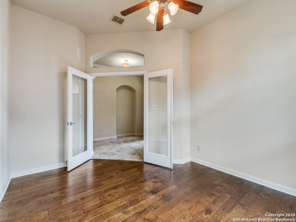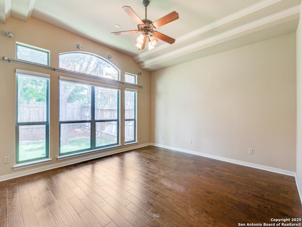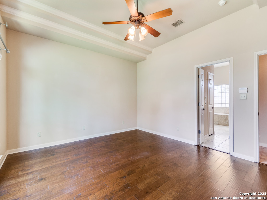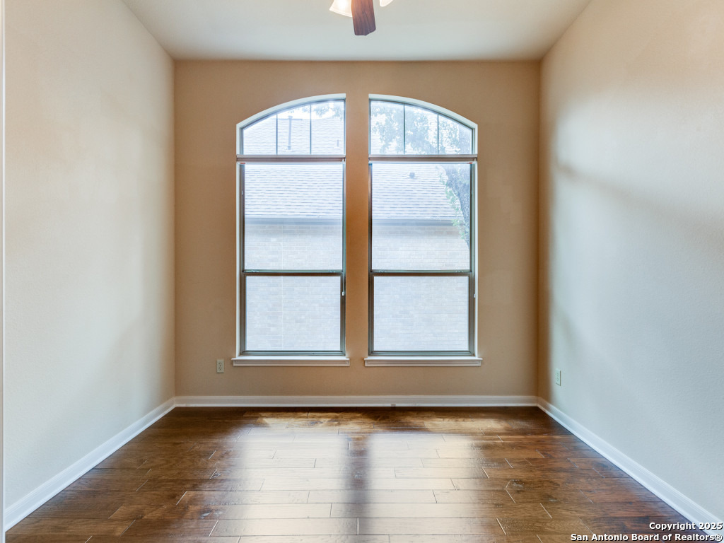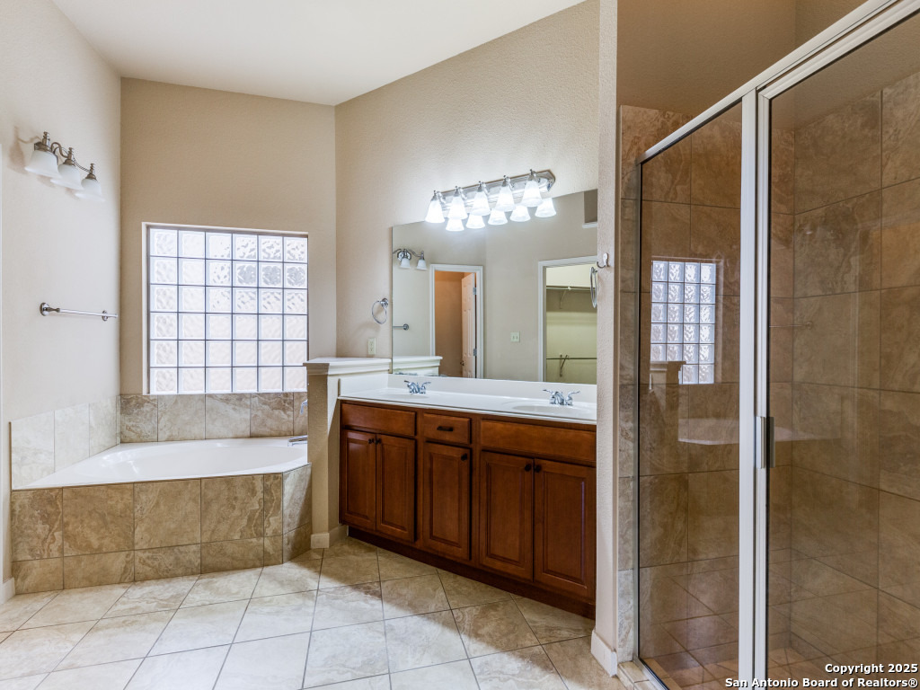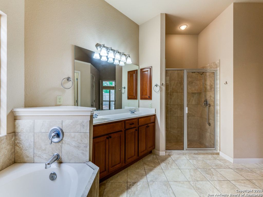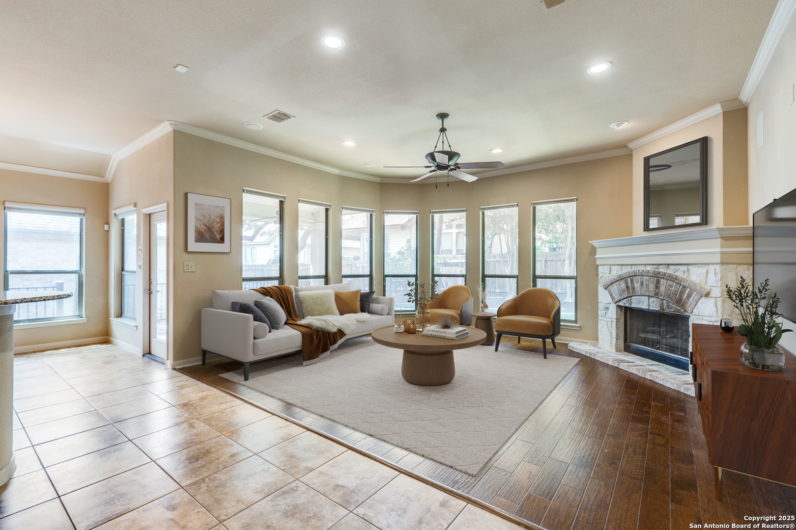 COMPETITIVE PRICE ADJUSTMENT-PRICED TO SELL-MOTIVATED SELLERS-TURN KEY READY! Located in the highly desirable Gardens of Hollywood Park, this beautiful, move-in ready home awaits it's new owners! Featuring high ceilings, engineered wood floors, a large open and bright living area with adjacent large kitchen with island and breakfast bar- an entertainer's delight! The large primary ,in-suite bedroom boasts a bath offering dual vanities and a separate garden tub and shower. The study provides an ideal retreat, as does the enclosed , open air private atrium. Fantastic covered back porch and extended decking make for quaint outdoor entertaining or relaxation. Easy access to 1604 and 281. This is the ideal home for convenience and solitude.