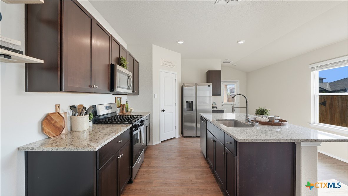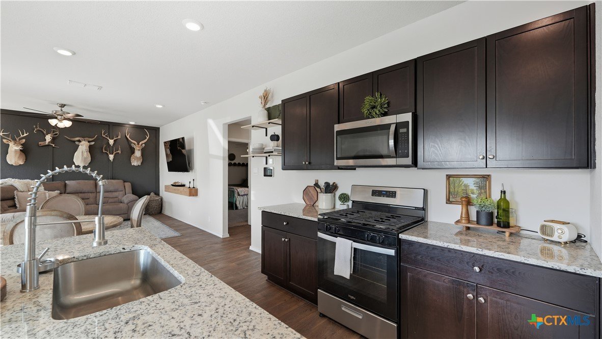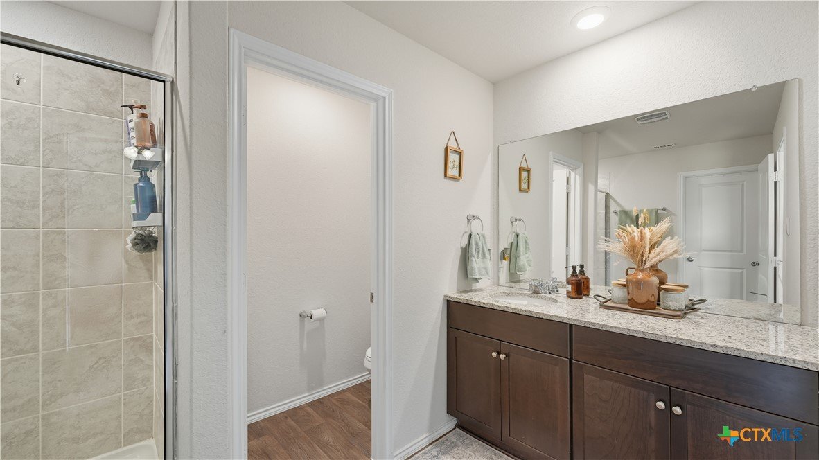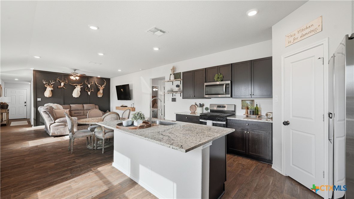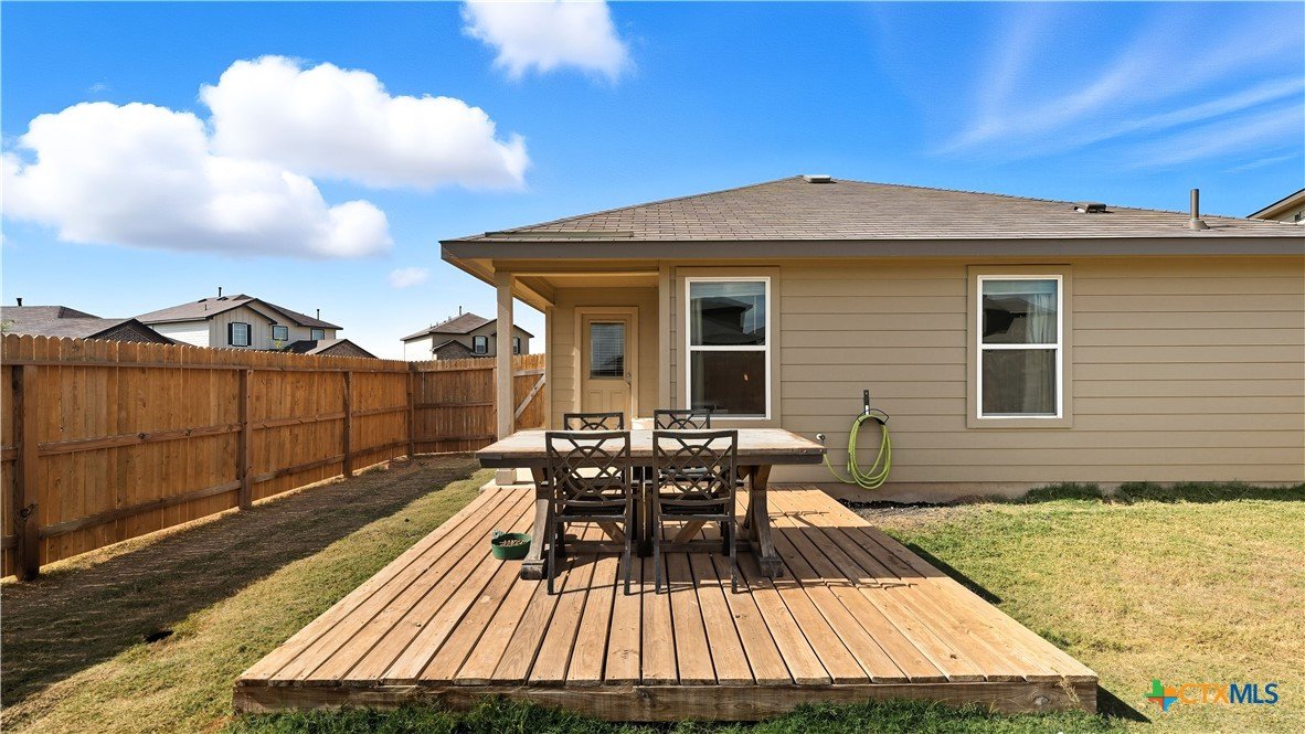 Located on a desirable corner lot, this charming 3-bedroom, 2-bathroom home combines thoughtful design, tasteful finishes, and welcoming curb appeal. Charm, updated design, and an open floorplan! Low tax rate and golf course living! Take your golf cart right out of your front driveway, and arrive minutes later at the 18th hole! The heart of the home is the stunning kitchen, featuring a large center island, granite countertops, beautiful cabinetry, and modern finishes—perfect for both casual meals and entertaining. The private primary suite offers a spacious retreat with an ensuite bathroom featuring a sleek standing shower and quality finishes. Two additional bedrooms and a second full bath provide comfortable accommodations for family, guests, or home office needs. Step outside to enjoy the extended deck in your private backyard oasis—ideal for relaxing, grilling, or entertaining under the stars. Situated just outside of San Antonio, this home offers the perfect blend of small-town feel with convenient access to city life—giving you peace and privacy without sacrificing location. This home effortlessly blends style, comfort, and functionality—don't miss the opportunity to make it yours!