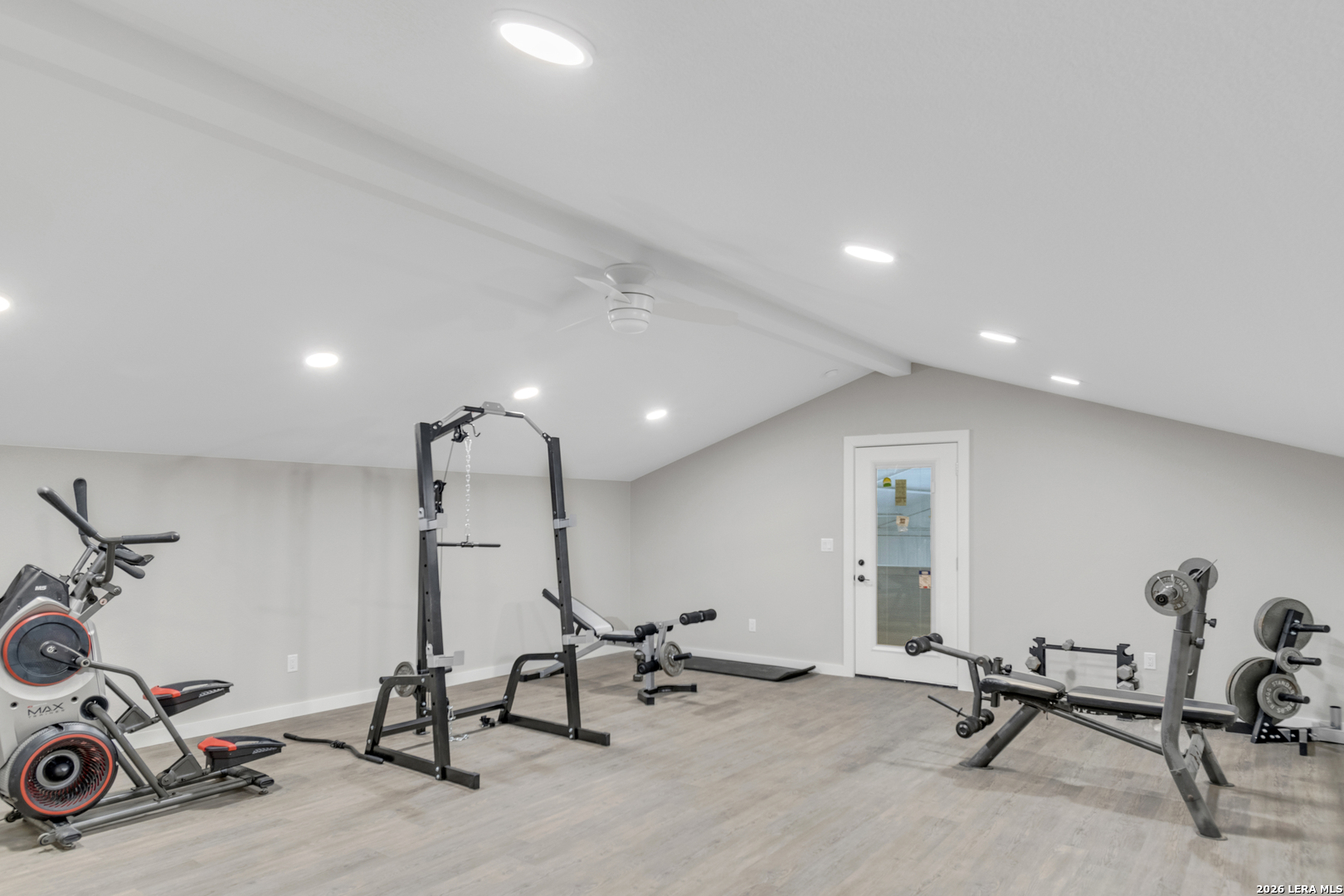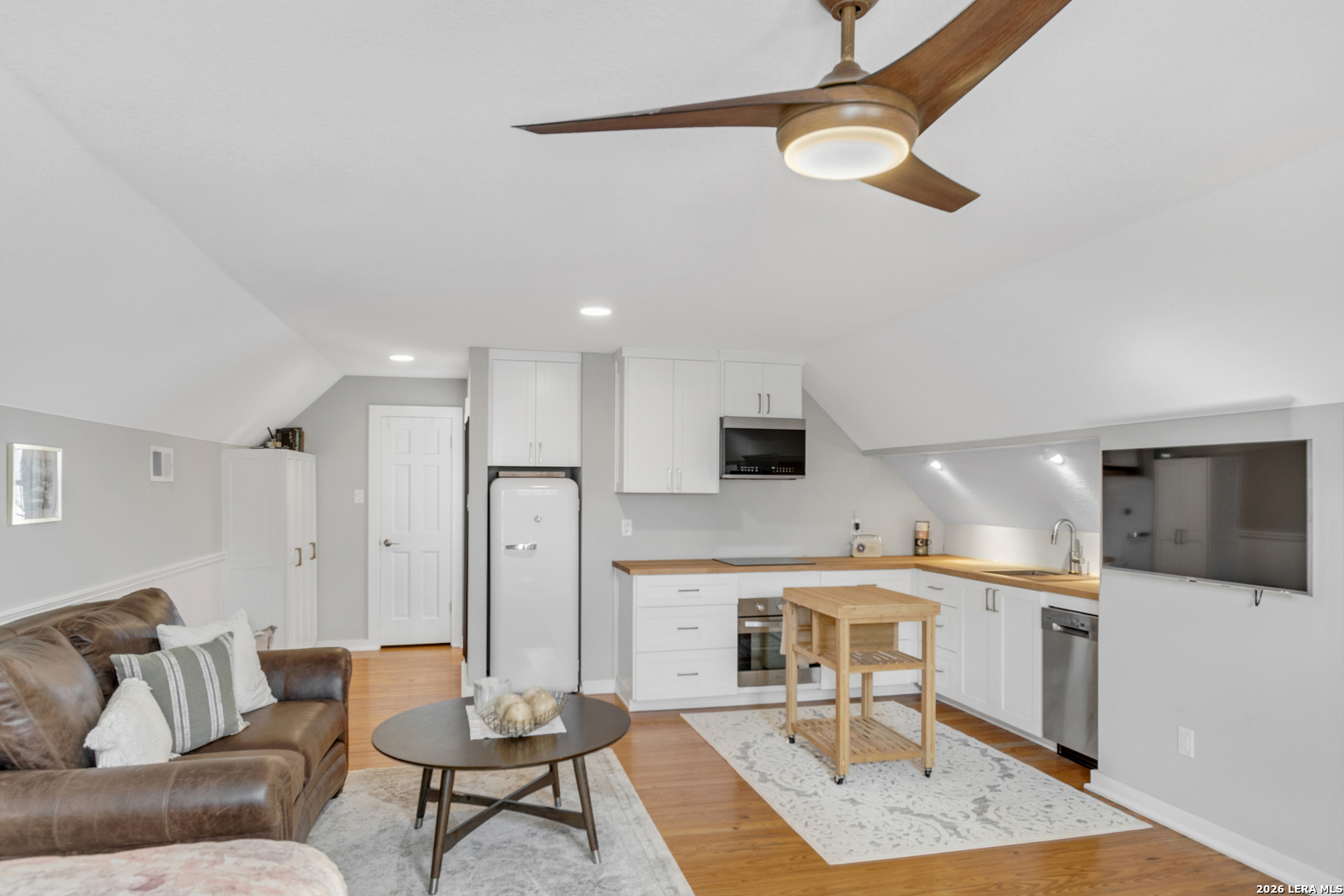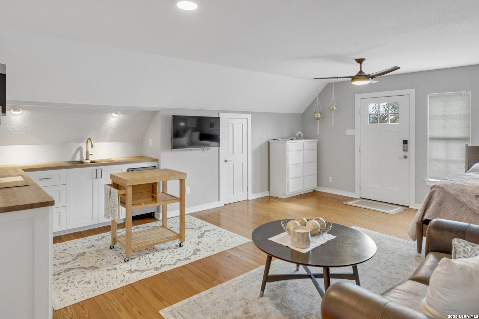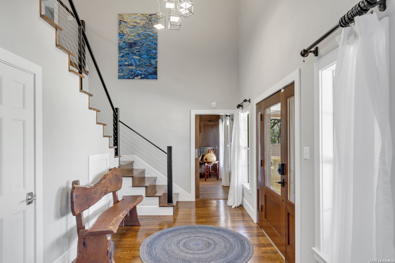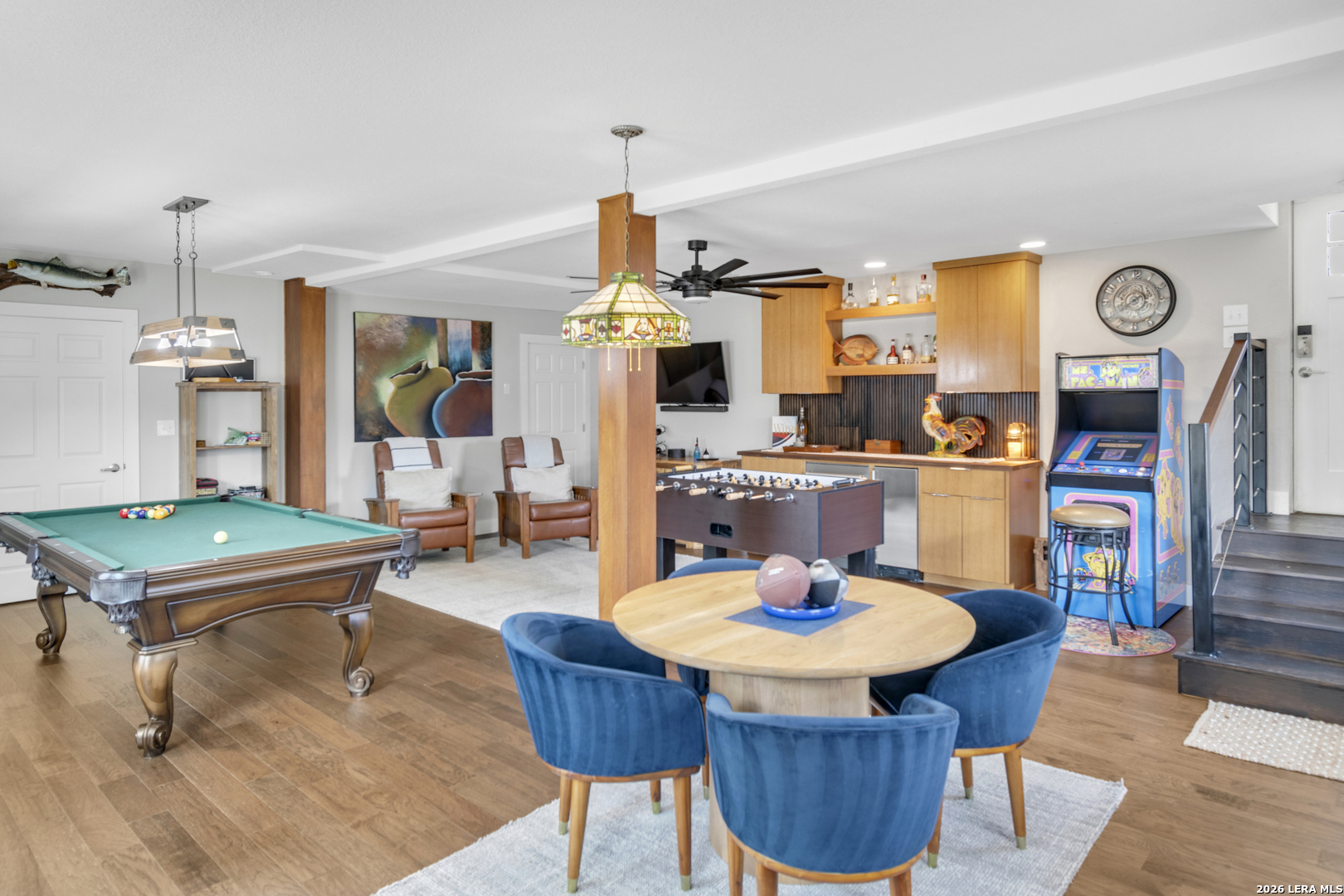 At the end of a quiet cul-de-sac, a secure privacy fence welcomes you to this stunning estate. Entering, you're greeted by a timeless windmill, a nod to the land's heritage and the old wagon trail that once crossed here. Set on nearly seven oak-studded acres, this all-stone Hill Country estate has been thoughtfully updated throughout. Custom cabinetry enhances nearly every space in the home, which features 3 bedrooms and 31/2 baths. The kitchen, overlooking the pool, boasts electric blinds, high-end appliances, a premium range with double ovens, and a built-in espresso machine, a chef's dream. On the west end, the private office features a fireplace and a floor-to-ceiling custom cabinet system, plus a Murphy bed for guests. Step outside to discover a private retreat with a 2020-built pool, hot tub,and sauna, all surrounded by low-maintenance turf. An expansive front porch and charming breezeway provide perfect spots for relaxation, while a half-court basketball area offers fun for all. Separate from the main home is a dedicated game room and a private studio apartment with 1 bedroom and 1 bath. The barndominium includes imported Italian laminate flooring, 1 bedroom, 11/2 baths, and a laundry room for guests. Upstairs, a flex space awaits. The impressive 40x40 storage/shop area with epoxy-finished floors is on the north end of the barndo. A garden area with a tool shed and a large dog run complete this exceptional setting. With most furnishings negotiable, this luxury estate is a true gem.