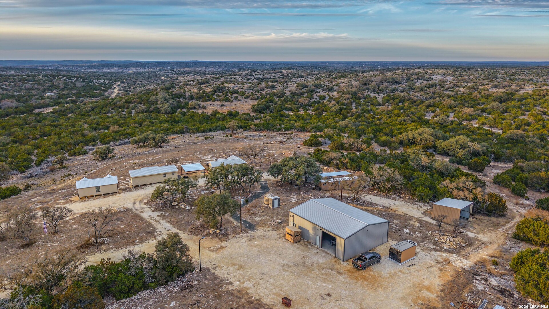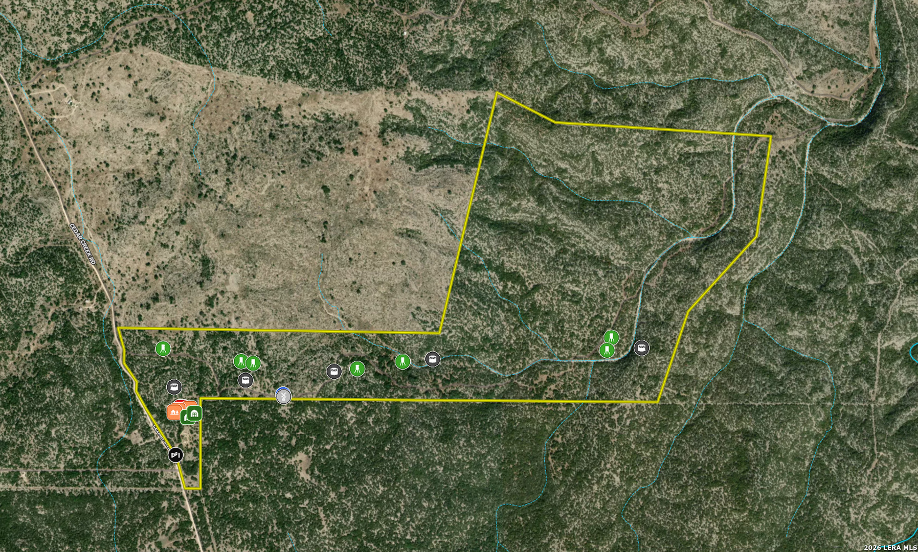 The aptly named Bucket List Ranch is a rare opportunity to own a true free-range, low-fence hunting ranch in the heart of Edwards County. Encompassing approximately 525 acres, this property delivers everything serious hunters and landowners look for-diverse topography, strong native and exotic wildlife populations, quality improvements, and a setting that feels remote yet accessible. The ranch features excellent elevation change with long-range views, deep draws, and varied terrain that naturally funnels wildlife across the property. White Mountain Draw runs through the ranch, creating a natural travel corridor and adding both beauty and functionality to the landscape. Well-maintained trails provide access throughout, making the property easy to navigate by truck, ATV, or on foot. Hunting opportunities are outstanding. This is true low-fence, free-range hunting with strong native wildlife populations and an impressive mix of exotics. Species observed on the ranch include whitetail deer, elk, axis, aoudad, turkey, dove, and hogs. Multiple high-quality blinds and feeders are already in place, thoughtfully positioned to take full advantage of the ranch's terrain and game movement. Improvements are well suited for both weekend use and extended stays. The ranch includes three cabins, one of which is fully finished and move-in ready, along with a container-style cabin for storage or additional use. A large, well-built shop supports equipment storage and ranch operations. There is a game cleaning station with power and water, covered parking near the cabins, and a firepit area ideal for evenings after a long day in the field. Water is well distributed across the ranch, with a water well in place and multiple wildlife troughs strategically located to support game year-round. The ranch is wildlife exempt, offering meaningful tax advantages to the next owner. Additional highlights include county road frontage, a custom-built entrance, no high fence boundaries, and a layout that balances usability with privacy. Whether used as a premier hunting ranch, a family retreat, or a long-term land investment, Bucket List Ranch lives up to its name in every way.