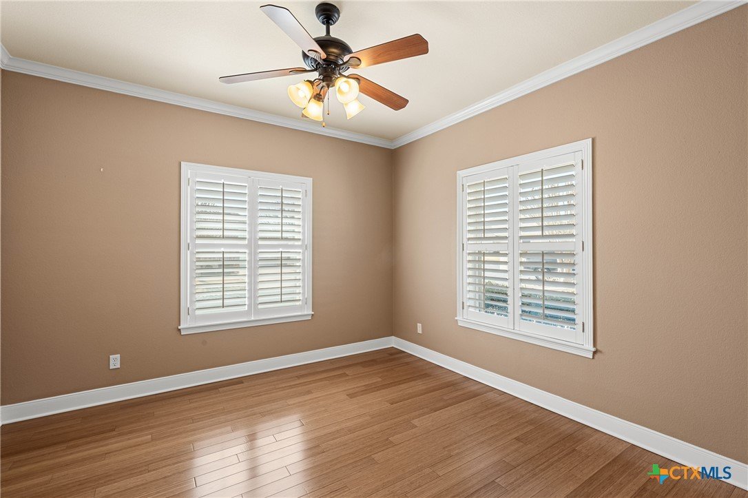 Rare opportunity in one of the area’s most charming gated garden-style communities. Homes in this quaint, zero-lot-line neighborhood seldom come available — offering low-maintenance living without sacrificing comfort or outdoor space. Built with ICF (Insulated Concrete Form) construction, this home provides superior energy efficiency, durability, and sound insulation — a valuable upgrade rarely found in comparable properties. Step inside to abundant natural light and beautiful wood flooring. Custom plantation shutters enhance both style and privacy throughout the home. The flexible front room with French doors makes an ideal home office, library, or additional bedroom. The spacious living area features a cozy fireplace and flows seamlessly into the kitchen and dining space, creating an inviting layout for entertaining or everyday living. The kitchen offers generous cabinetry, ample counter space, tile backsplash, and a functional design with excellent storage. The private primary suite includes a large walk-in closet and a spa-inspired bath with soaking tub, walk-in shower, dual vanities, and thoughtful accessibility features. One of the standout features is the enclosed patio/sunroom — perfect for year-round enjoyment, morning coffee, plants, or pets. Outside, the manageable backyard space allows room for gardening while maintaining easy upkeep. Located just minutes from shopping, healthcare facilities, and multiple schools, this home offers convenience in a peaceful, gated setting. If you’re looking for secure, low-maintenance living with energy-efficient ICF construction and a prime location, this is a rare find.
