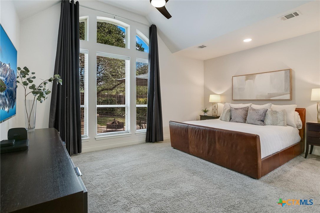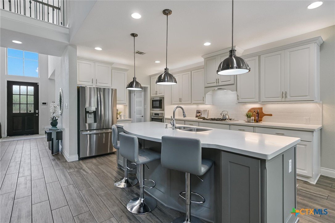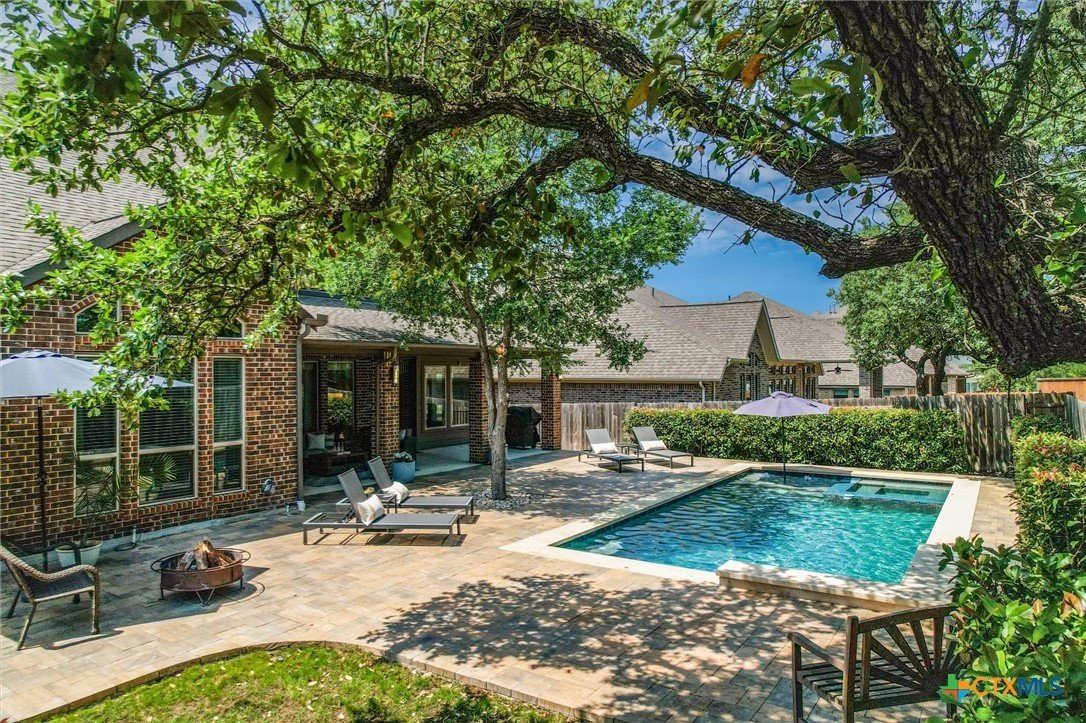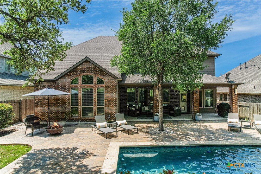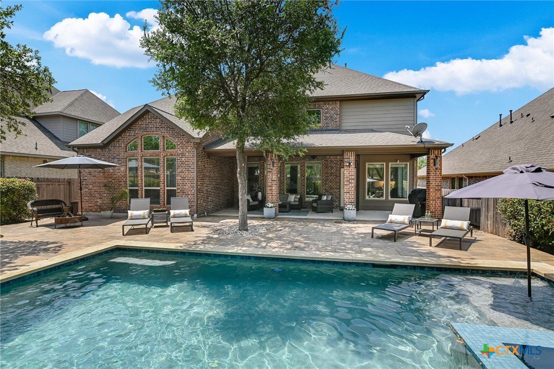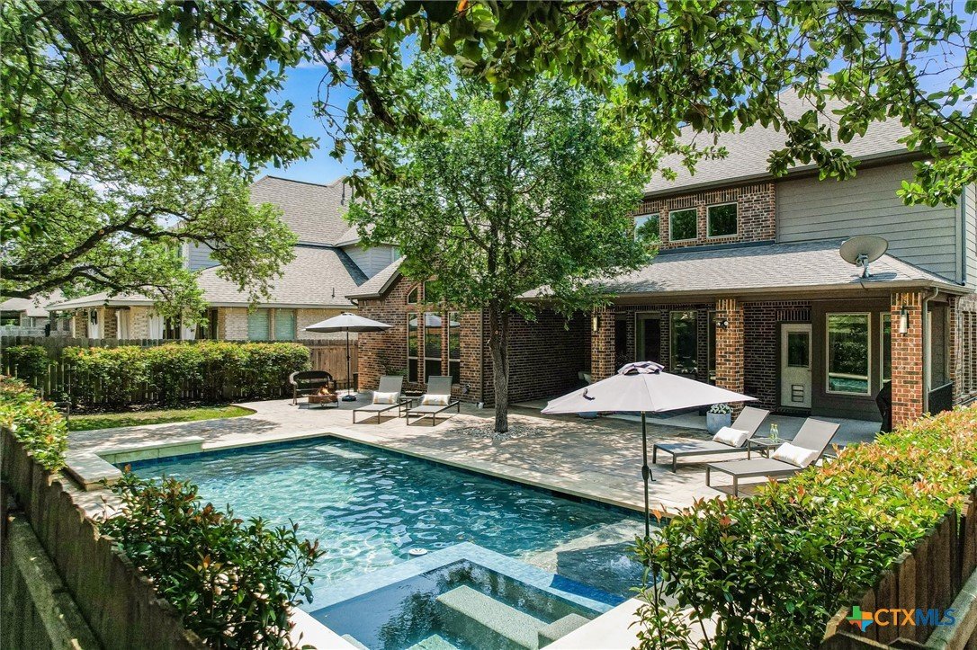 Welcome to 1509 Lakeside Ranch Road, a charming home nestled in the Lakeside at Lake Georgetown neighborhood. This delightful 4-5 bedroom home offers an inviting blend of versatility and style, perfect for those seeking an active lifestyle. Boasting 3,483 square feet of thoughtful living space, this home features a grand two-story living room with soaring ceilings and a custom fireplace, setting a warm and welcoming tone. The chef’s kitchen is a culinary dream, equipped with a commercial-grade stovetop, an expansive island; perfect for entertaining! The main level is home to a luxurious primary suite, offering tranquil pool views and (not to miss!) dual walk-in closets. The first floor also includes a formal dining room, and a convenient office space with French doors. Upstairs, discover a versatile game room complete with a wet bar, three additional bedrooms, two full bathrooms, and two flexible spaces that can serve as a fifth bedroom or a media room, depending on your needs. Step outside into your private oasis featuring a PebbleTec pool, hot tub, and a beautifully landscaped yard supported by a smart sprinkler system. The expansive patio is plumbed for gas, making it an ideal spot for outdoor entertaining and grilling. The tandem 3-car garage provides ample space for vehicles and storage. Located with easy access to Lake Georgetown, schools, parks, shops, restaurants, and historic downtown Georgetown! Best of all is the low tax rate of 1.81% and a low HOA fee!
