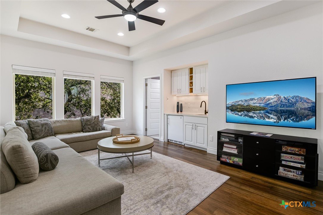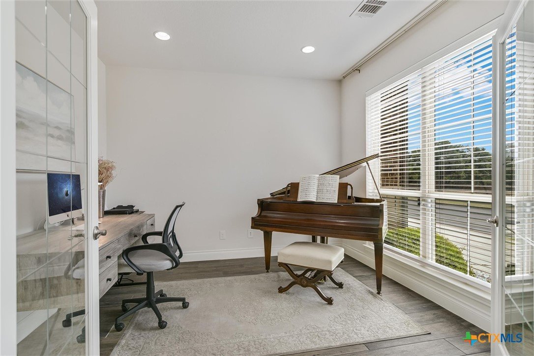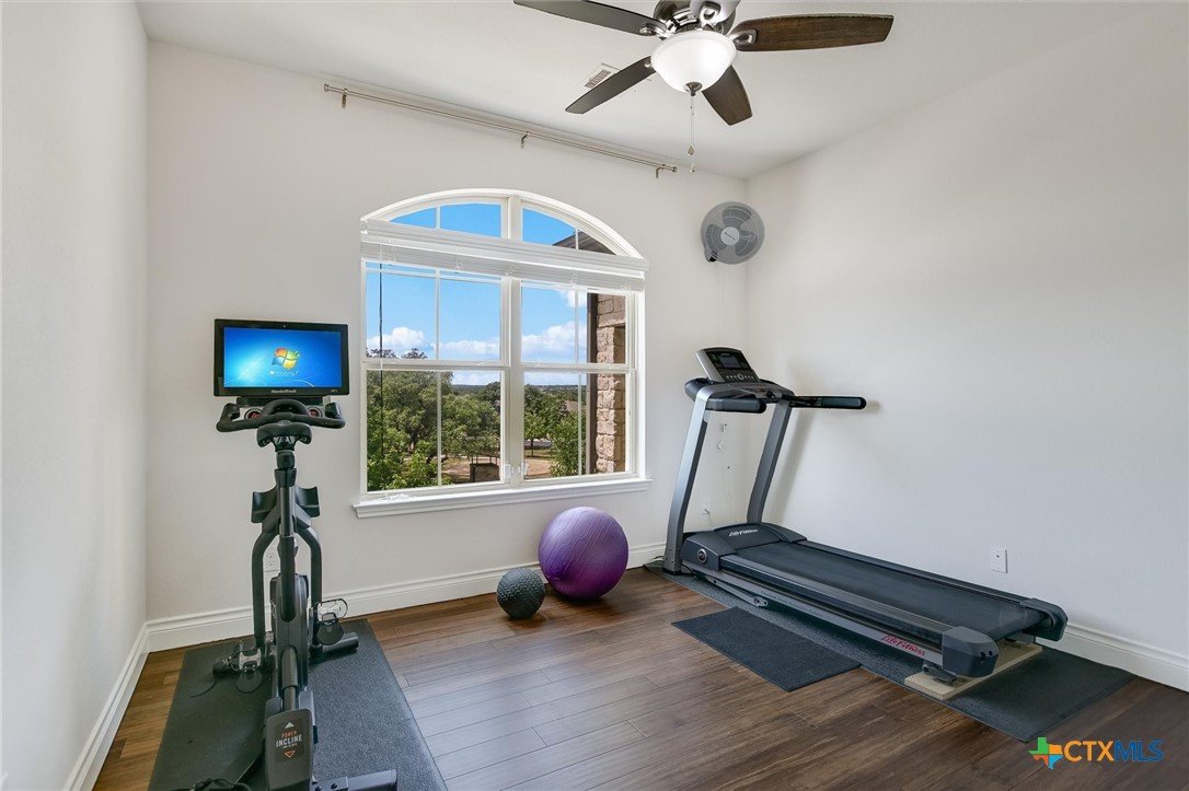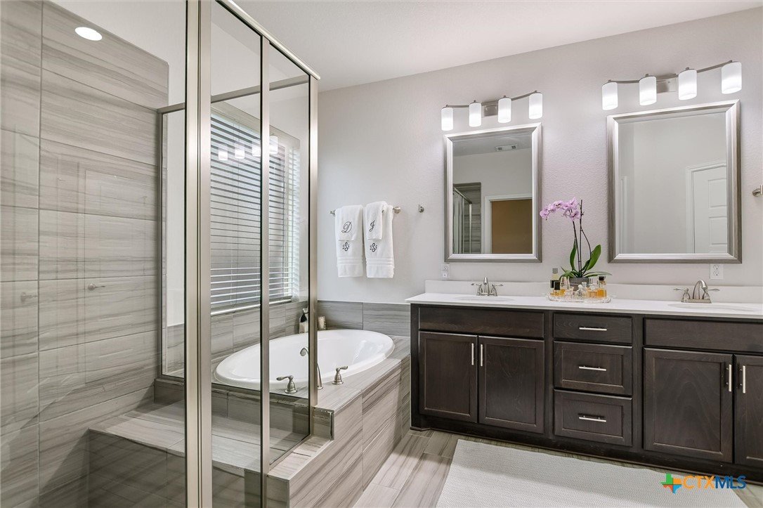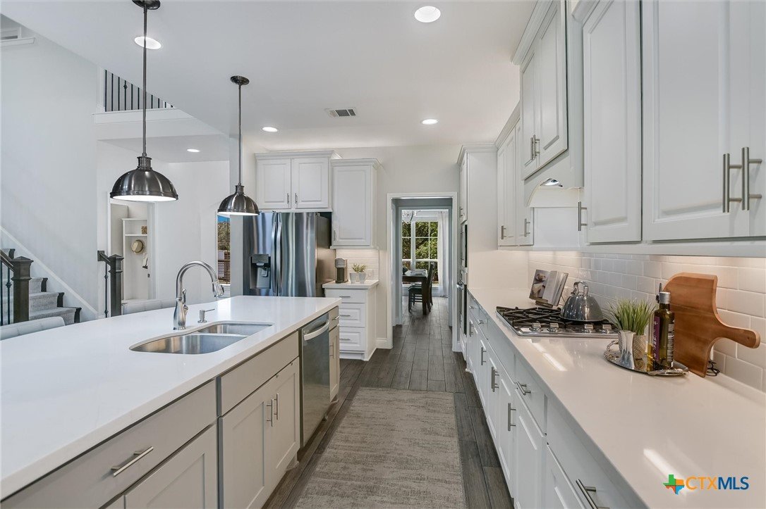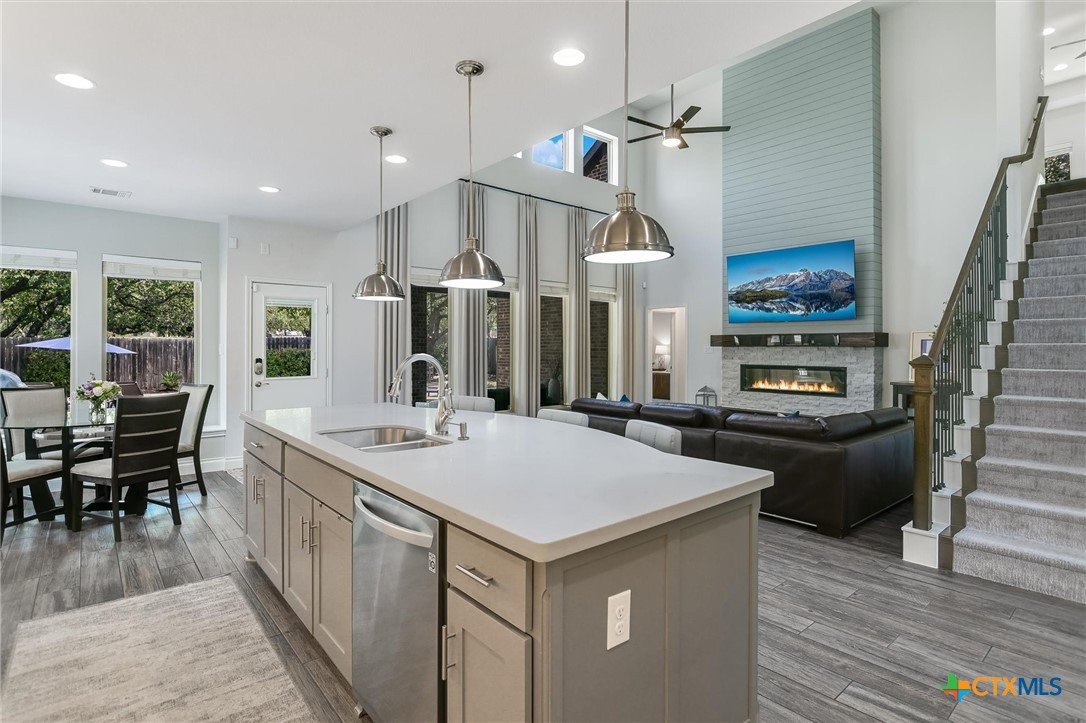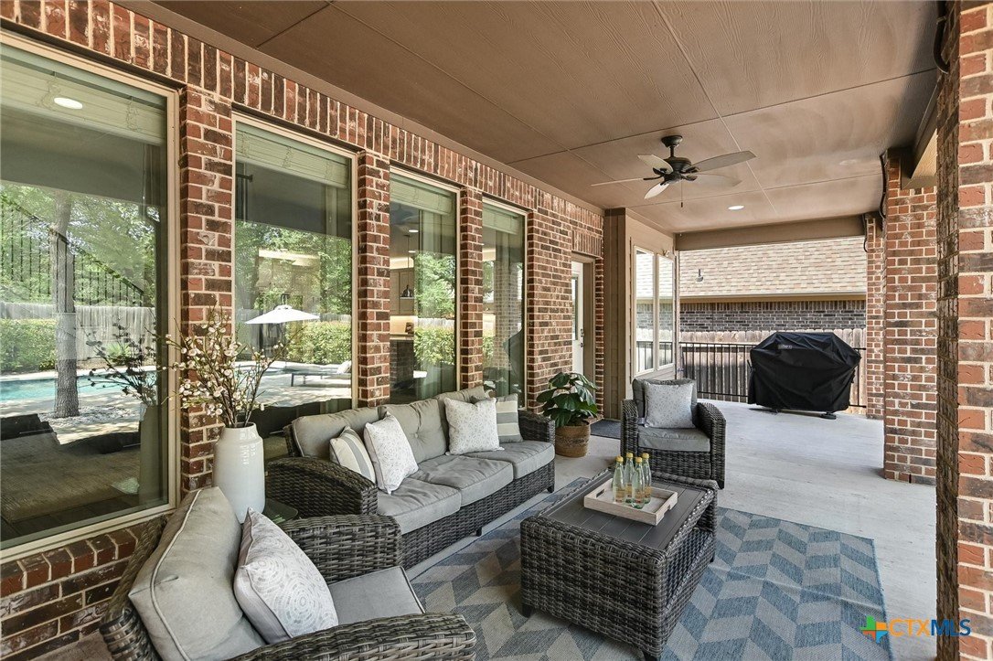 Welcome to 1509 Lakeside Ranch Road, a charming home nestled in the Lakeside at Lake Georgetown neighborhood. This delightful 4-5 bedroom home offers an inviting blend of versatility and style, perfect for those seeking an active lifestyle. Boasting 3,483 square feet of thoughtful living space, this home features a grand two-story living room with soaring ceilings and a custom fireplace, setting a warm and welcoming tone. The chef’s kitchen is a culinary dream, equipped with a commercial-grade stovetop, an expansive island; perfect for entertaining! The main level is home to a luxurious primary suite, offering tranquil pool views and (not to miss!) dual walk-in closets. The first floor also includes a formal dining room, and a convenient office space with French doors. Upstairs, discover a versatile game room complete with a wet bar, three additional bedrooms, two full bathrooms, and two flexible spaces that can serve as a fifth bedroom or a media room, depending on your needs. Step outside into your private oasis featuring a PebbleTec pool, hot tub, and a beautifully landscaped yard supported by a smart sprinkler system. The expansive patio is plumbed for gas, making it an ideal spot for outdoor entertaining and grilling. The tandem 3-car garage provides ample space for vehicles and storage. Located with easy access to Lake Georgetown, schools, parks, shops, restaurants, and historic downtown Georgetown! Best of all is the low tax rate of 1.81% and a low HOA fee!