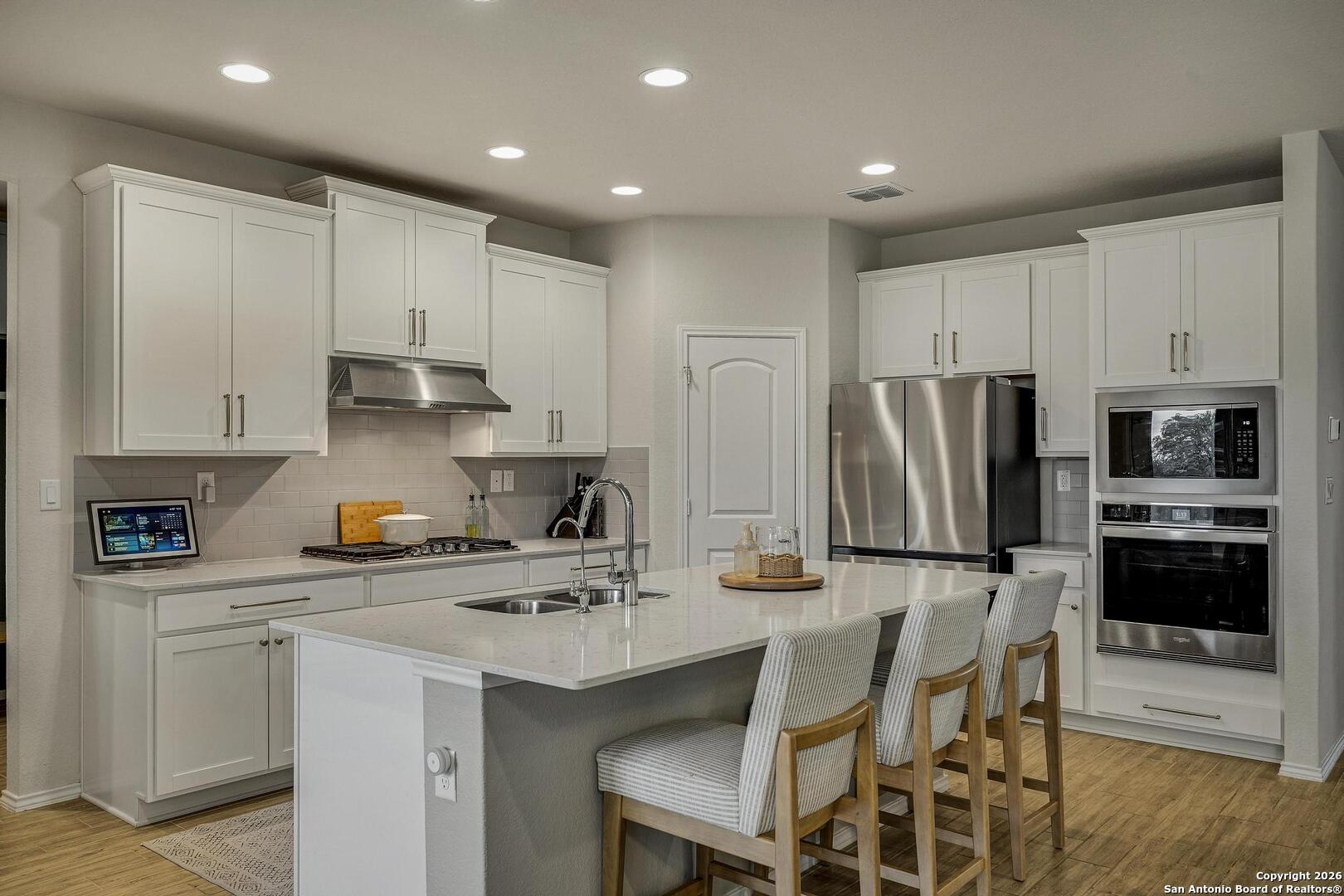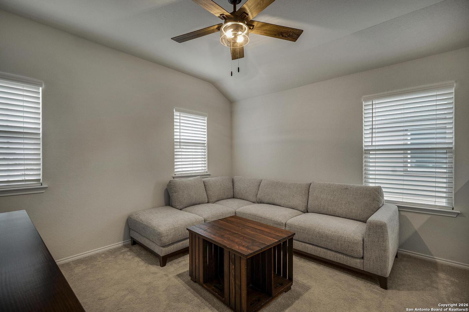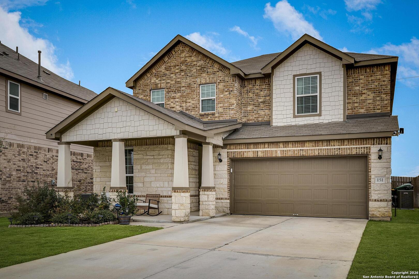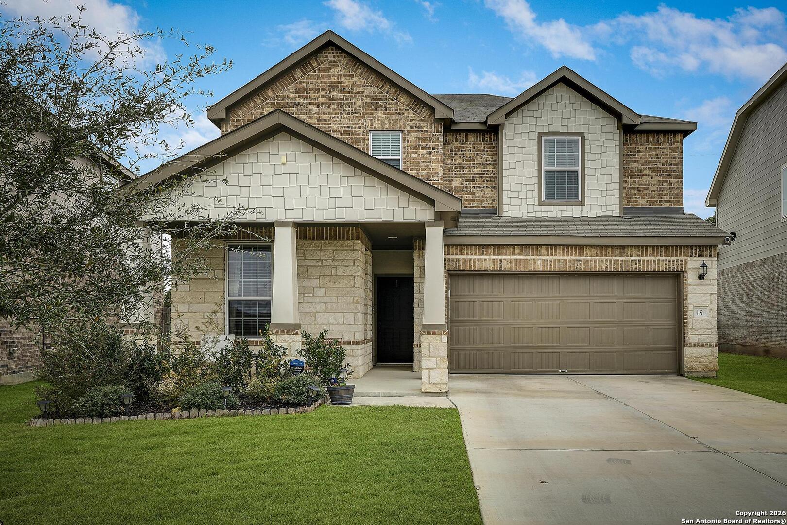 Welcome to 151 Inverness, a beautifully maintained 3-bedroom, 2.5-bath home built in 2022 and located in the quiet, highly desirable Southglen community. This home offers an ideal layout for both productivity and relaxation, featuring a dedicated downstairs study plus a secondary built-in workspace near the kitchen. The open-concept main level is anchored by a spacious kitchen equipped with a large island, gas cooktop, and built-in microwave and oven, all complemented by neutral finishes and abundant natural light. Upstairs, a versatile loft provides a second living area or game room, leading to the private bedrooms including a primary suite with a double vanity, separate tub and shower, and upgraded tile work. With no neighbors directly behind the property, the backyard offers enhanced privacy and features a large covered patio and a fully fenced lawn. Residents enjoy Southglen's community amenities, including a swimming pool, playground, and grilling area, all within the award-winning Boerne school district. The location is exceptionally convenient, offering easy access to back roads into Boerne and Fair Oaks Ranch, while remaining just minutes from IH-10 for quick drives to La Cantera, The Rim and Lemon Creek. Homes in this neighborhood have been selling quickly and you are encouraged to set your appointment today! {Grass color has been enhanced}