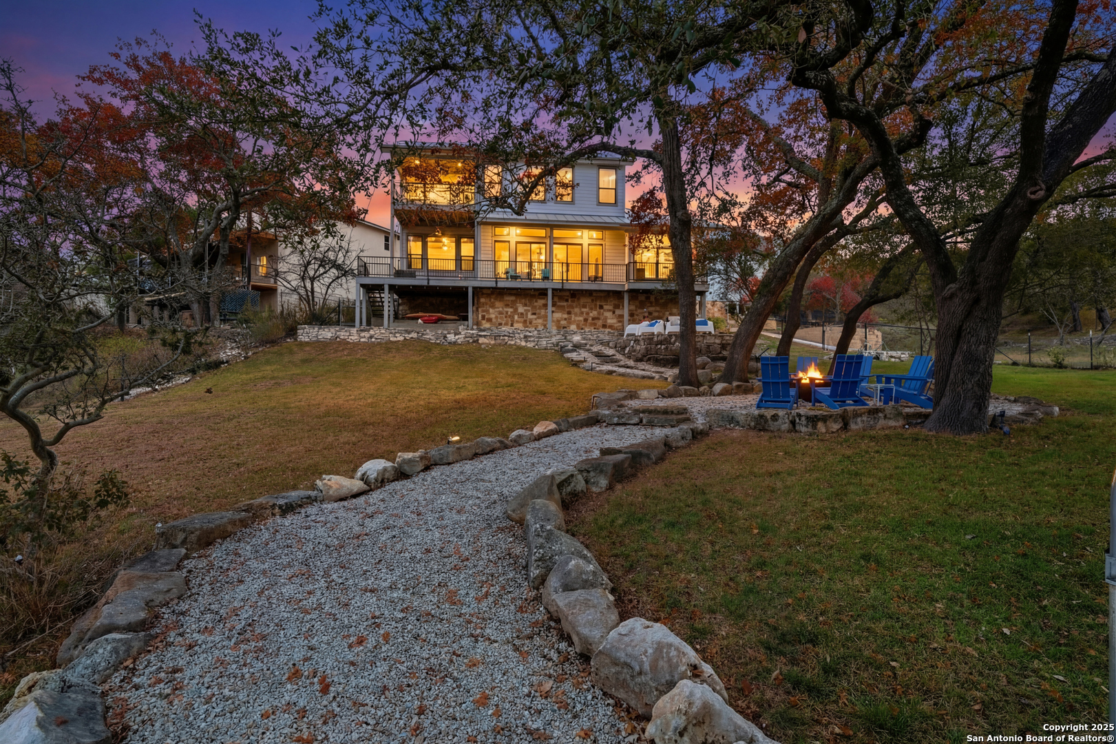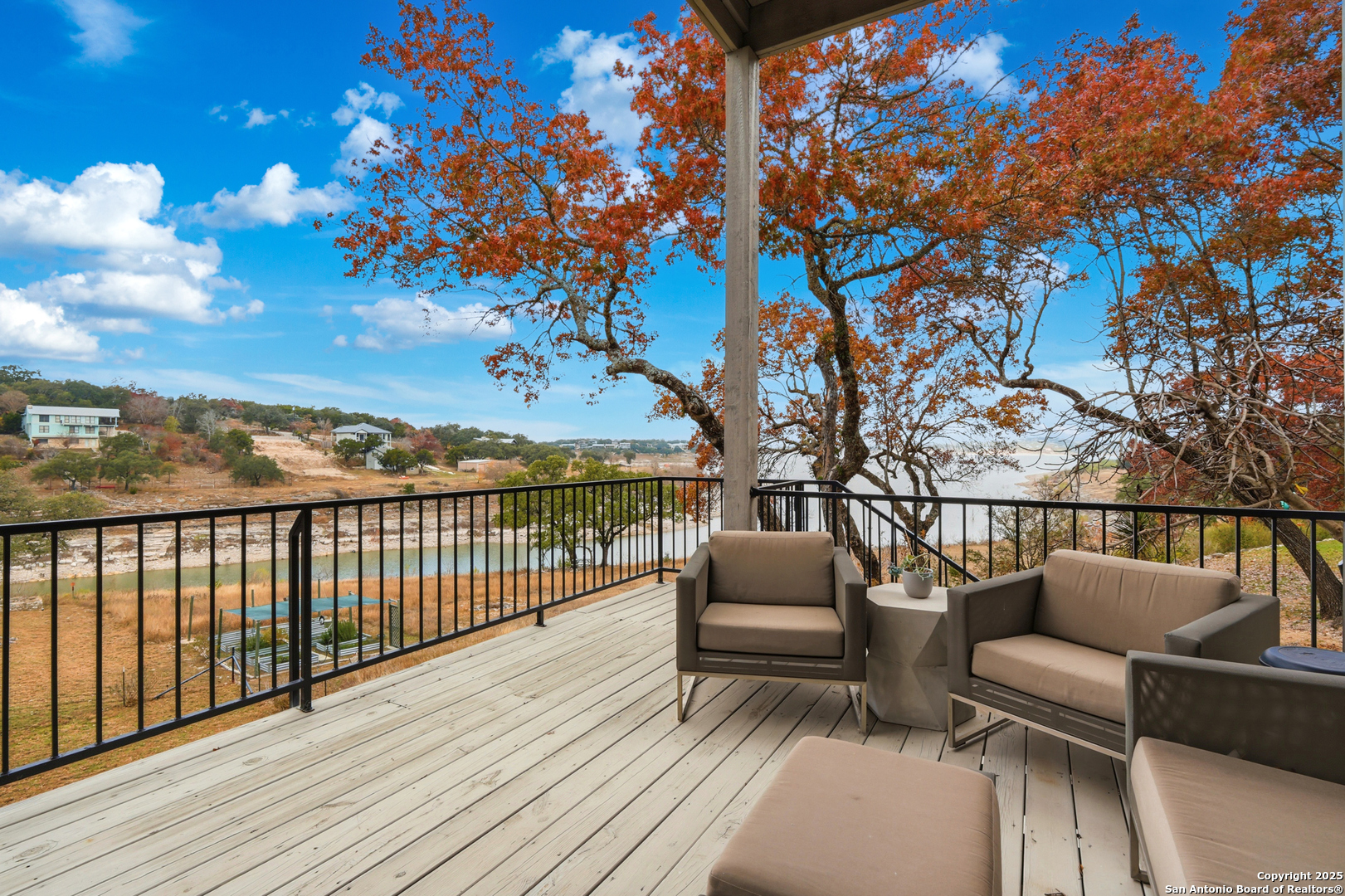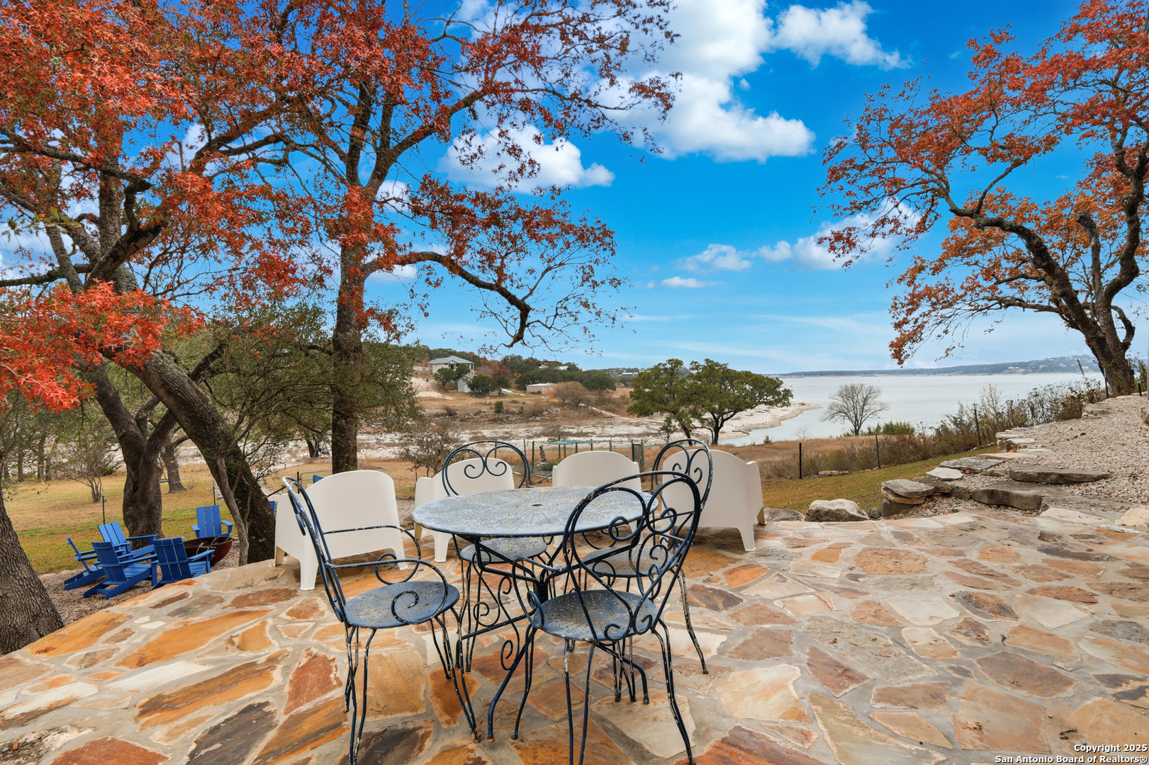 Wake up to breathtaking lake views and Hill Country sunsets in this exceptional Canyon Lake waterfront retreat, where the lake is quite literally steps from your backyard. Situated on nearly one full acre with a partially fenced backyard, this home offers rare privacy, space, and direct access to the water, perfect for lake lovers and entertainers alike. The bright, inviting kitchen and dining area flow seamlessly to a spacious balcony overlooking the lake, creating the ideal setting for morning coffee, sunset dinners, and unforgettable gatherings. Multiple rock patio areas provide charming outdoor spaces to relax, entertain, or take in the natural beauty that surrounds you. The primary suite is conveniently located on the main level and features a sliding glass door leading to the balcony so you can wake up every day to serene water views. The living and dining rooms are filled with abundant natural light, thanks to expansive windows that frame the lake and provide direct balcony access. Whether you're looking for a full-time residence or the perfect weekend escape, this home delivers the ultimate Canyon Lake lifestyle. Just minutes from boat ramps, Whitewater Amphitheater, and popular Hill Country destinations, you'll enjoy the best of peaceful waterfront living with entertainment and adventure nearby. Lakefront homes like this-especially with direct access-are rare. Don't miss your chance to experience Canyon Lake living at its finest.
