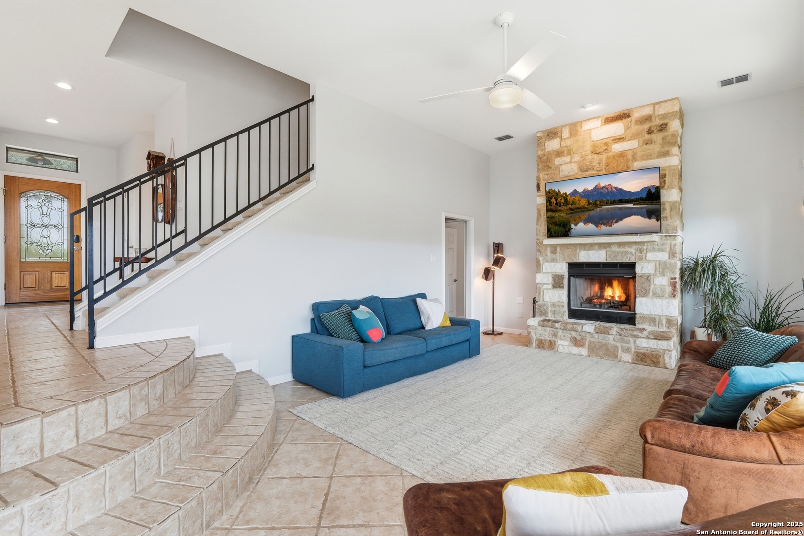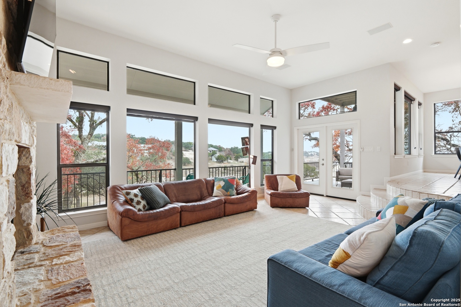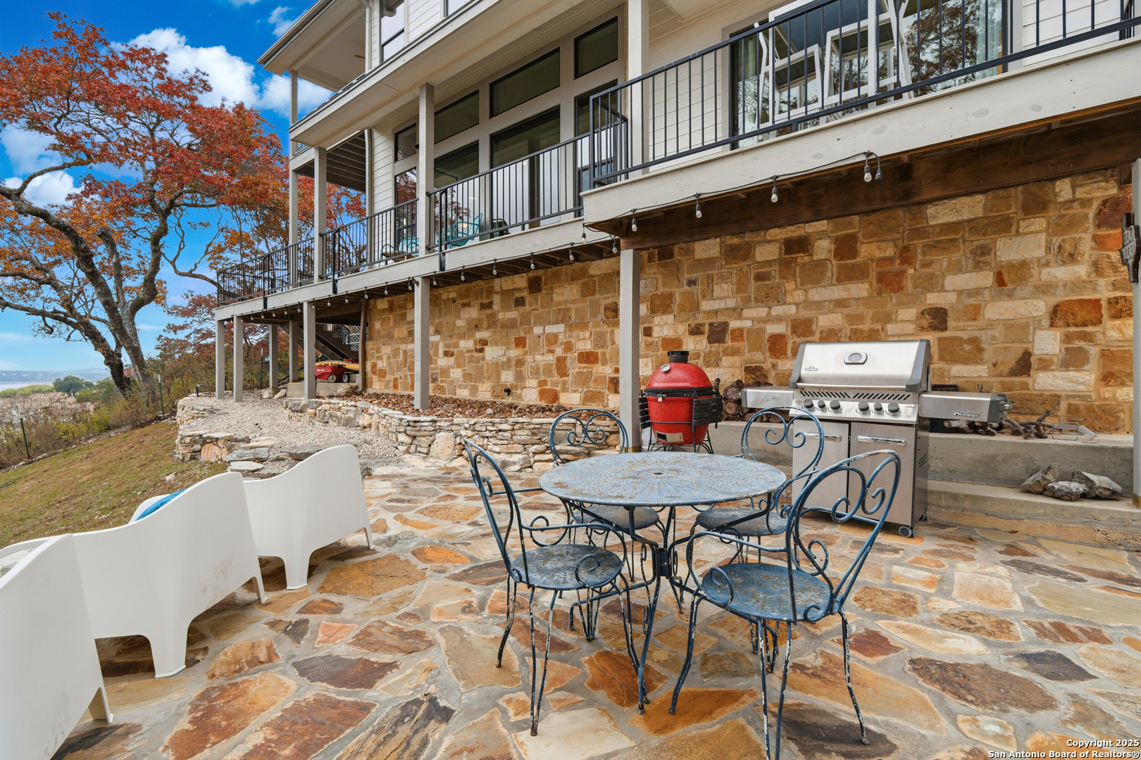 Wake up to breathtaking lake views and Hill Country sunsets in this exceptional Canyon Lake waterfront retreat, where the lake is quite literally steps from your backyard. Situated on nearly one full acre with a partially fenced backyard, this home offers rare privacy, space, and direct access to the water, perfect for lake lovers and entertainers alike. The bright, inviting kitchen and dining area flow seamlessly to a spacious balcony overlooking the lake, creating the ideal setting for morning coffee, sunset dinners, and unforgettable gatherings. Multiple rock patio areas provide charming outdoor spaces to relax, entertain, or take in the natural beauty that surrounds you. The primary suite is conveniently located on the main level and features a sliding glass door leading to the balcony so you can wake up every day to serene water views. The living and dining rooms are filled with abundant natural light, thanks to expansive windows that frame the lake and provide direct balcony access. Whether you're looking for a full-time residence or the perfect weekend escape, this home delivers the ultimate Canyon Lake lifestyle. Just minutes from boat ramps, Whitewater Amphitheater, and popular Hill Country destinations, you'll enjoy the best of peaceful waterfront living with entertainment and adventure nearby. Lakefront homes like this-especially with direct access-are rare. Don't miss your chance to experience Canyon Lake living at its finest.